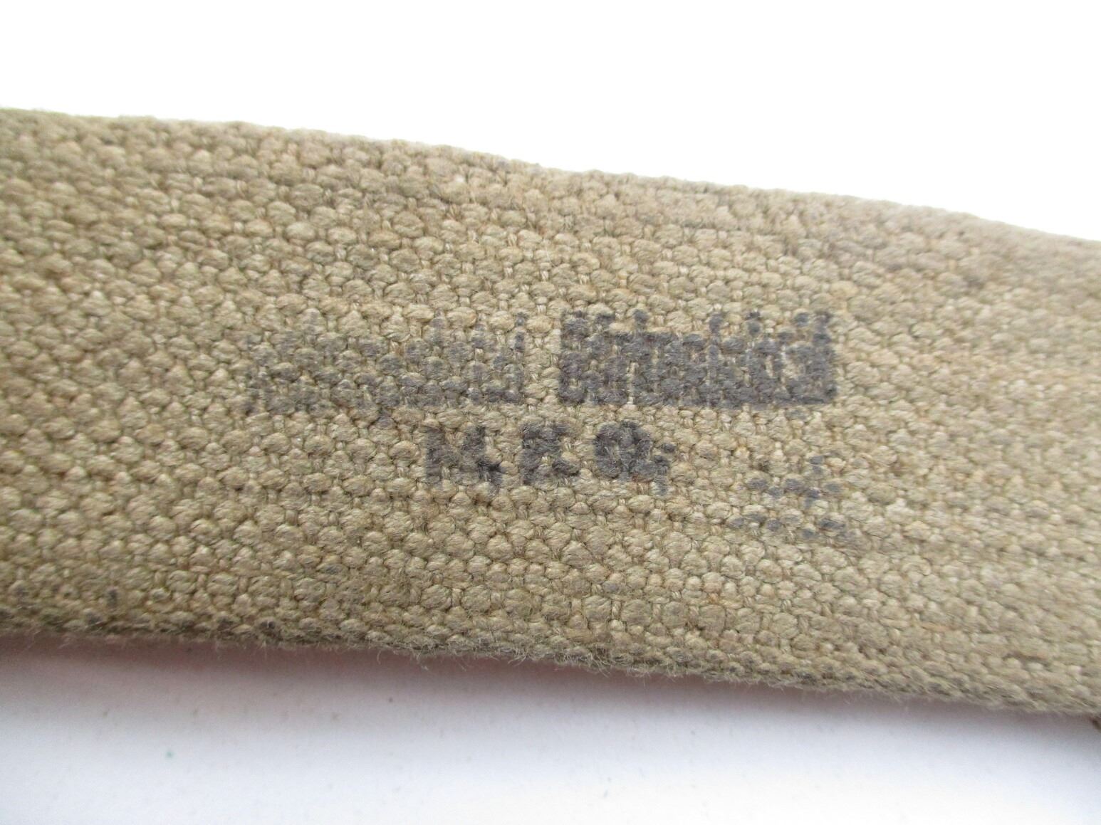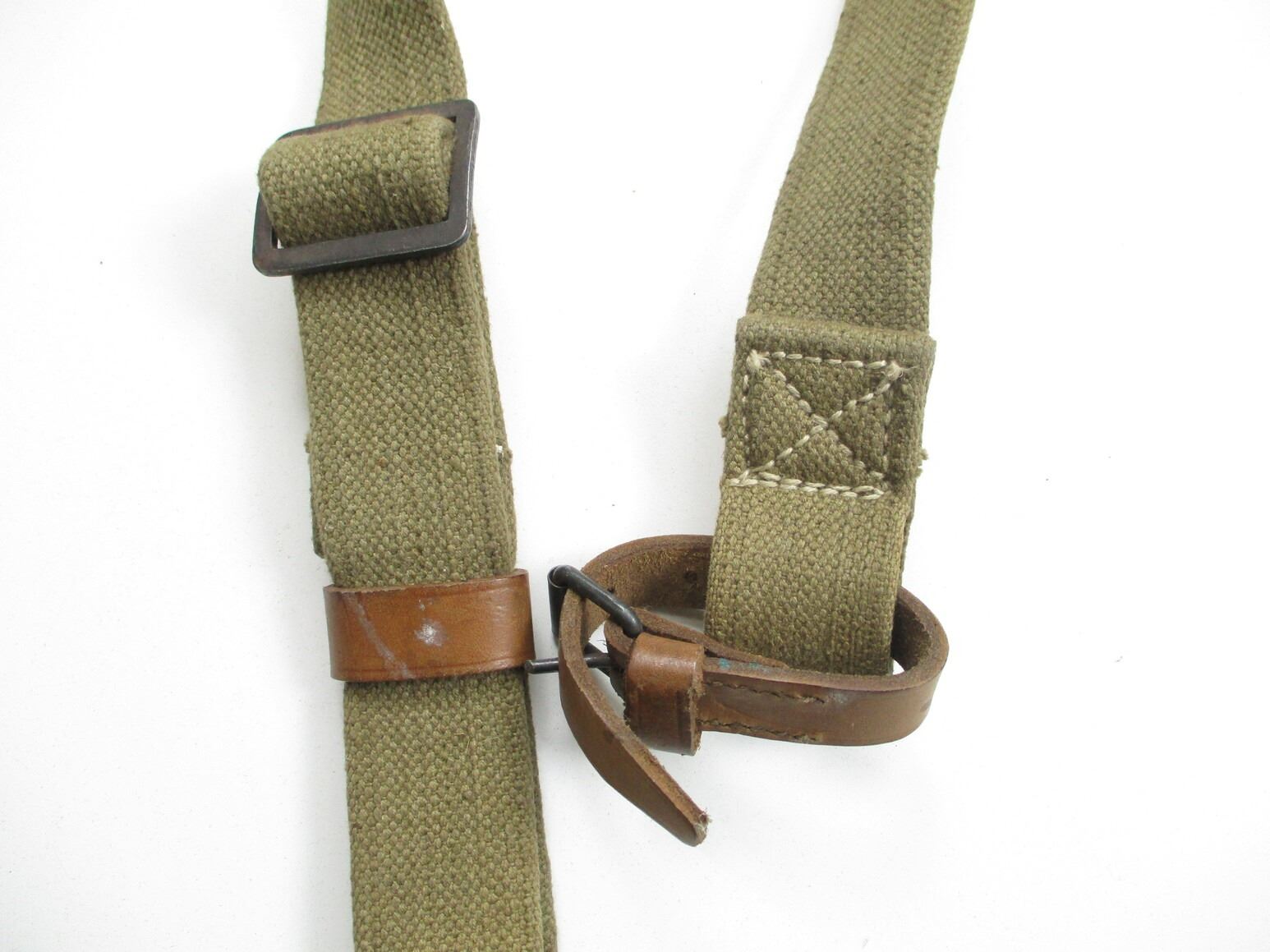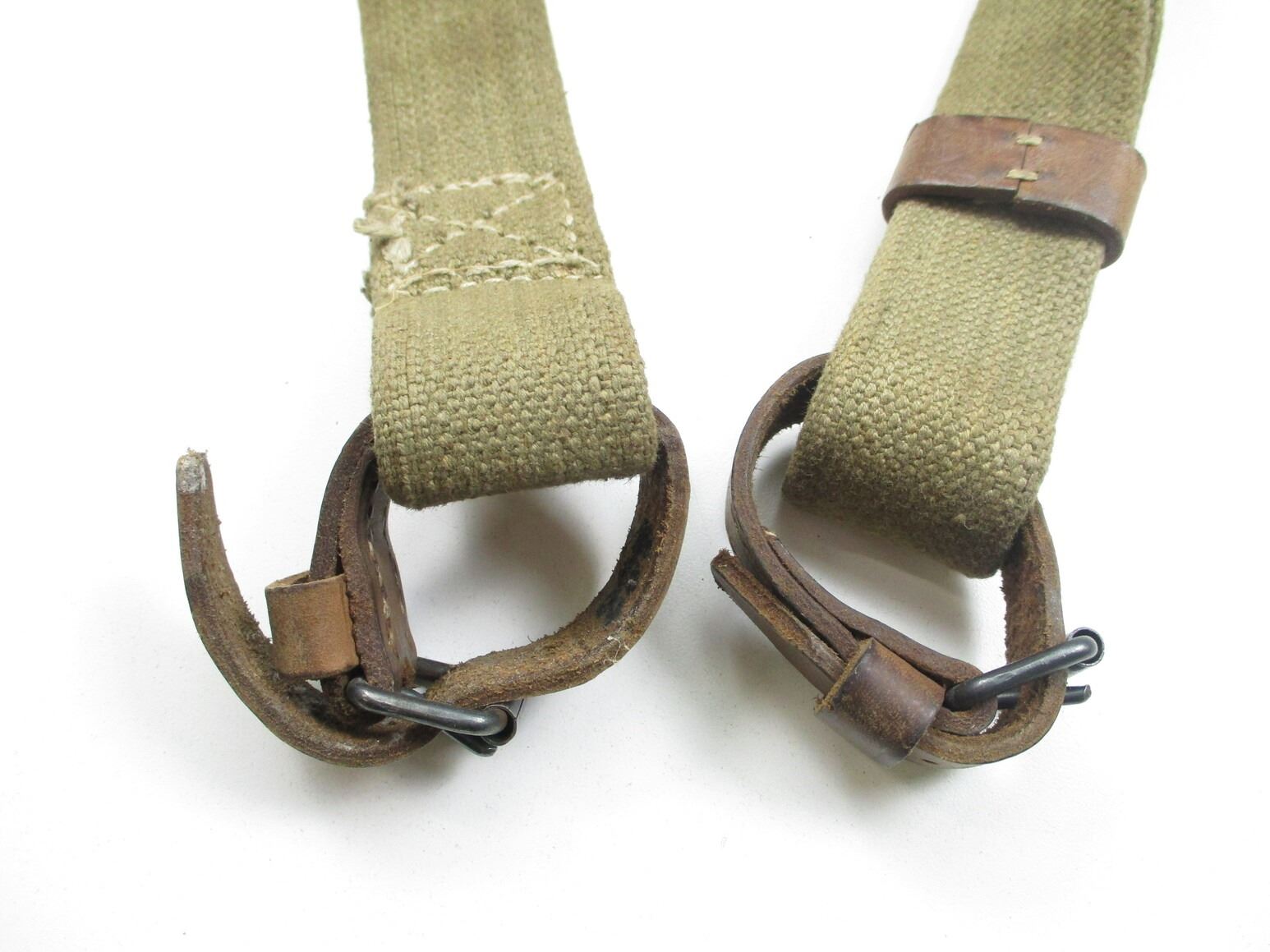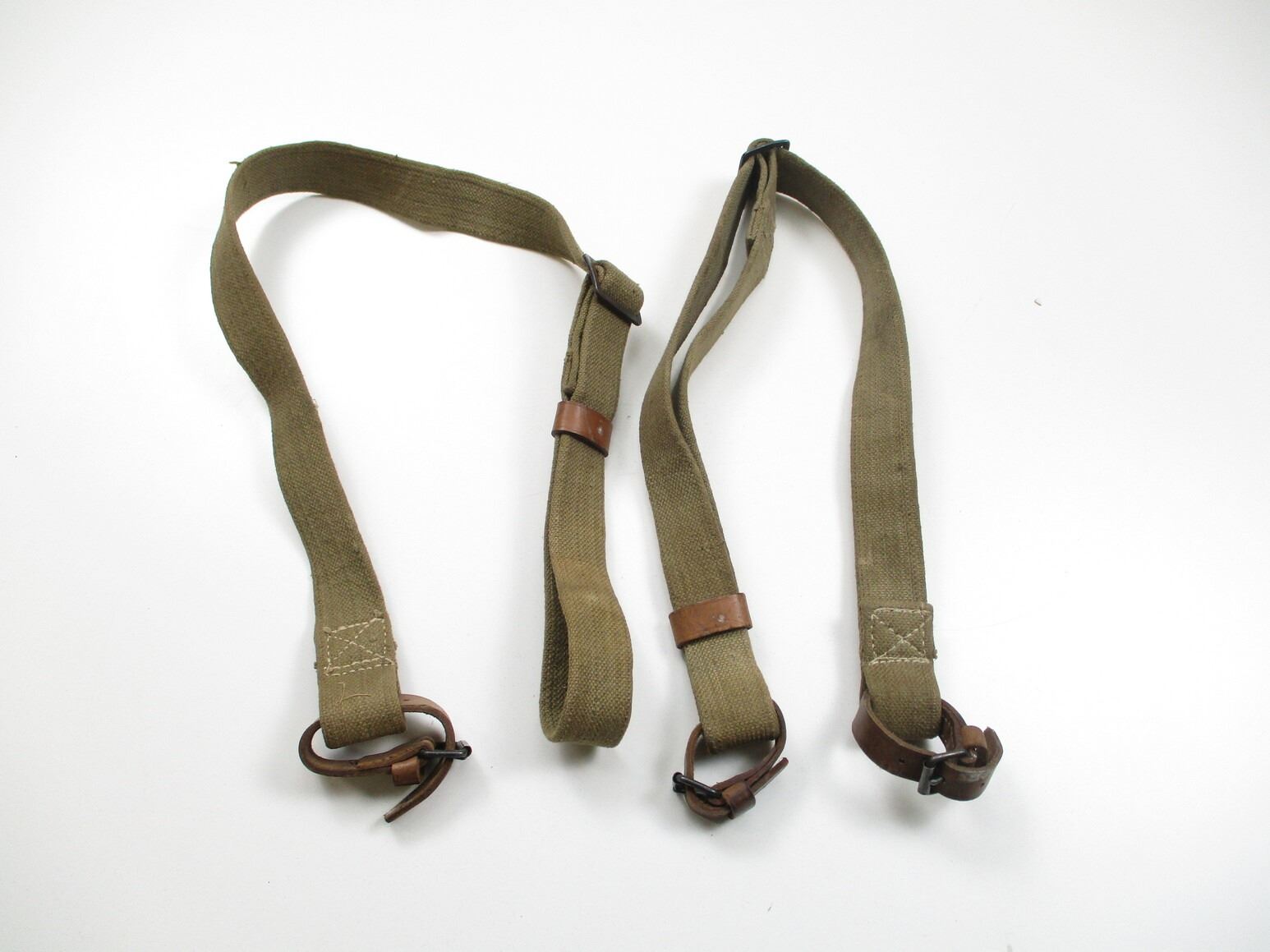 MOSIN-NAGANT RIFLE SLING LOT, (2) FITS M38, 44 & 91/30 RIFLES, CANVAS WITH LEATHER COLLARS (ONE IS MISSING), VARIOUS ILLEGIBLE MARKINGS, OAL APPROX. 45", ADJUSTABLE