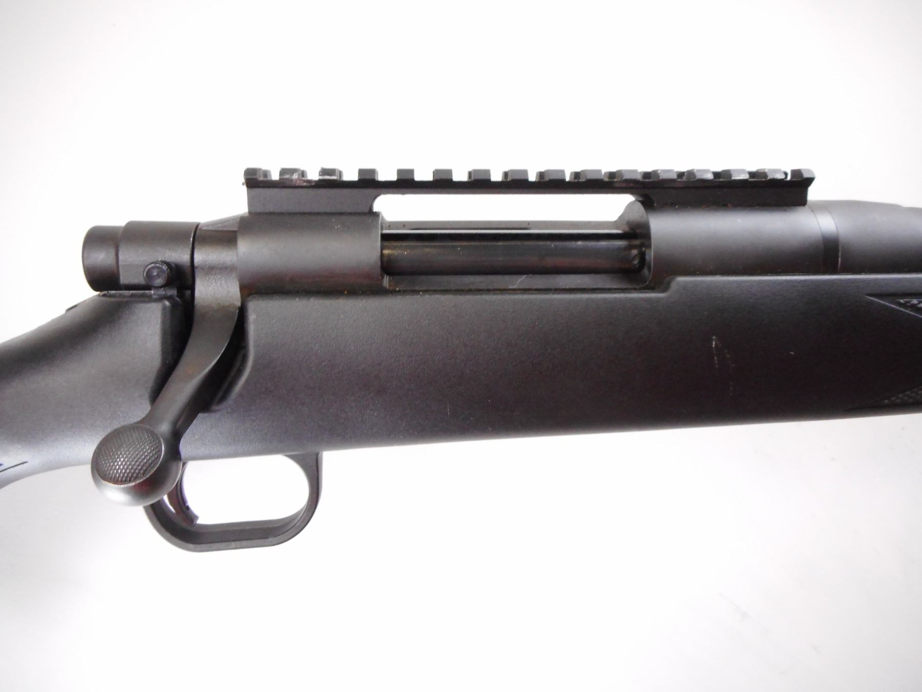 MOSSBERG, MODEL: 100 ATR, CALIBER: 308 WIN, BORE IS VERY GOOD. ROUND MATTE FINISH BARREL. NO SIGHTS. SCOPE RAIL ON RECEIVER. ONE PIECE BLACK SYNTHETIC STOCK. CHECKERED FOREARM AND PISTOL GRIP. CHEEK REST. BLACK RUBBER RECOIL PAD. BLIND MAGAZINE. SWIVEL STUDS. METAL FINISH SHOWS SLIGHT HANDLING MARKS AND WEAR. STOCK SHOWS SOME SMALL DINGS, SCRATCHES AND WEAR. , ACTION: BOLT ACTION RIFLE , BARREL LENGTH: 22", CONDITION: 7+/10, SERIAL # BA199188, CLASS: CANADIAN NON RESTRICTED CLASS