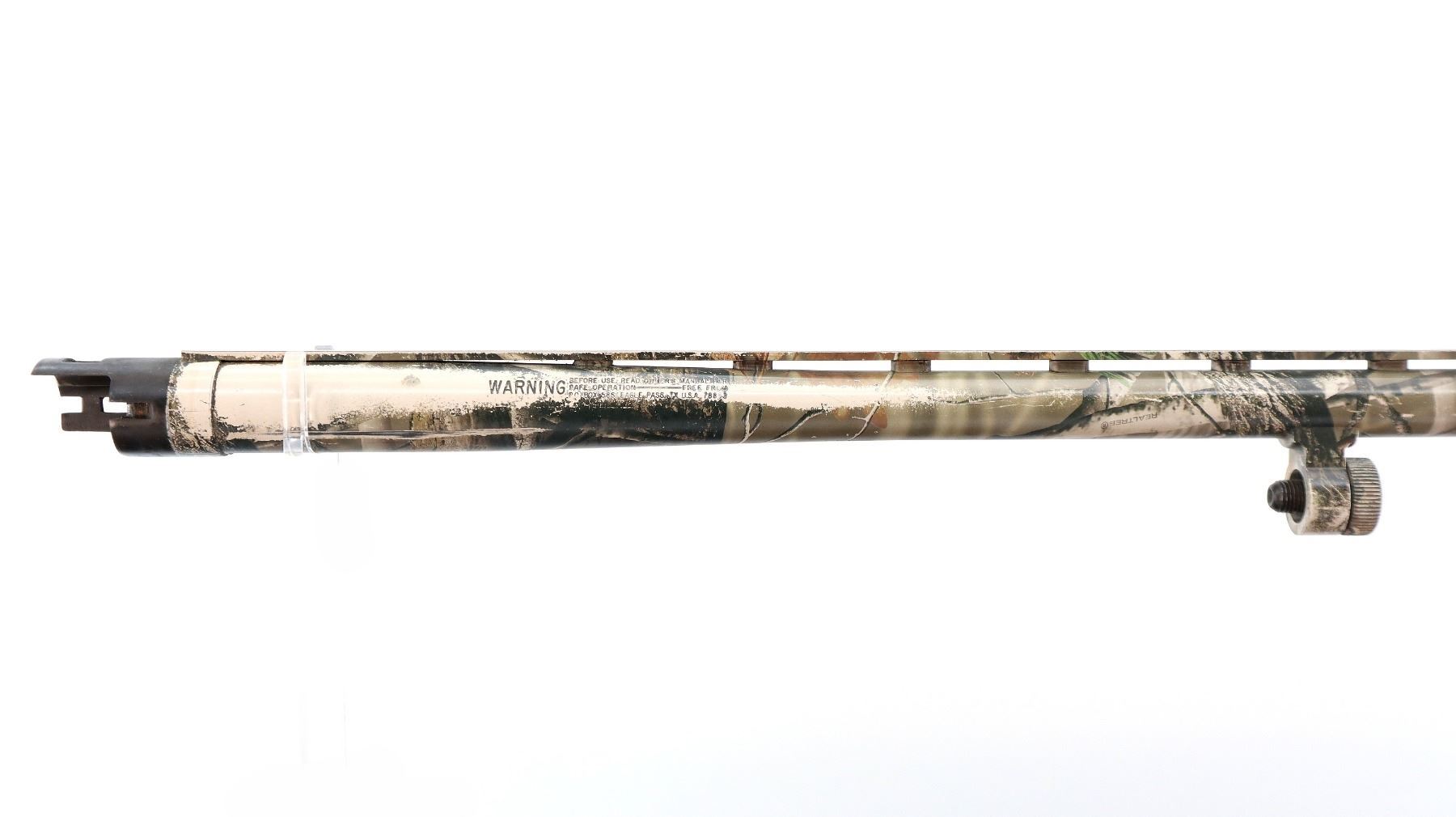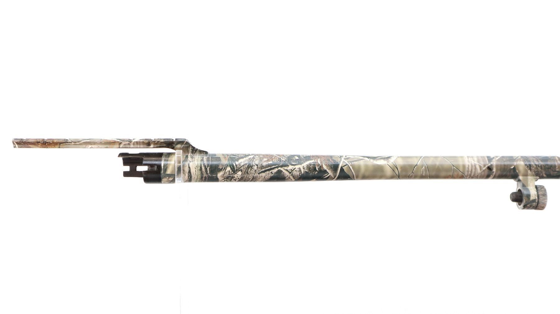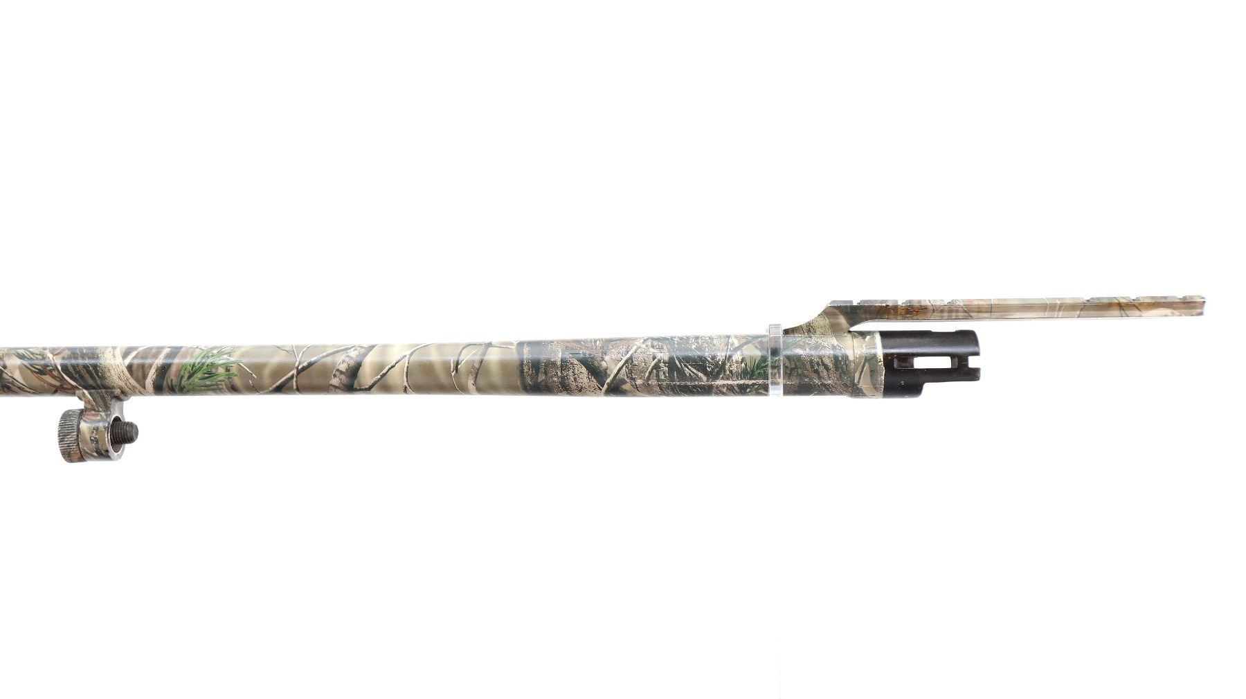 Main Description: White front and brass mid rib beads, Realtree APHD Camo overall, vent rib, ported barrel, alloy receiver, tang safety. Two piece synthetic stocks, finger grooved checkered forearm and pistol grip, black vented rubber recoil pad, swivel studs. 1st Spare Barrel: 12 GX3", 24", Bore is Very Good, Removable Full Choke which is not threaded in fully, may require cleaning or adjustment. APHD camo overall, Red fiber optic front bead, missing mid rib bead, vent rib, ported smooth bore. 2nd Spare Barrel: 12 G X 3", 24", Bore is Very Good (Requires cleaning). No bead, APHD Camo overall, Ported Fully rifled with Cantilever scope rail.