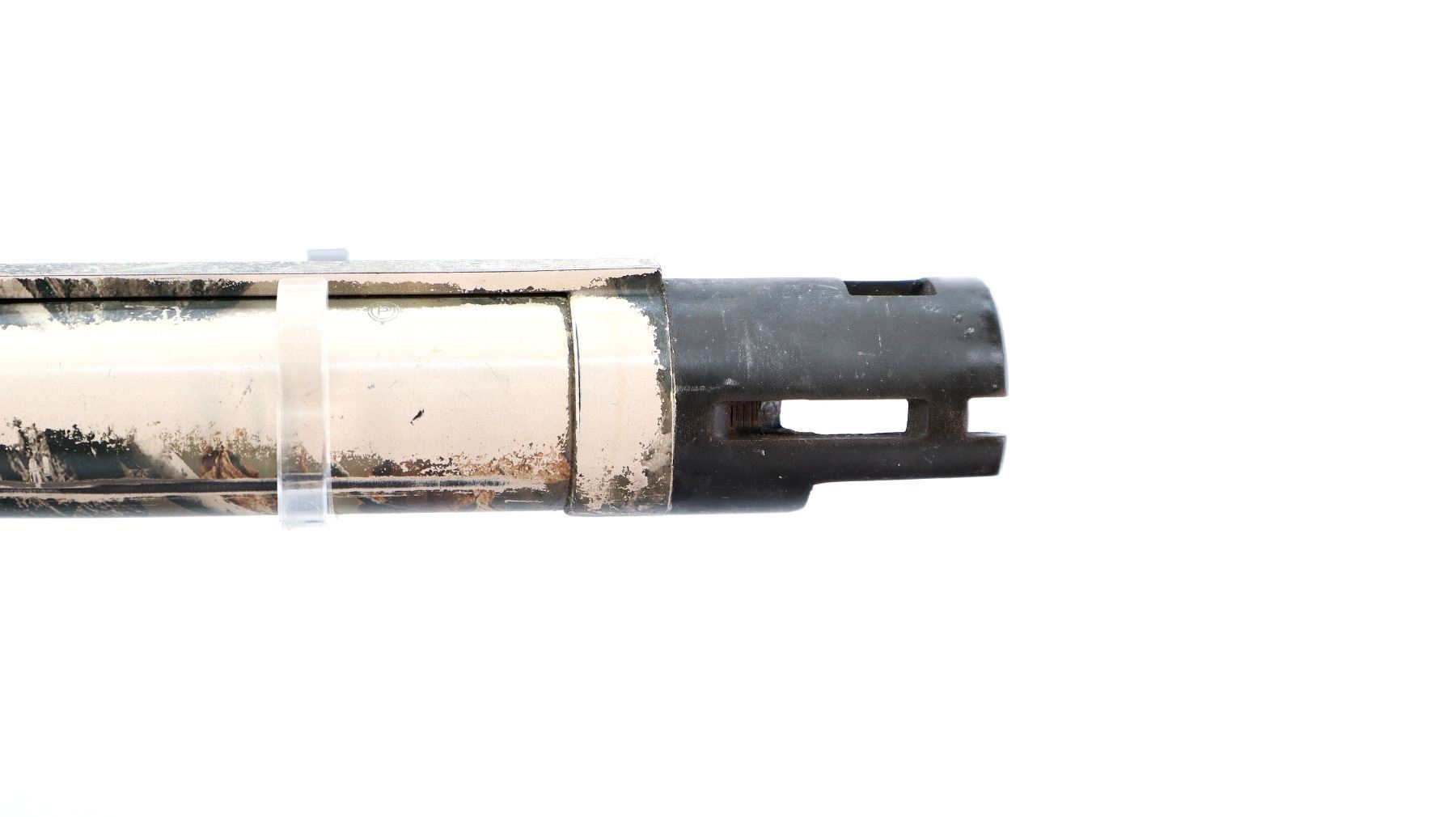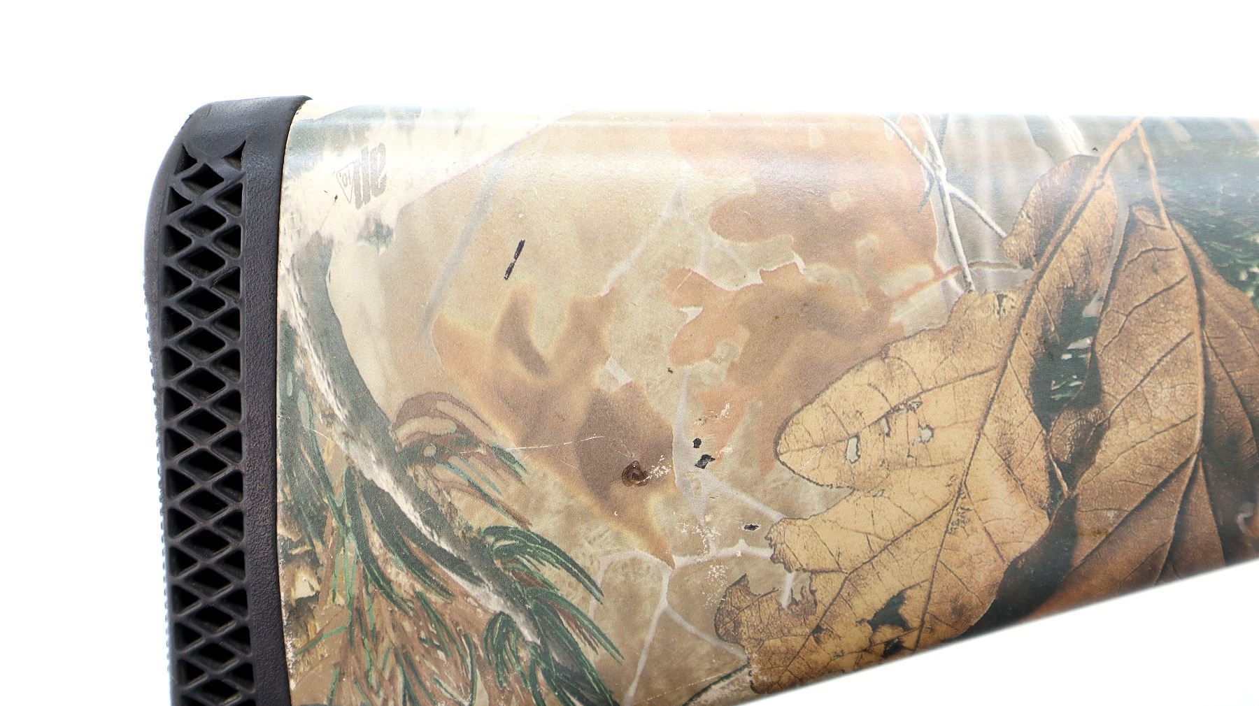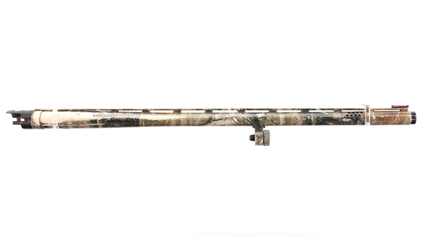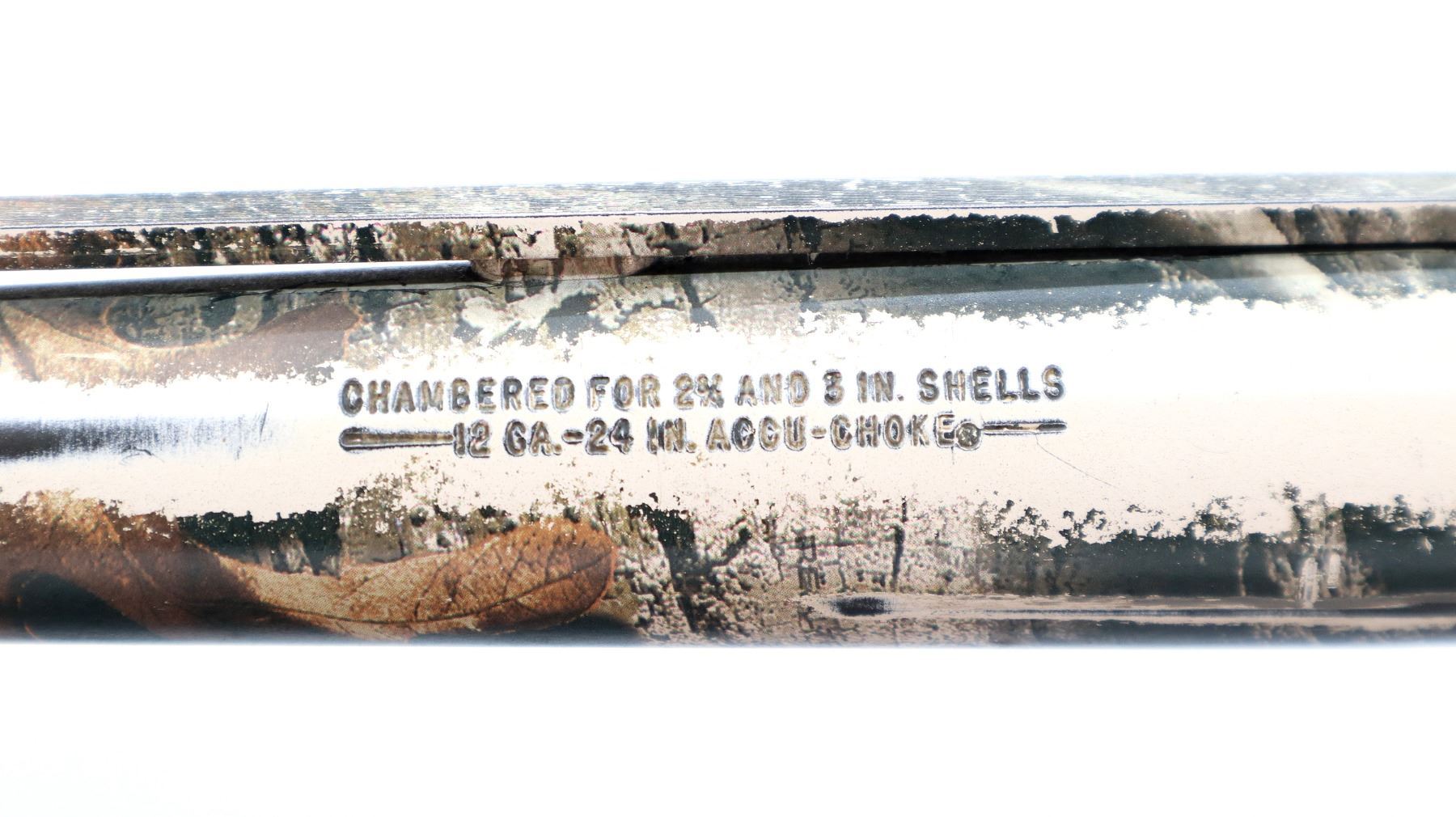 Main Description: White front and brass mid rib beads, Realtree APHD Camo overall, vent rib, ported barrel, alloy receiver, tang safety. Two piece synthetic stocks, finger grooved checkered forearm and pistol grip, black vented rubber recoil pad, swivel studs. 1st Spare Barrel: 12 GX3", 24", Bore is Very Good, Removable Full Choke which is not threaded in fully, may require cleaning or adjustment. APHD camo overall, Red fiber optic front bead, missing mid rib bead, vent rib, ported smooth bore. 2nd Spare Barrel: 12 G X 3", 24", Bore is Very Good (Requires cleaning). No bead, APHD Camo overall, Ported Fully rifled with Cantilever scope rail.