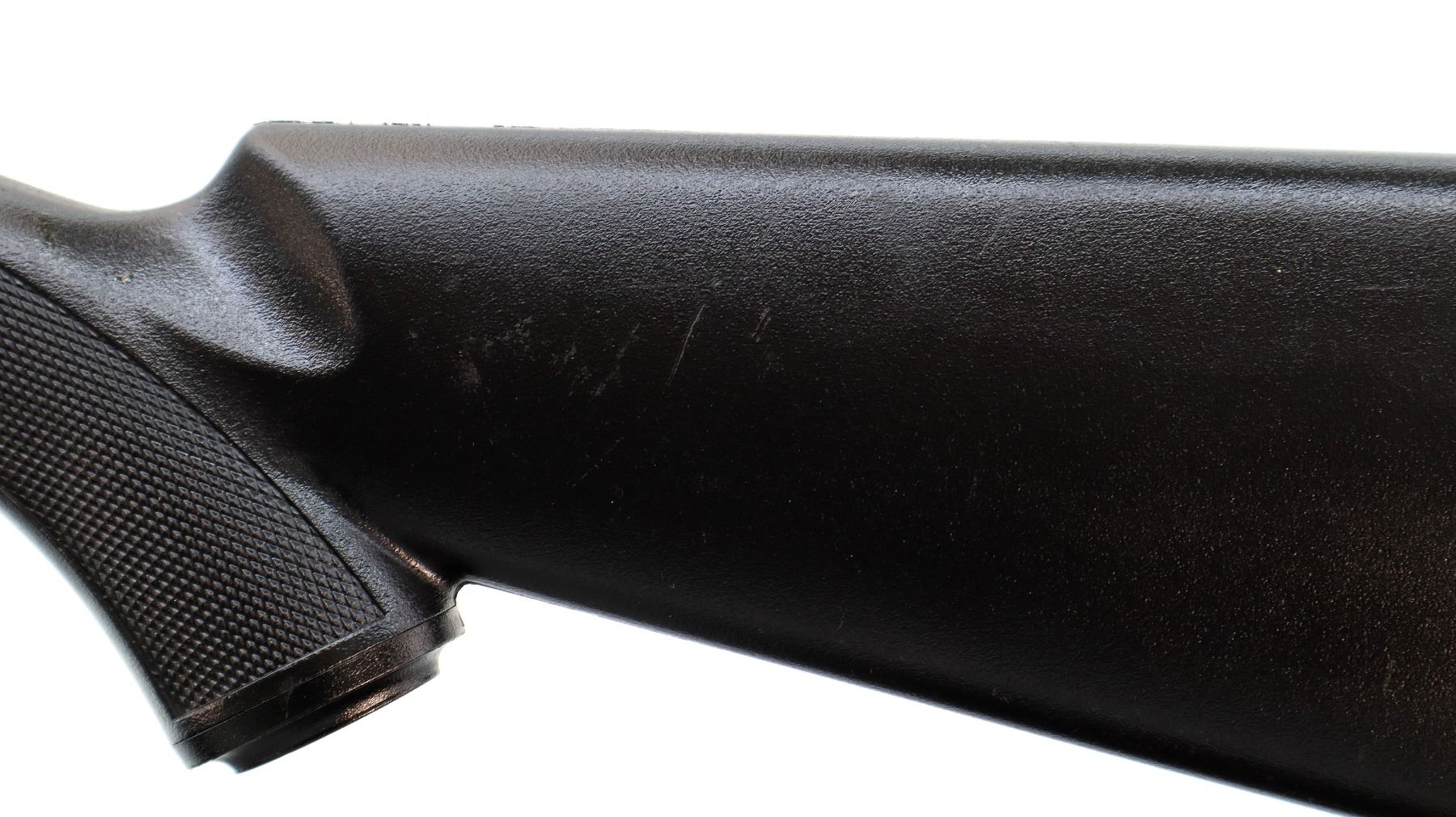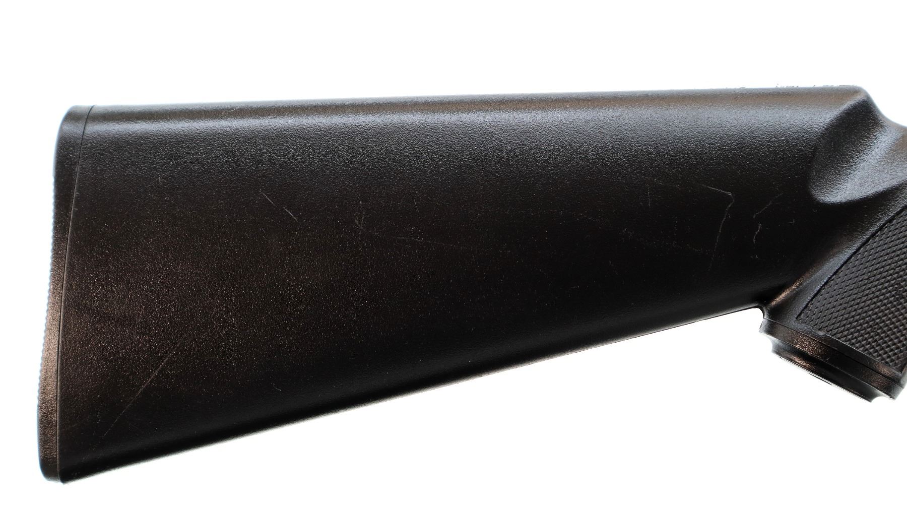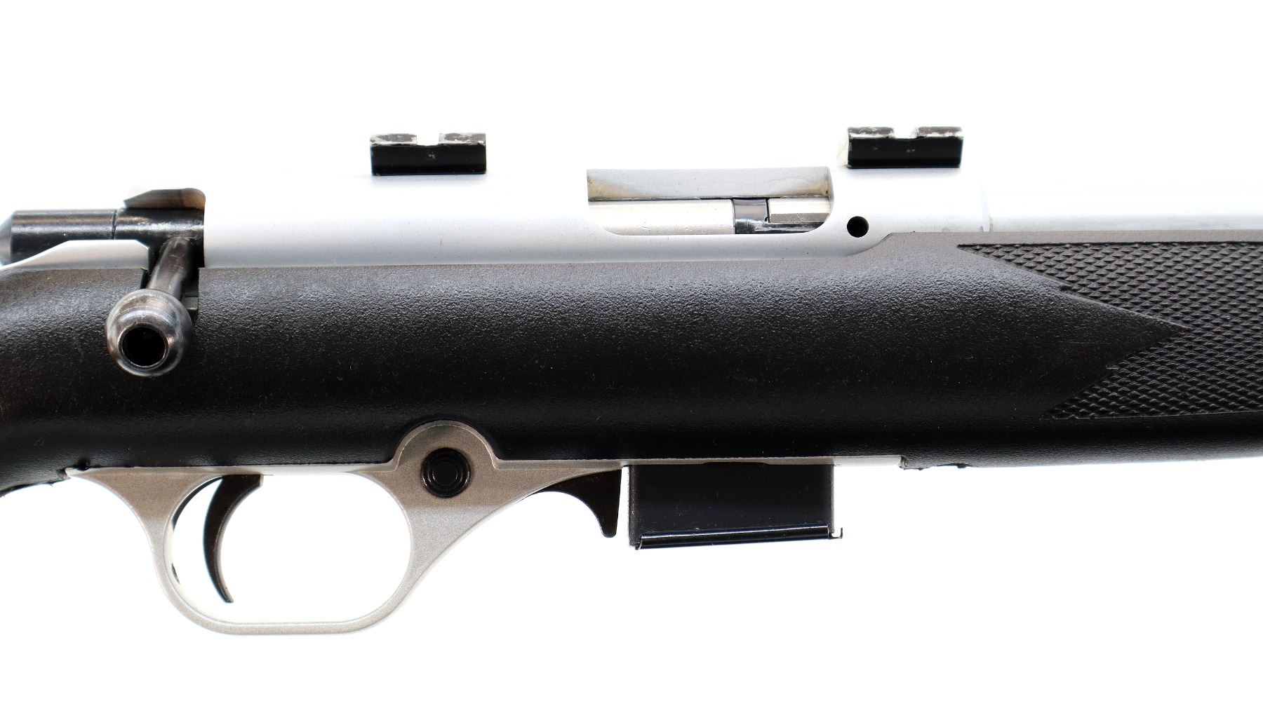 Main Description: No sights, stainless finish, receiver drilled and tapped with two piece scope bases installed, smooth bolt knob. One piece black synthetic stock, Schnabel forend tip, checkered forearm and pistol grip, grooved black polymer butt plate, grip cap.