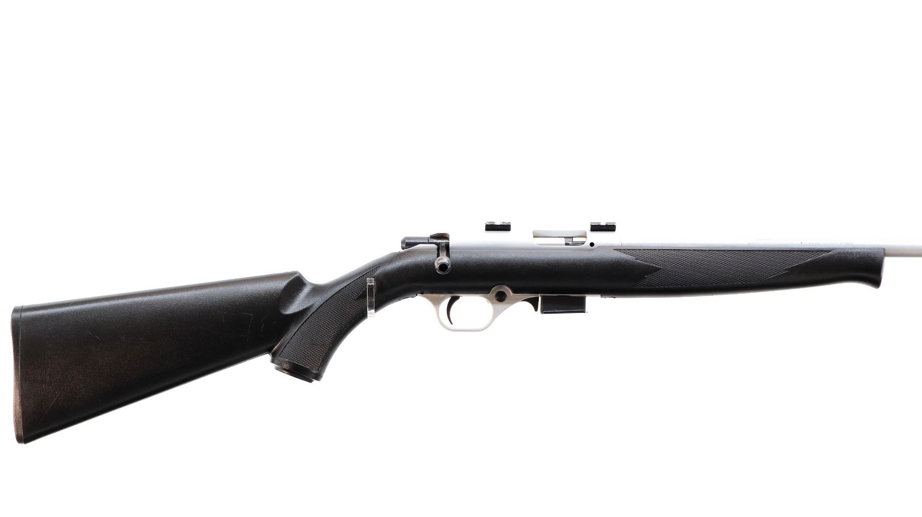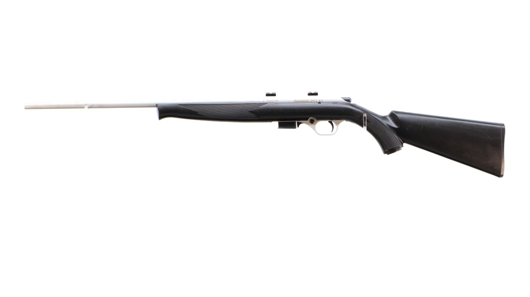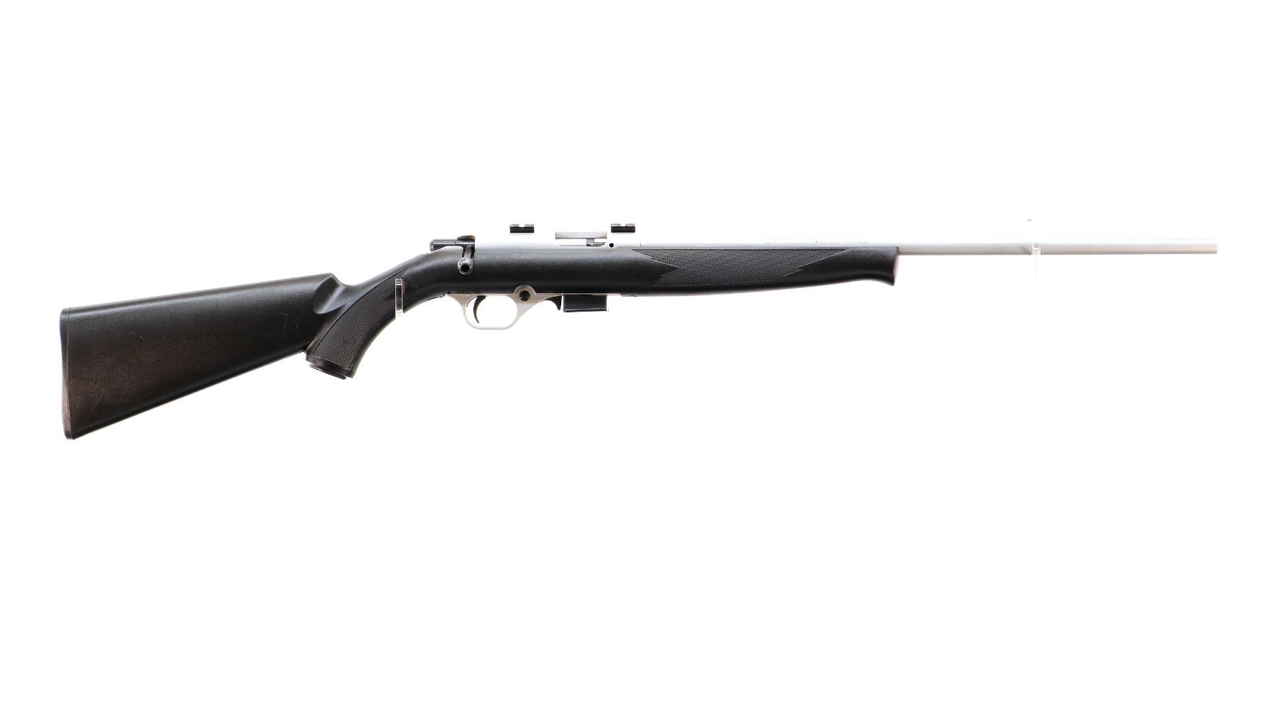 Main Description: No sights, stainless finish, receiver drilled and tapped with two piece scope bases installed, smooth bolt knob. One piece black synthetic stock, Schnabel forend tip, checkered forearm and pistol grip, grooved black polymer butt plate, grip cap.