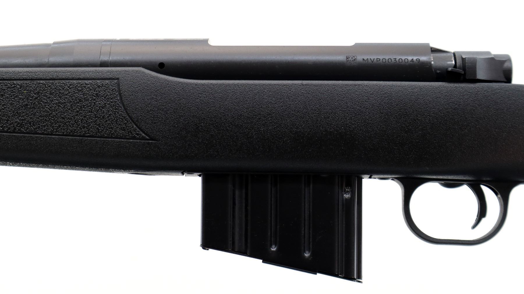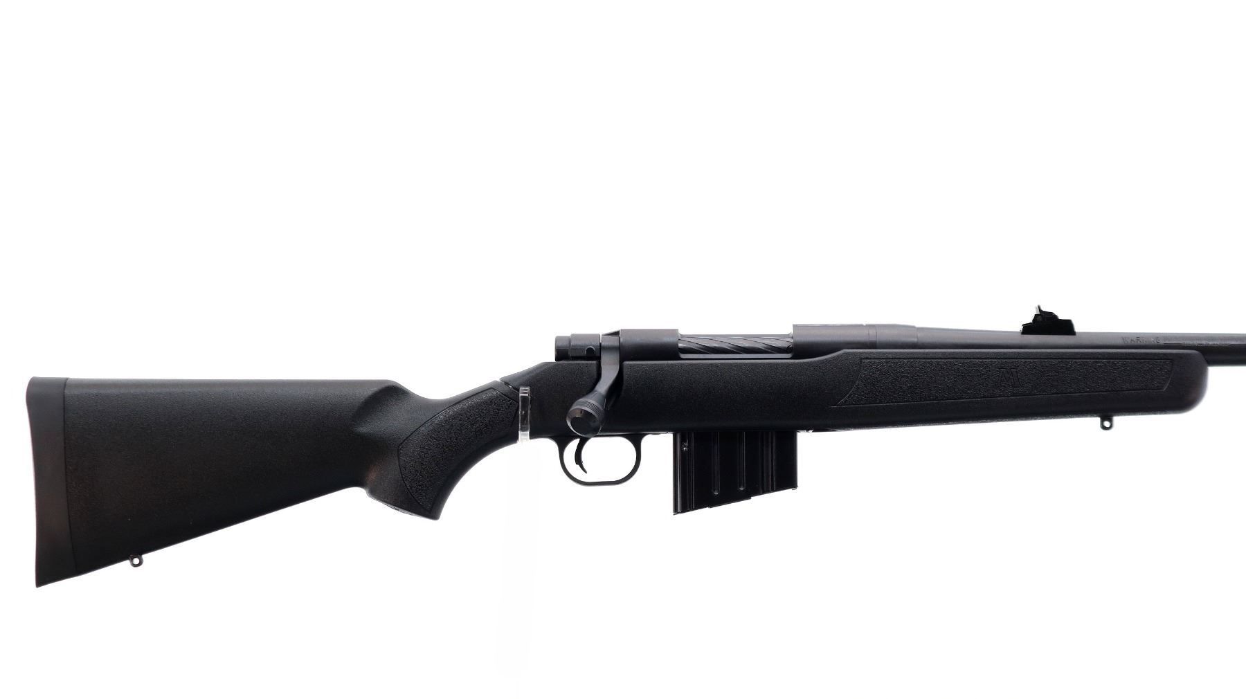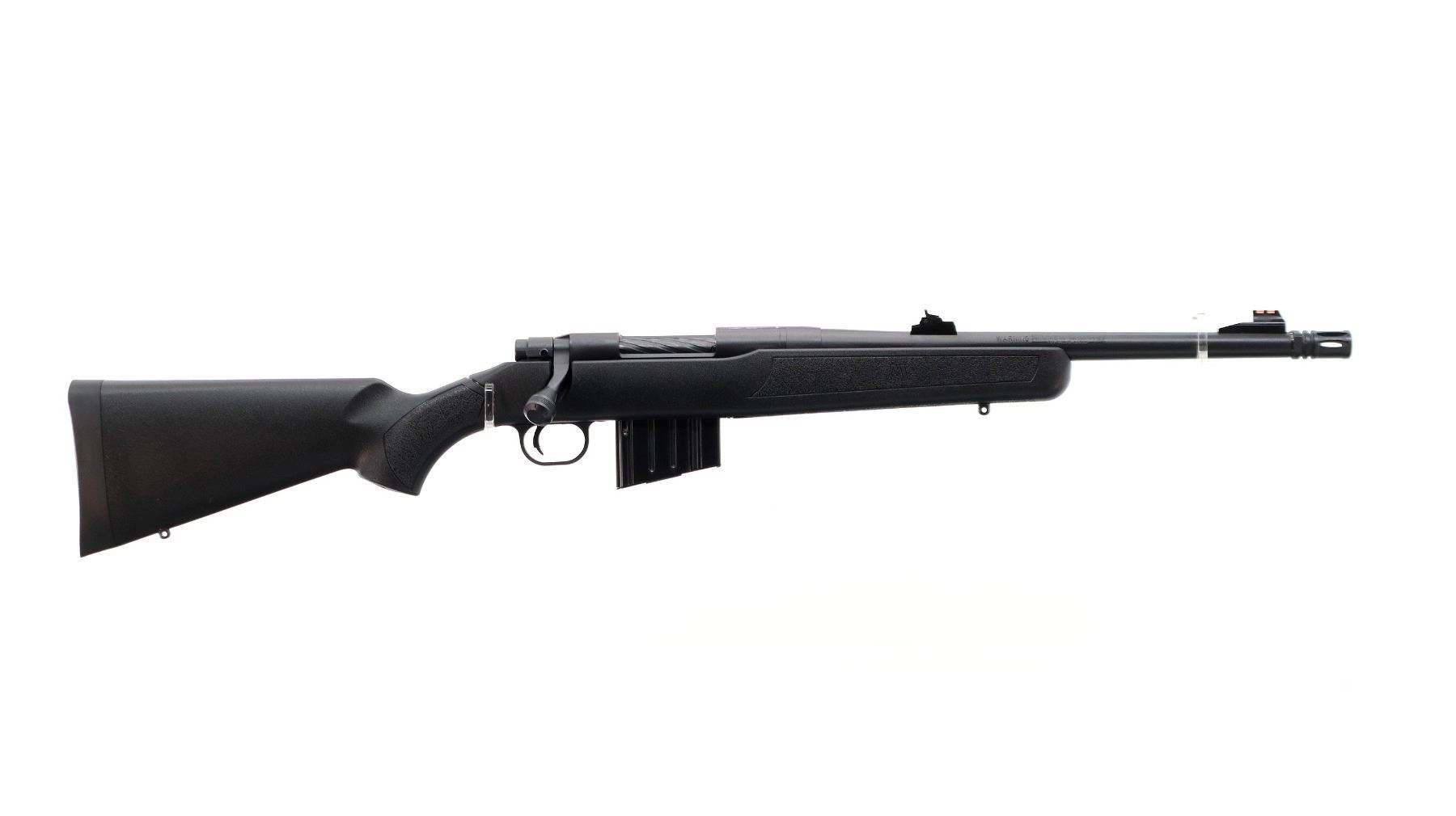 Main Description: Red fiber optic blade front sight with ramp, adjustable u notched rear sight, Parkerized metal finish, threaded muzzle with flashider installed, receiver drilled and tapped with no plug screws, fluted bolt with grooved knob. One piece black synthetic stock, textured forearm and pistol grip panels, black rubber recoil pad, grip cap, swivel studs.