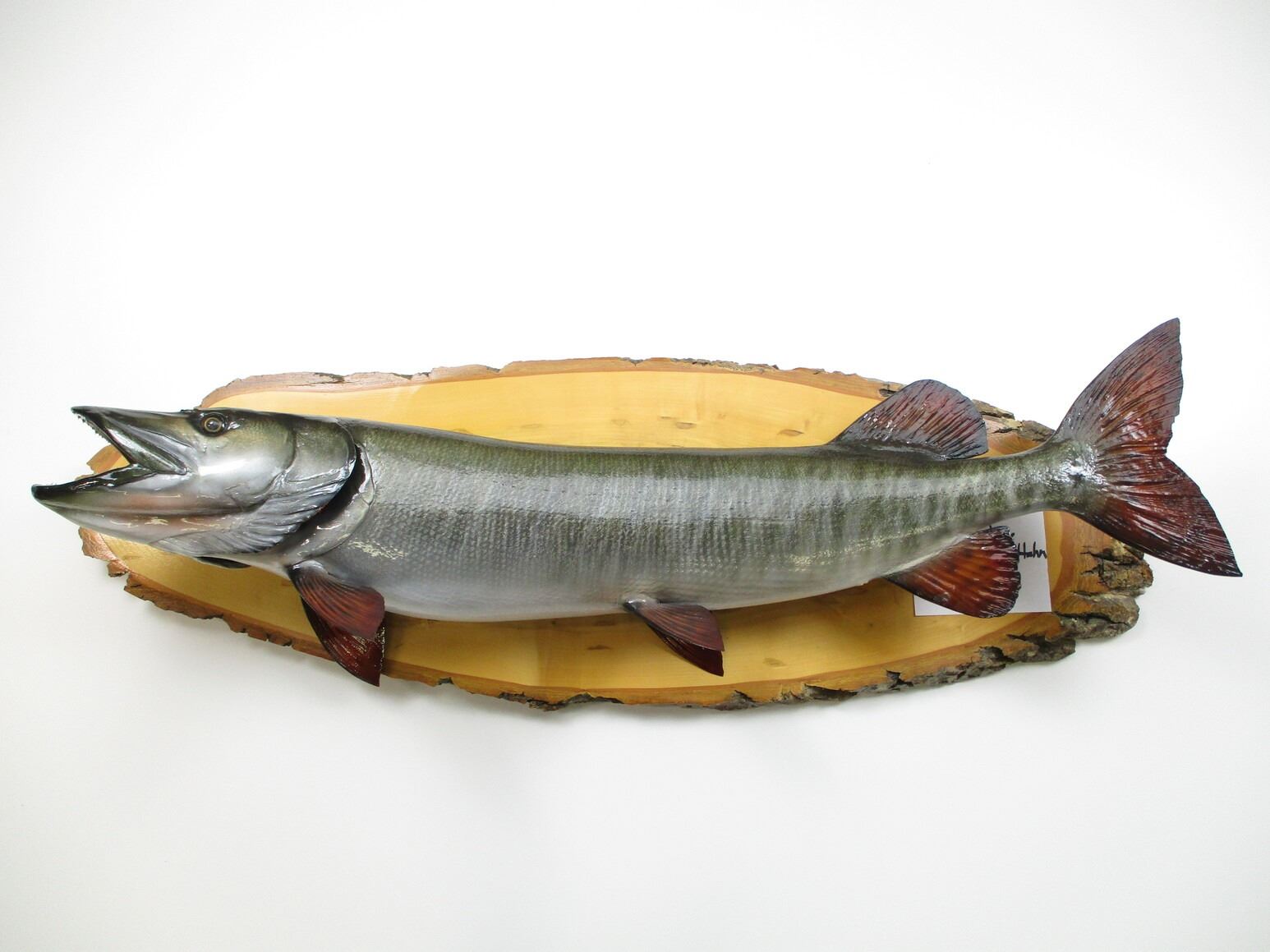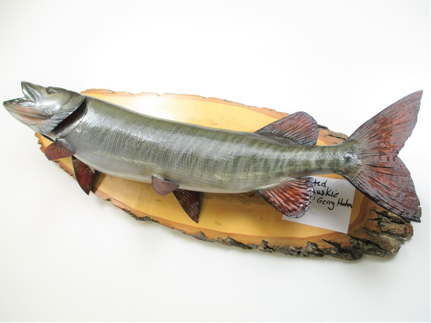 MOUNTED MUSKIE , A IMPRESSIVE 42" SPECIMAN MOUNTED ON A BEAUTIFUL 45" LIVE EDGE BOARD. THIS IS A 3D MODEL, NOT AN ACTUAL FISH., RETAIL VALUE $500, GENEROUSLY DONATED BY GERRY HAHN