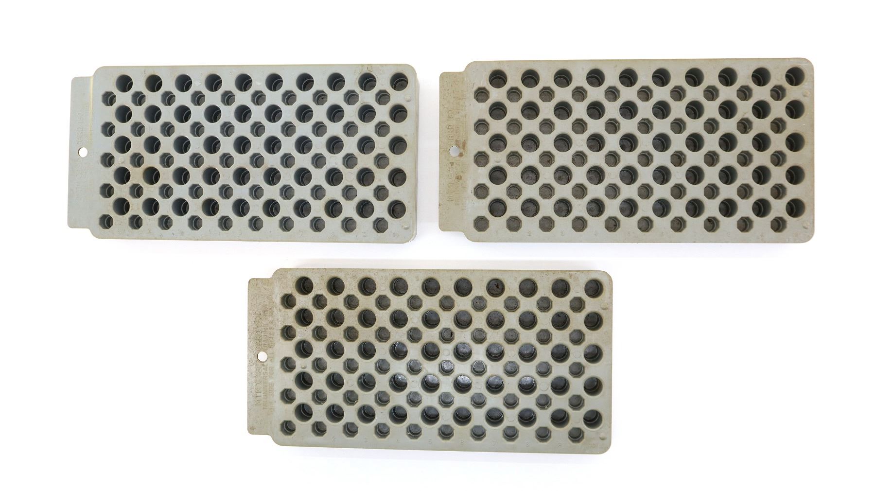 LOT INCLUDES; (3) GREY PLASTIC TRI-UNIVERSAL LOADING TRAYS, FITS 150-RNDS, ONE-SIDE MARKED: "THIS SIDE FOR ALL RIFLES & 38-357" ETC., OTHER-SIDE MARKED: "THIS SIDE FOR 9MM-45 PISTOL" ETC. SEE PHOTOS.