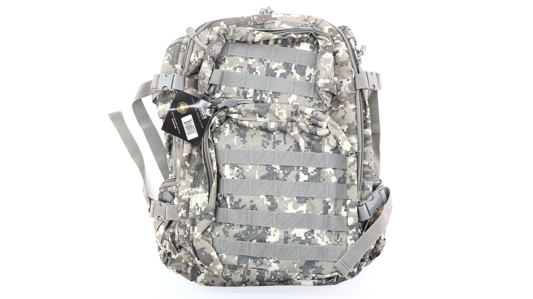 (1) CAMOUFLAGE BACK PACK WITH SHOULDER STRAPS, MOLLE LOOPS & VARIOUS POCKETS, APPEARS NOS. SEE PHOTOS.