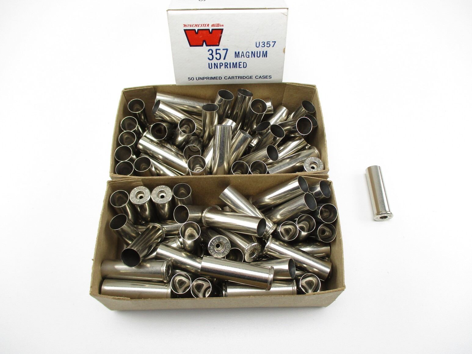 NEW NON PRIMED 357 MAGNUM NICKEL CASES , WINCHESTER, APPROXIMATELY 1.24 LBS.