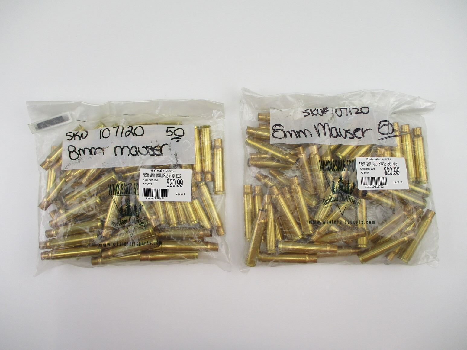 NEW NON-PRIMED 8MM MAUSER CASES LOT, 100 BRASS CASES TOTAL.