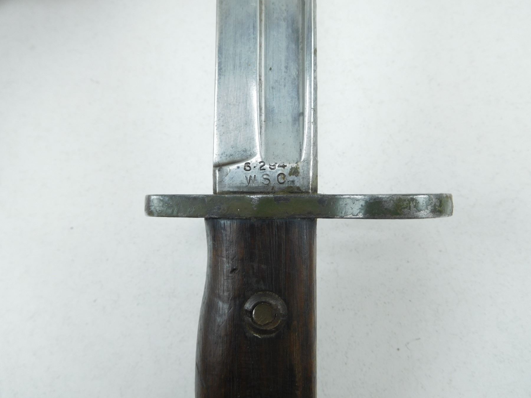 NO.5 JUNGLE CARBINE BAYONET , RICASSO IS BROAD ARROW MARKED & STAMPED S-294 W.S.C. (WILKINSON SWORD COMPANY), NO SCABBARD
