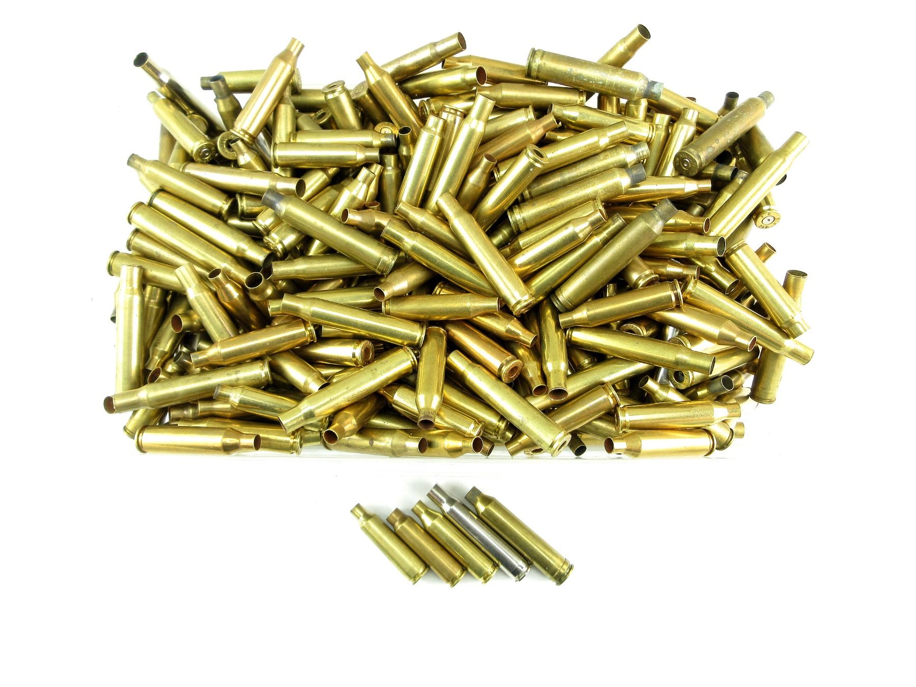 LOT INCLUDES; APPROX. 10 LBS NON-PRIMED CASES, VARIOUS CALIBERS INCLUDING; .22-250 REM, .243 WIN, .300 SAV, .30-06 SPRG, 7MM REM MAG, ETC.