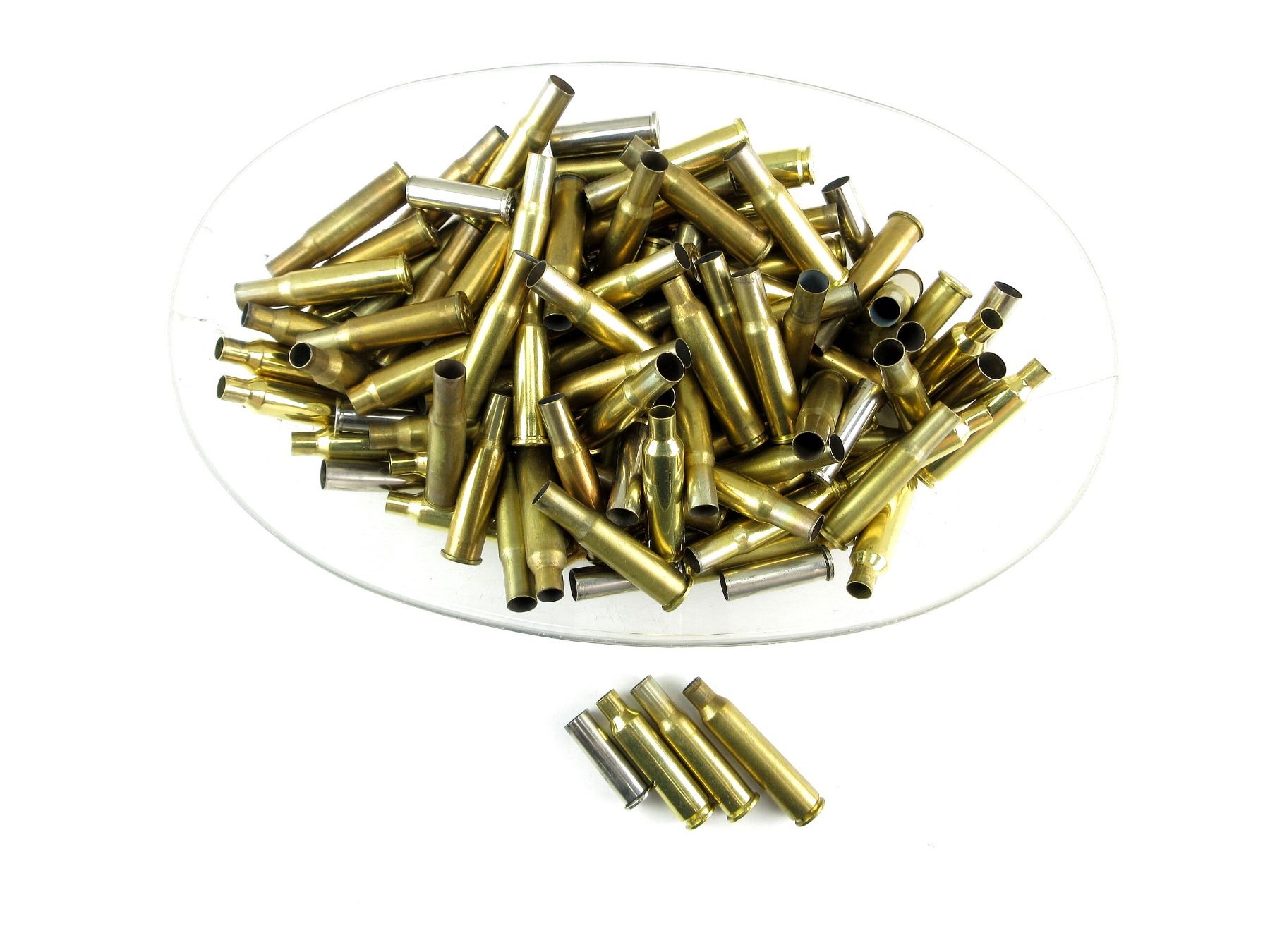 LOT INCLUDES; APPROX. 2.4 LBS NON-PRIMED CASES, VARIOUS CALIBERS INCLUDING; .357 MAG, .303 SAV, 6.5 CREEDMOOR, 6.5X55, .30-40 KRAG, ETC.