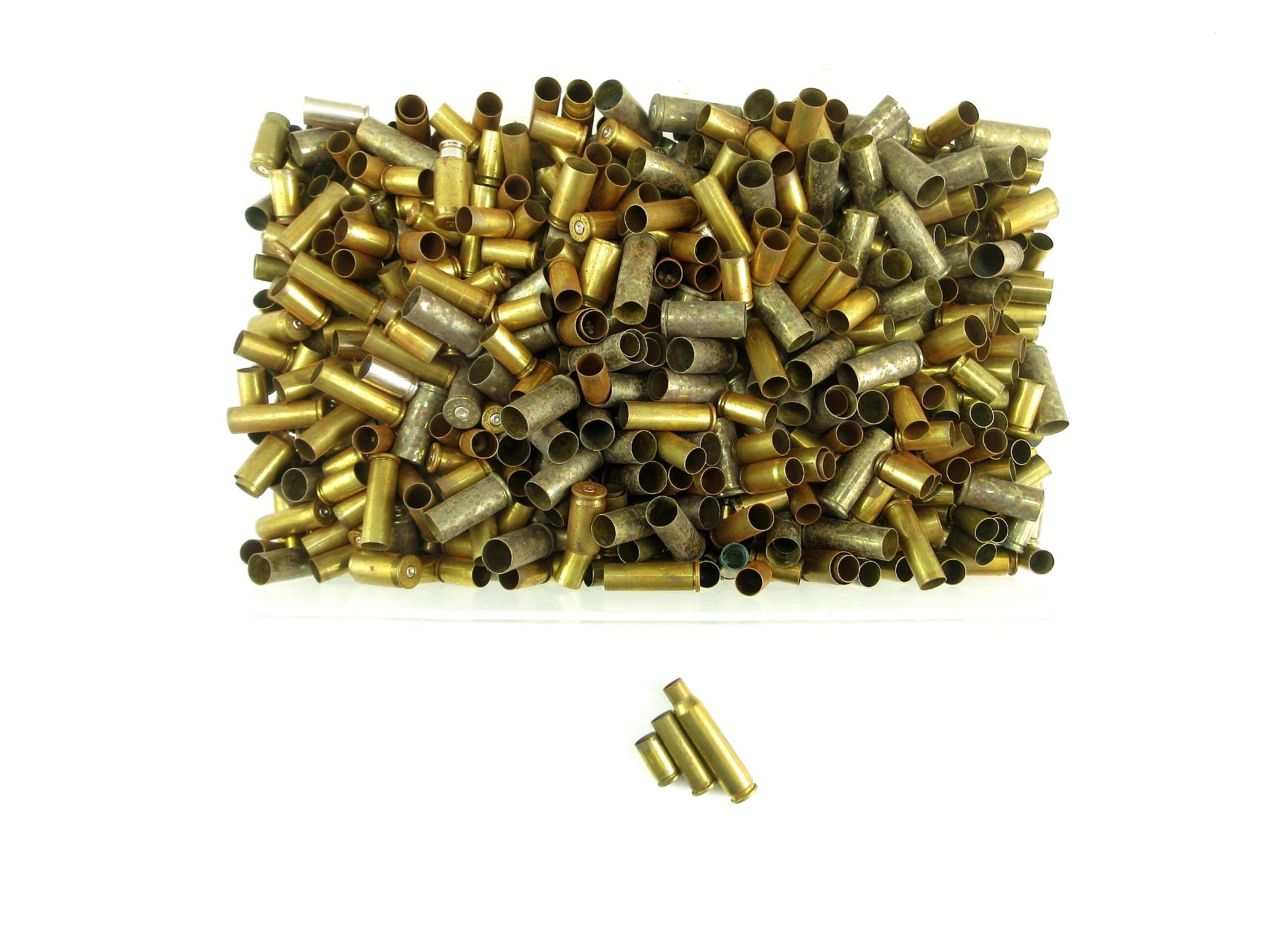 LOT INCLUDES; APPROX. 8 LBS NON-PRIMED BRASS CASES, VARIOUS CALIBERS INCLUDING; 9MM LUGER, .357 MAG, 7.62 NATO (.308), ETC.