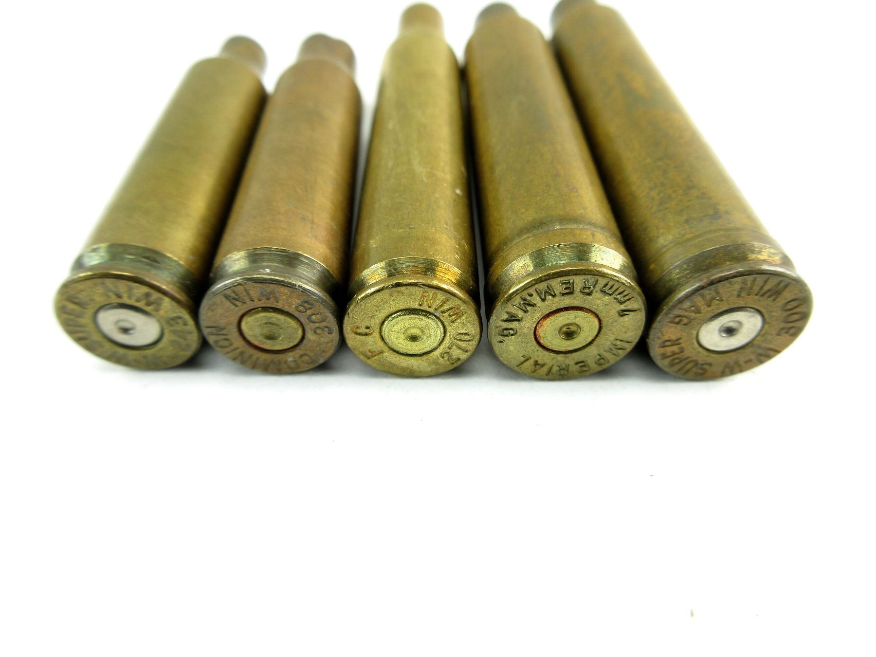 LOT INCLUDES; APPROX. 8.3 LBS NON-PRIMED BRASS CASES, VARIOUS CALIBERS INCLUDING; .243 WIN, .270 WIN, .308 WIN, 7MM REM MAG, .300 WIN MAG, ETC.