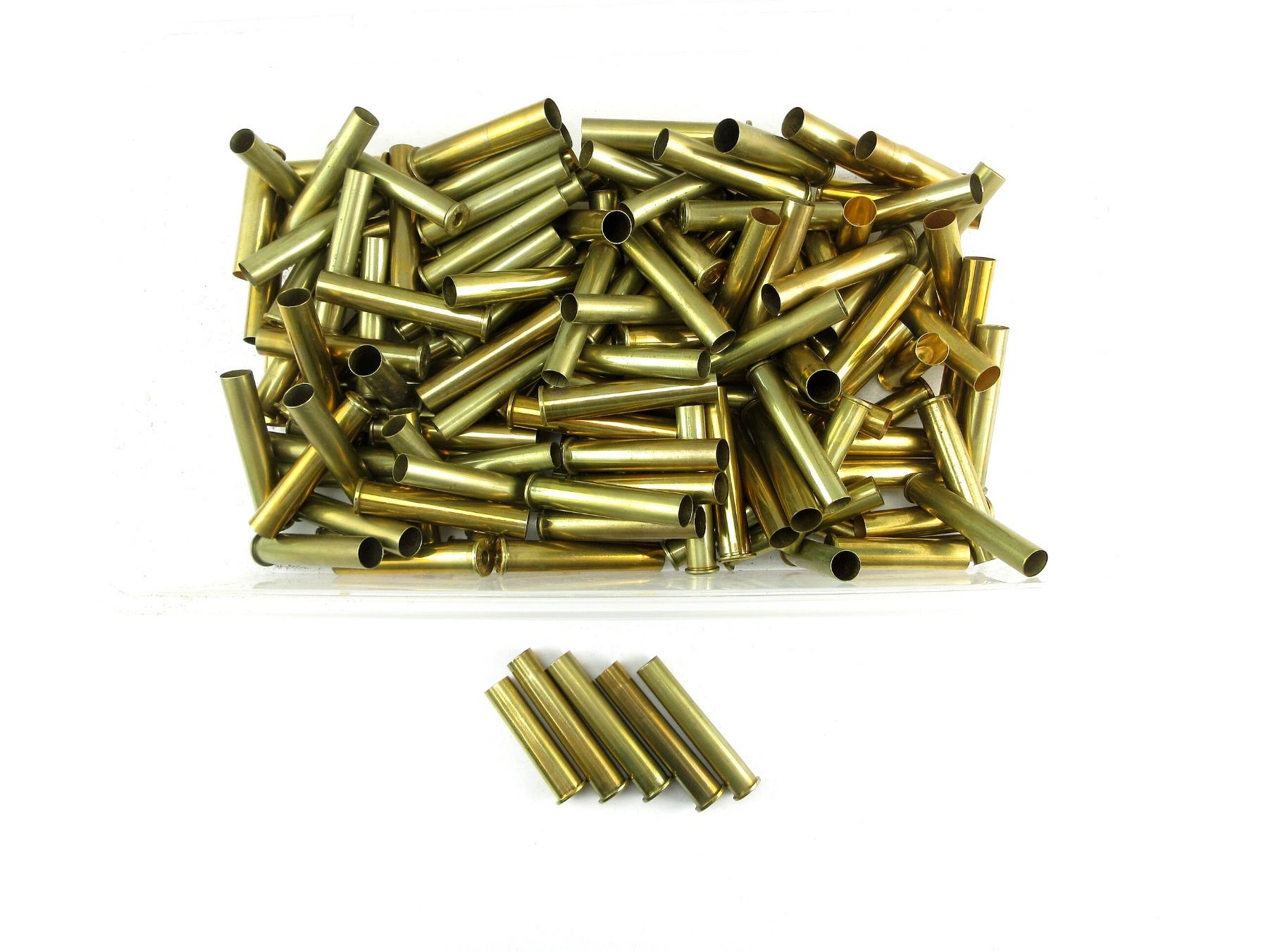 LOT INCLUDES; APPROX. 3.9 LBS NON-PRIMED UNFINISHED BRASS CASES, VARIOUS CALIBERS INCLUDING; .303 BR, .45 BASE, .45-70 GOVT, .348 WIN, .45-2.6, ETC..