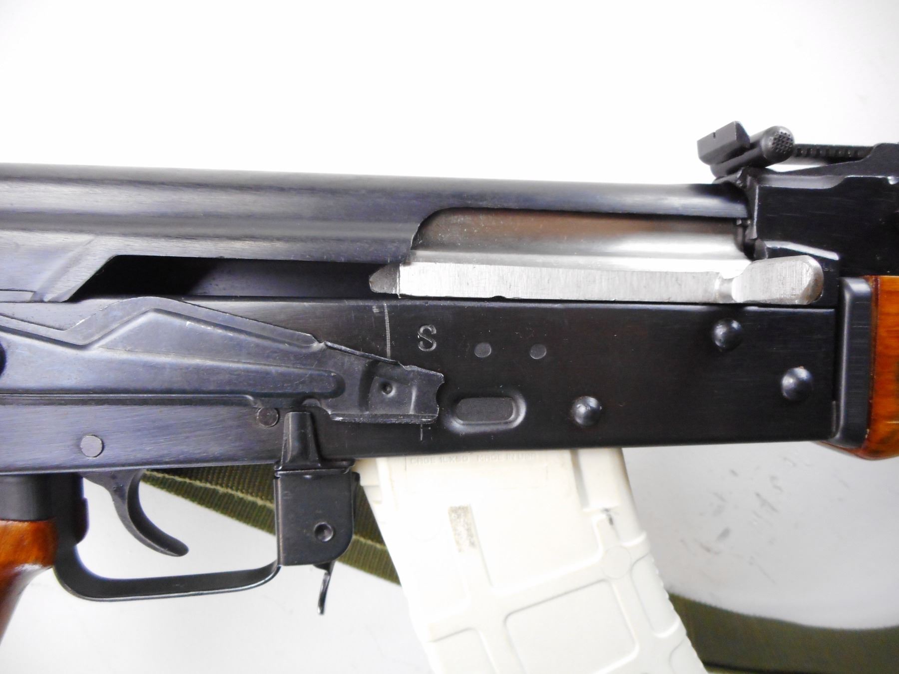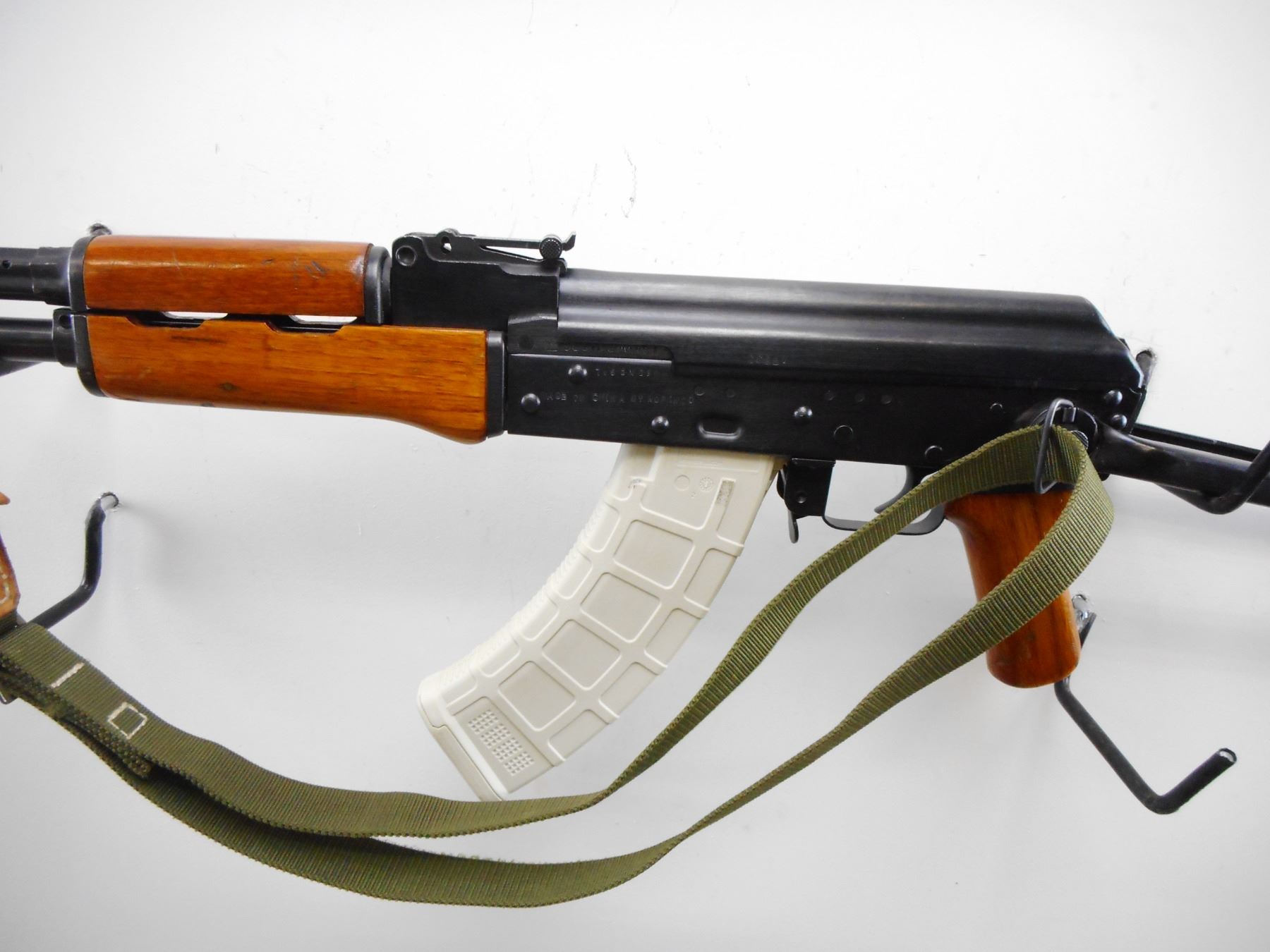 CONDITION: 7/10 , NORINCO , MODEL: 56 S-1 , CALIBER: 7.62X39 , COMES WITH MAGAZINE , CLASS 12-5 PROHIBITED STATUS REQUIRED TO ACCUIRE. IF YOU DON'T HAVE THIS TYPE OF LICENSE WE CAN DEACTIVATE IT FOR YOU FOR AN ADDITIONAL $150.00. BORE IS VERY GOOD. POST FRONT SIGHT WITH HOOD. ADJUSTABLE U NOTCH REAR SIGHT. SMOOTH WOOD HANDGUARD, FOREND AND PISTOL GRIP. FOLDING BUTT STOCK. SWIVELS WITH GREEN CANVAS SLING. BAYONET LUG. NO CLEANING ROD. METAL FINISH SHOWS HANDLING MARKS, SCRATCHES AND WEAR. STOCKS SHOW DINGS, SCRATCHES AND WEAR. , ACTION: SEMI AUTOMATIC , BARREL LENGTH: 355MM , SERIAL # 800221 , CLASS: CANADIAN CLASS PROHIBITED 12-5