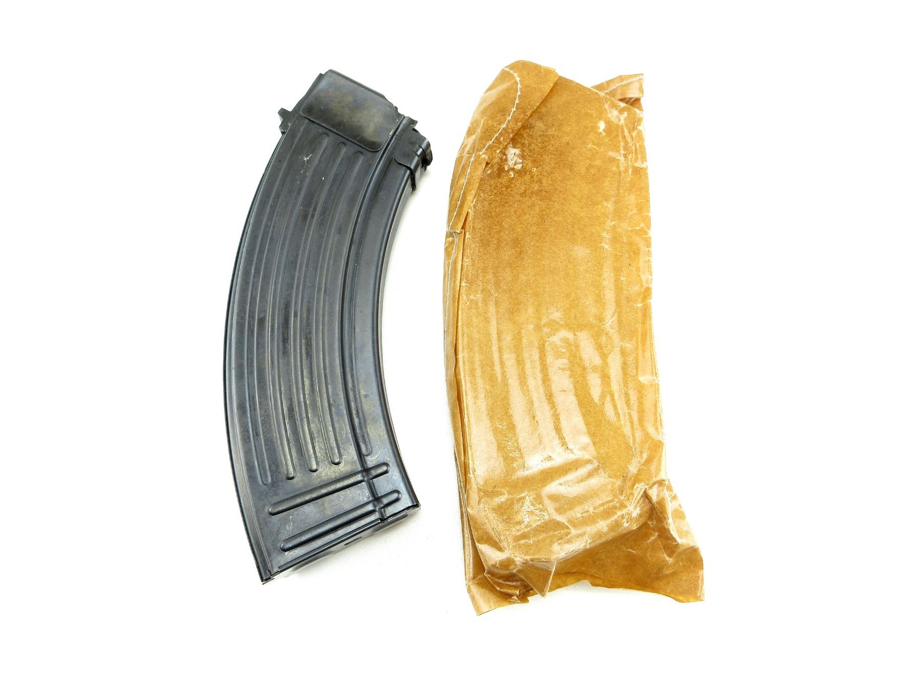 (1) 7.62X39MM, 5/30 ROUND PINNED MAG, STEEL CONSTRUCTION, UNMARKED, APPEARS NOS, IN ORIGINAL PAPER, ALSO FITS AK 47 RIFLES. SEE PHOTOS. PAL REQUIRED.