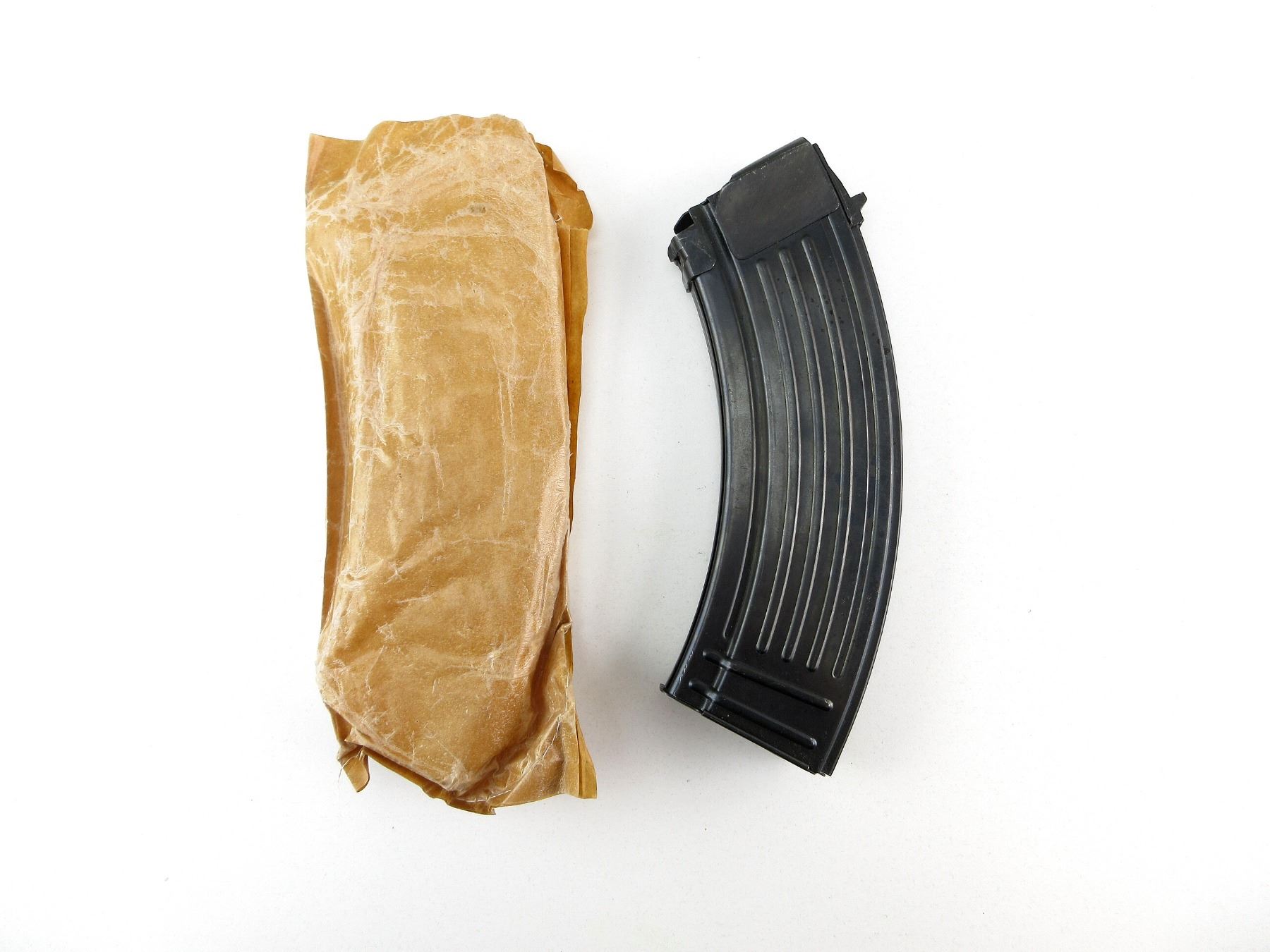(1) 7.62X39MM, 5/30 ROUND PINNED MAG, STEEL CONSTRICTION, UNMARKED, NOS, WITH ORIGINAL PAPER, ALSO FITS AK 47 RIFLES. SEE PHOTOS. PAL REQUIRED.