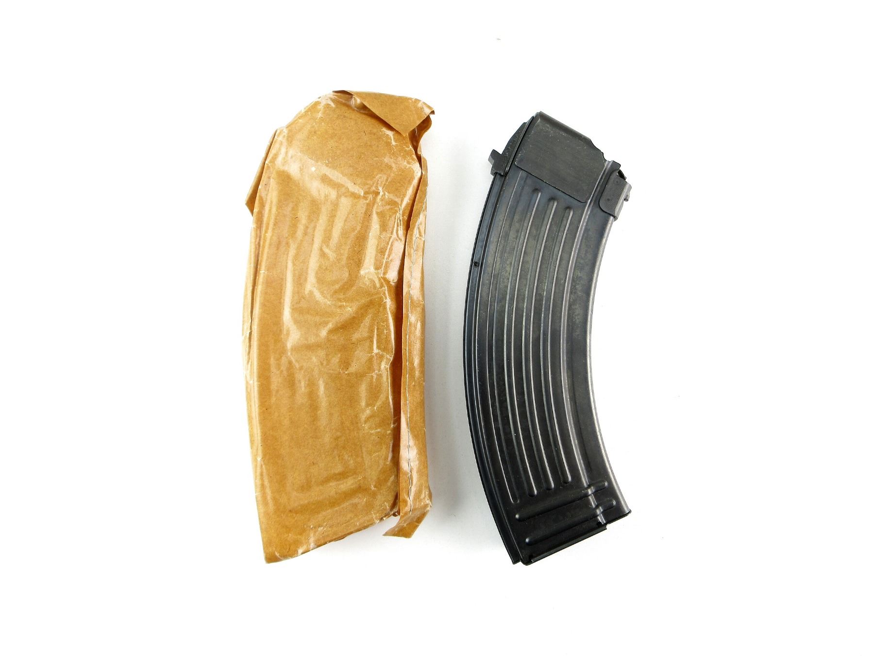 (1) 7.62X39MM, 5/30 ROUND PINNED MAG, STEEL CONSTRICTION, UNMARKED, NOS, WITH ORIGINAL PAPER, ALSO FITS AK 47 RIFLES. SEE PHOTOS. PAL REQUIRED.