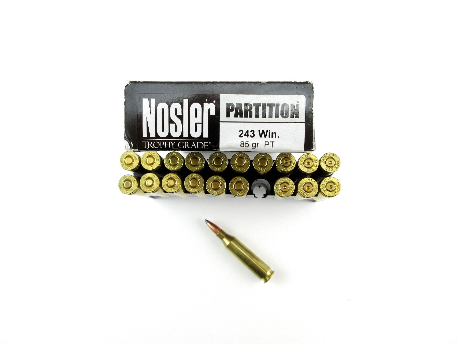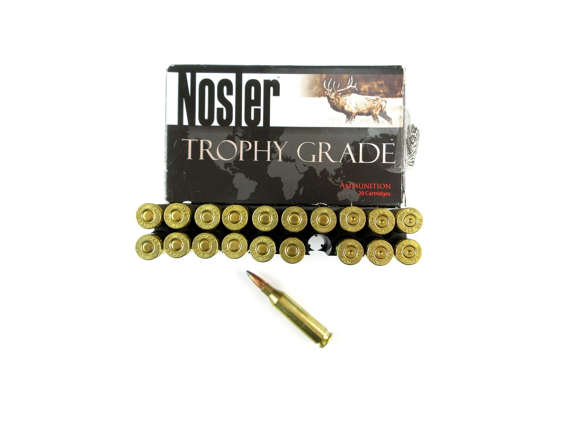 NOSLER TROPHY GRADE .243 WIN AMMO AND NON-PRIMED BRASS CASES LOT