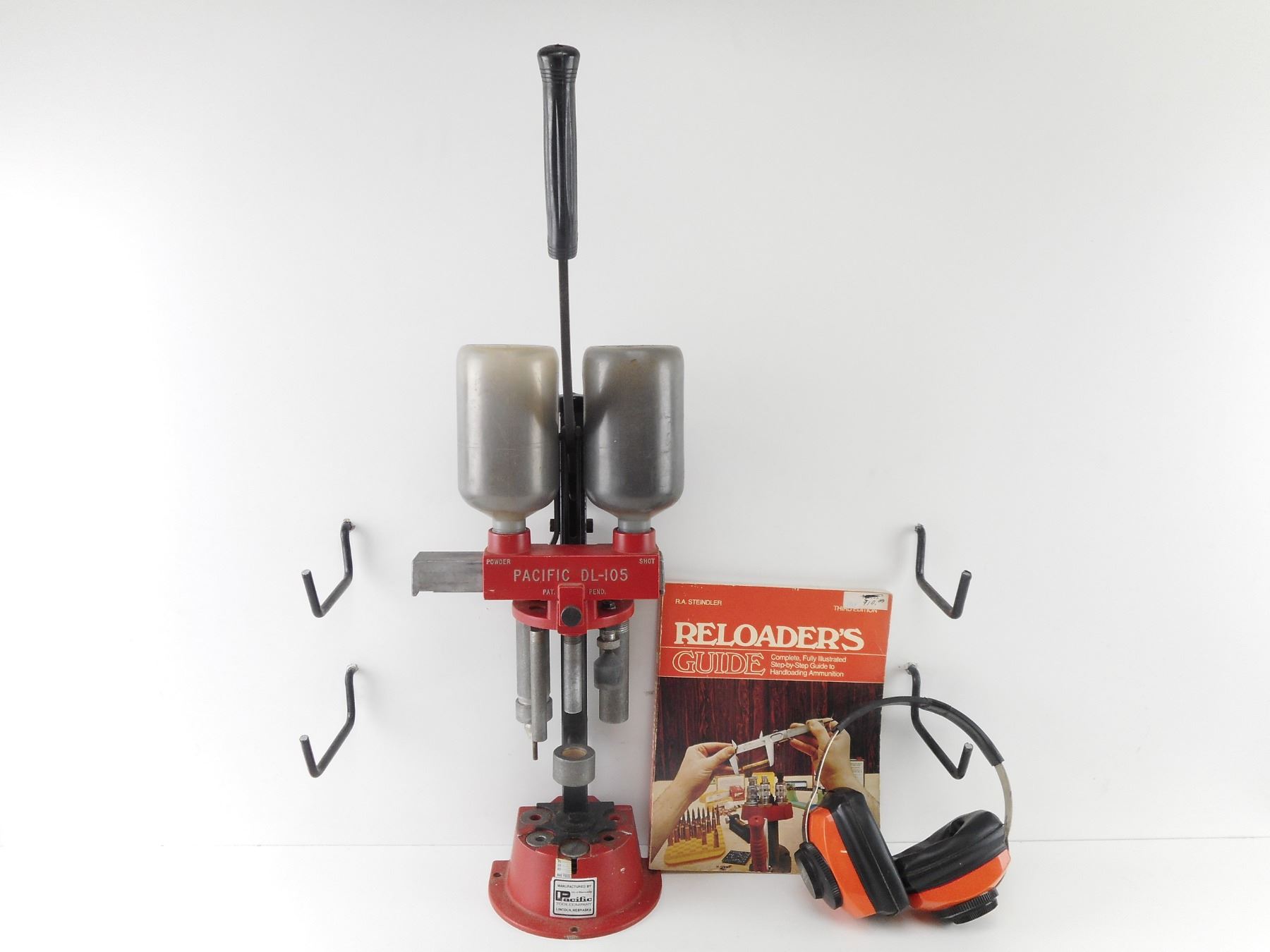 PACIFIC DL-105 12 GAUGE RELOADING PRESS, RELOADERS GUIDE, EAR PROTECTION