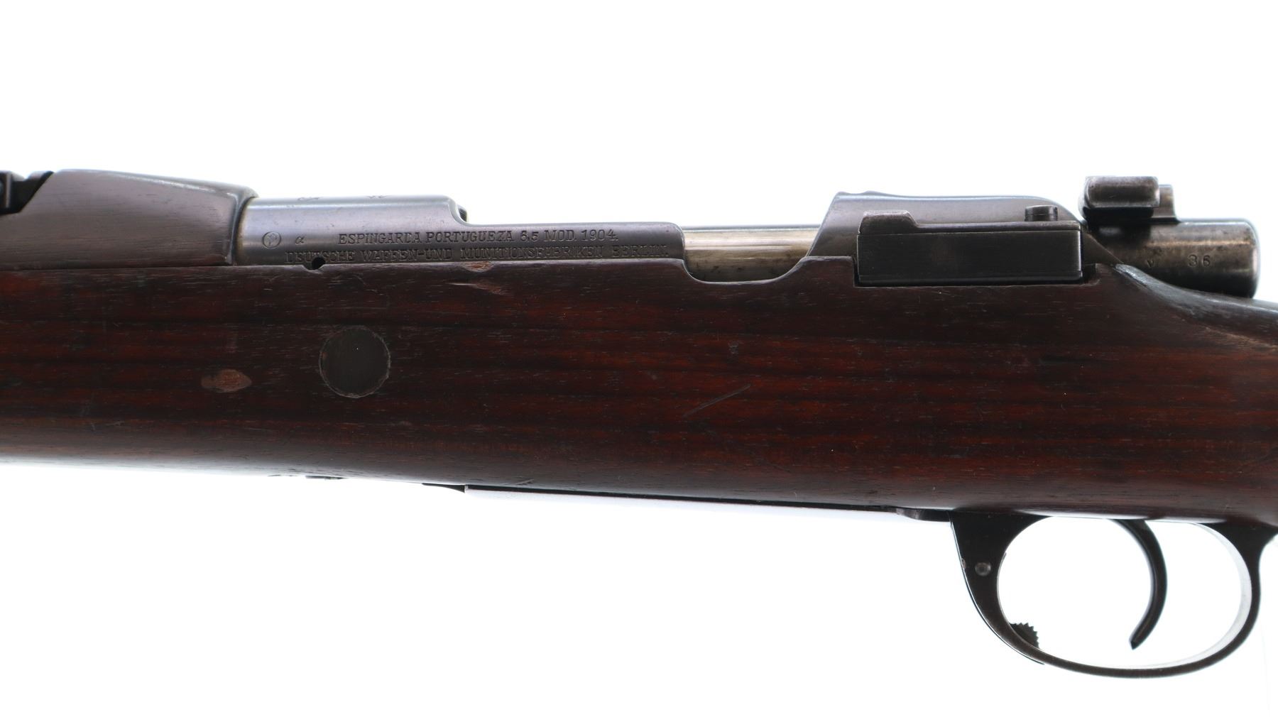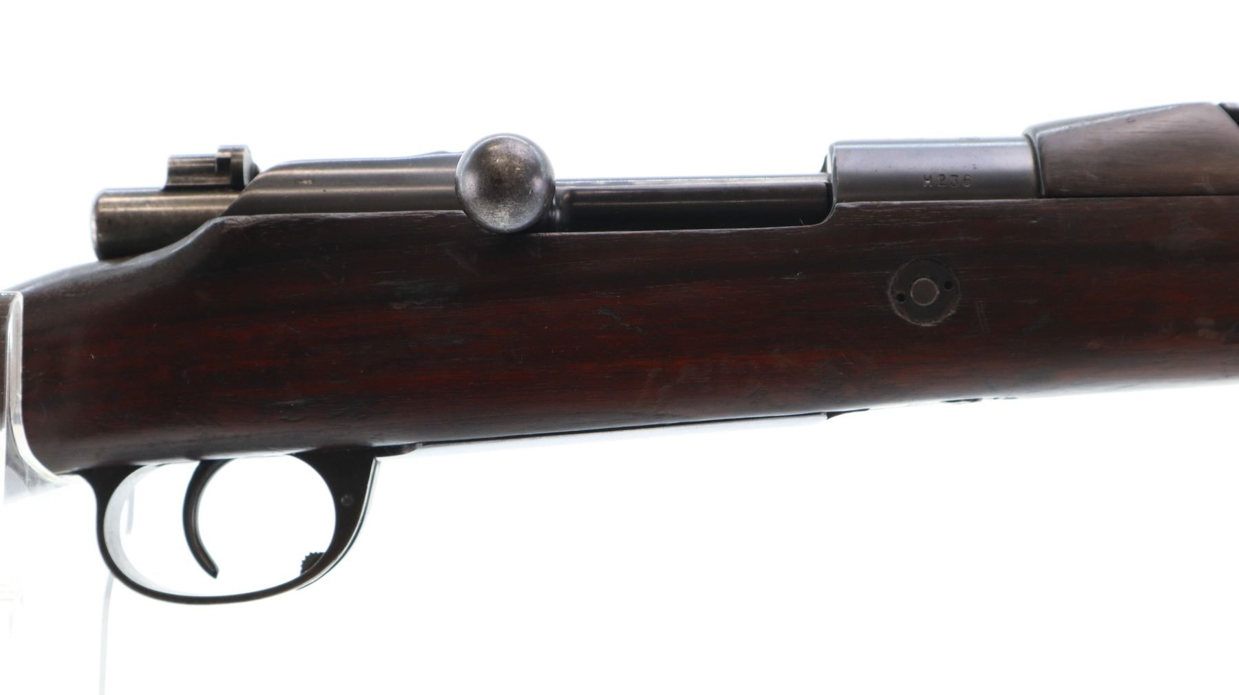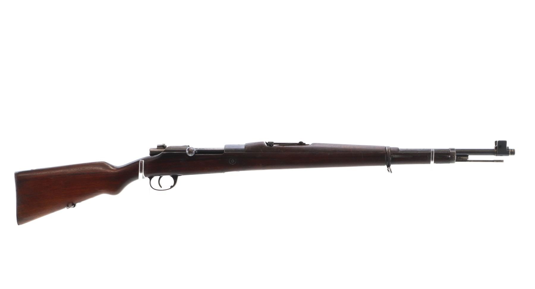 Main Description: Manufactured by DWM, visible numbers match. Blade front sight with ears and ramp, adjustable u notched rear sight, blued finish, straight bolt handle. Two piece smooth full military wood stocks, cracked forend, pistol grip, smooth steel butt plate, sling swivels, bayonet lug, cleaning rod.