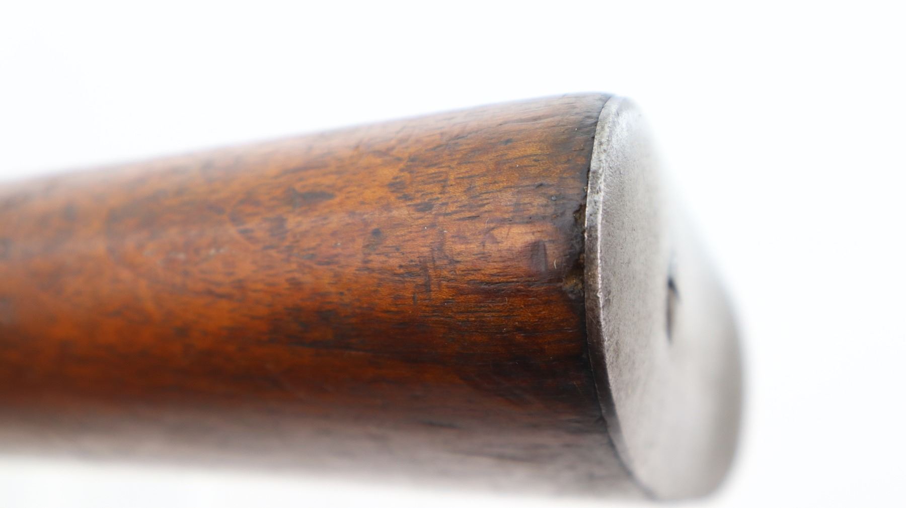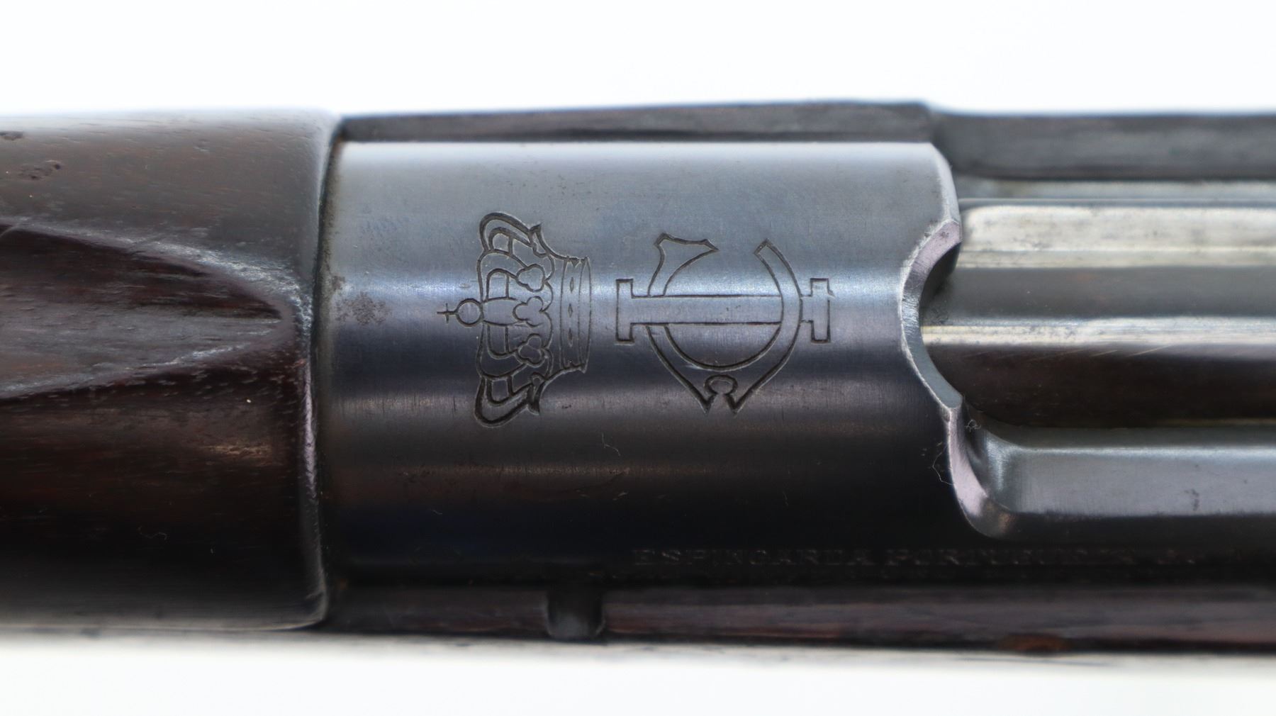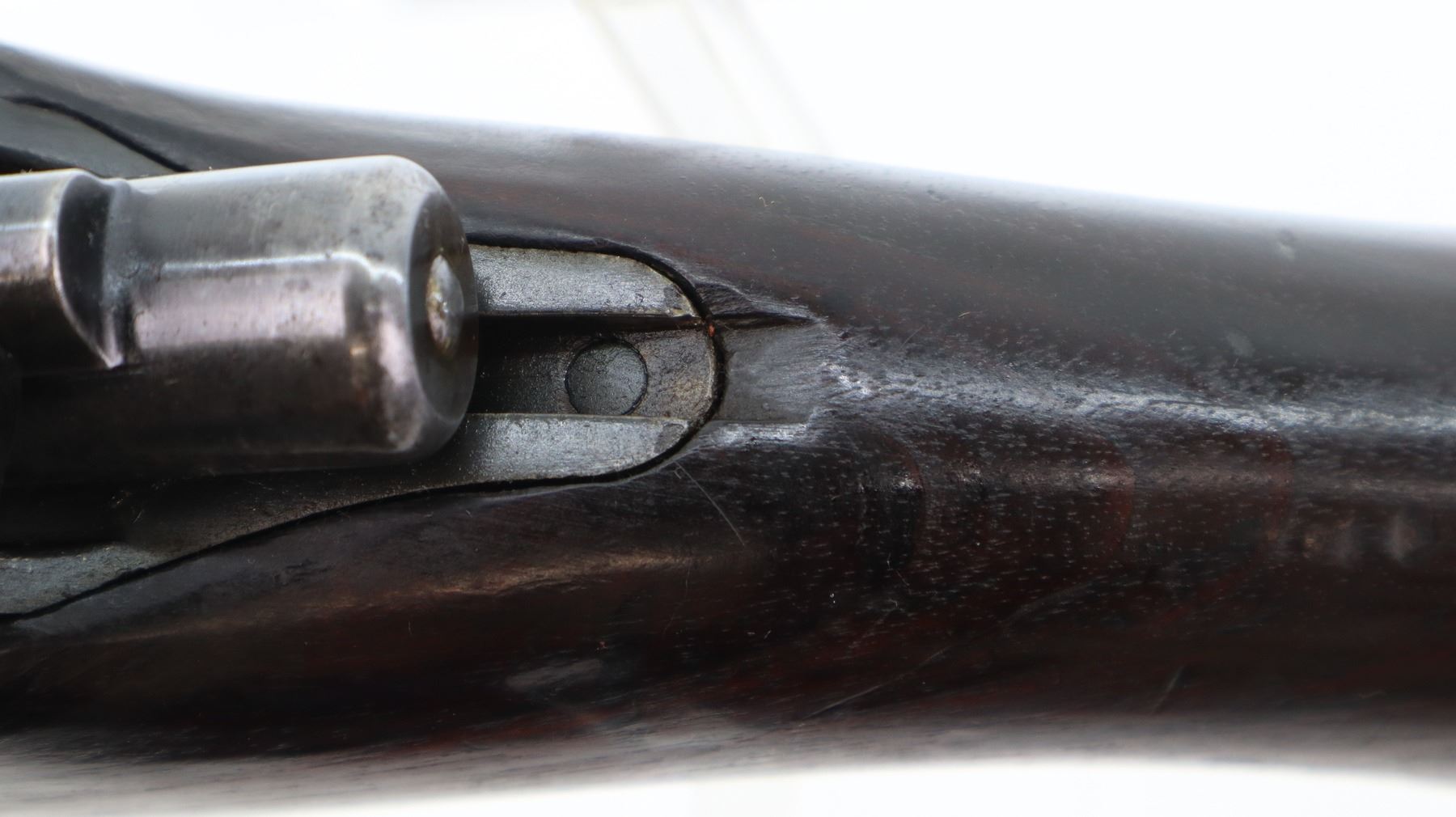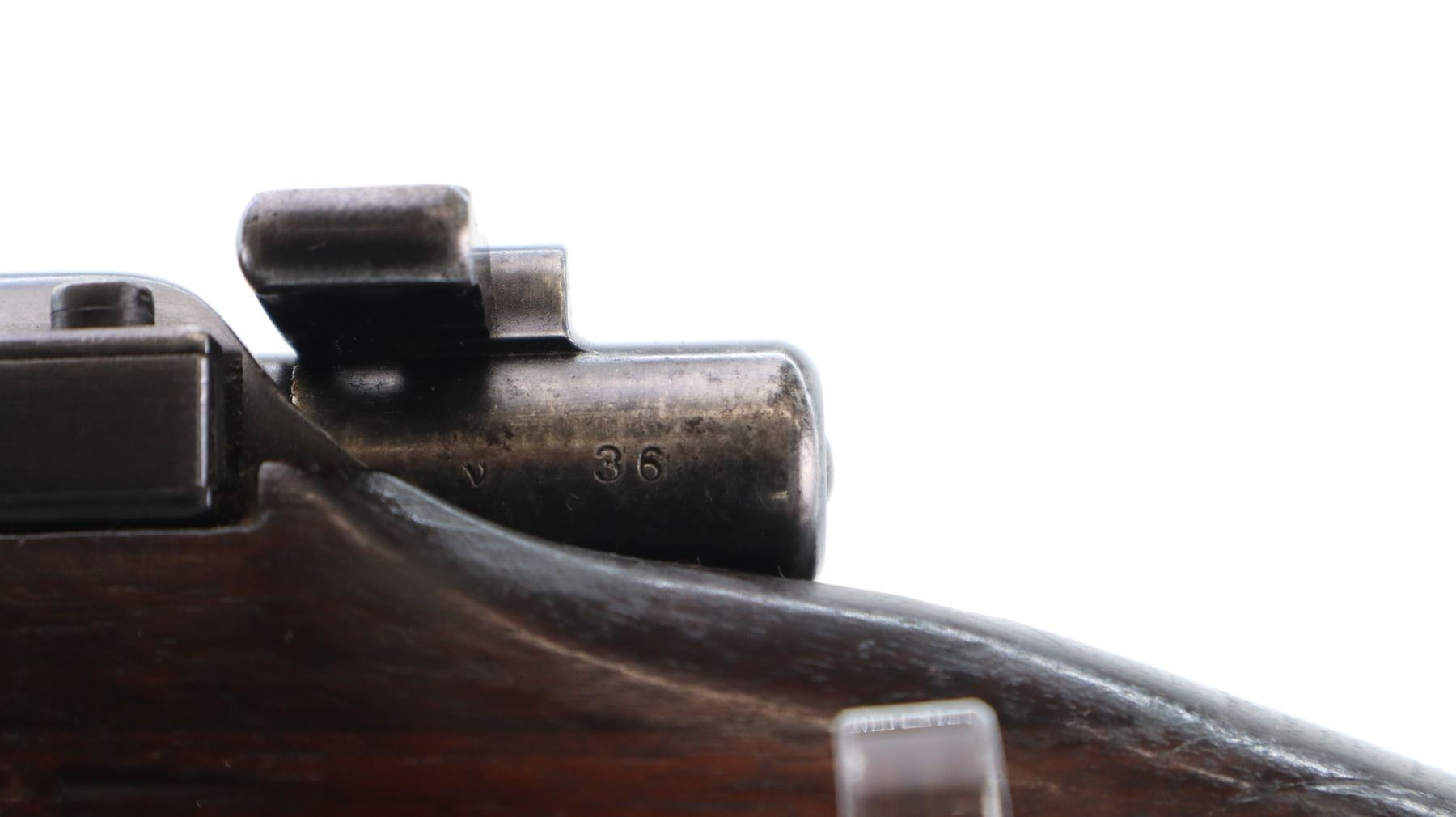 Main Description: Manufactured by DWM, visible numbers match. Blade front sight with ears and ramp, adjustable u notched rear sight, blued finish, straight bolt handle. Two piece smooth full military wood stocks, cracked forend, pistol grip, smooth steel butt plate, sling swivels, bayonet lug, cleaning rod.