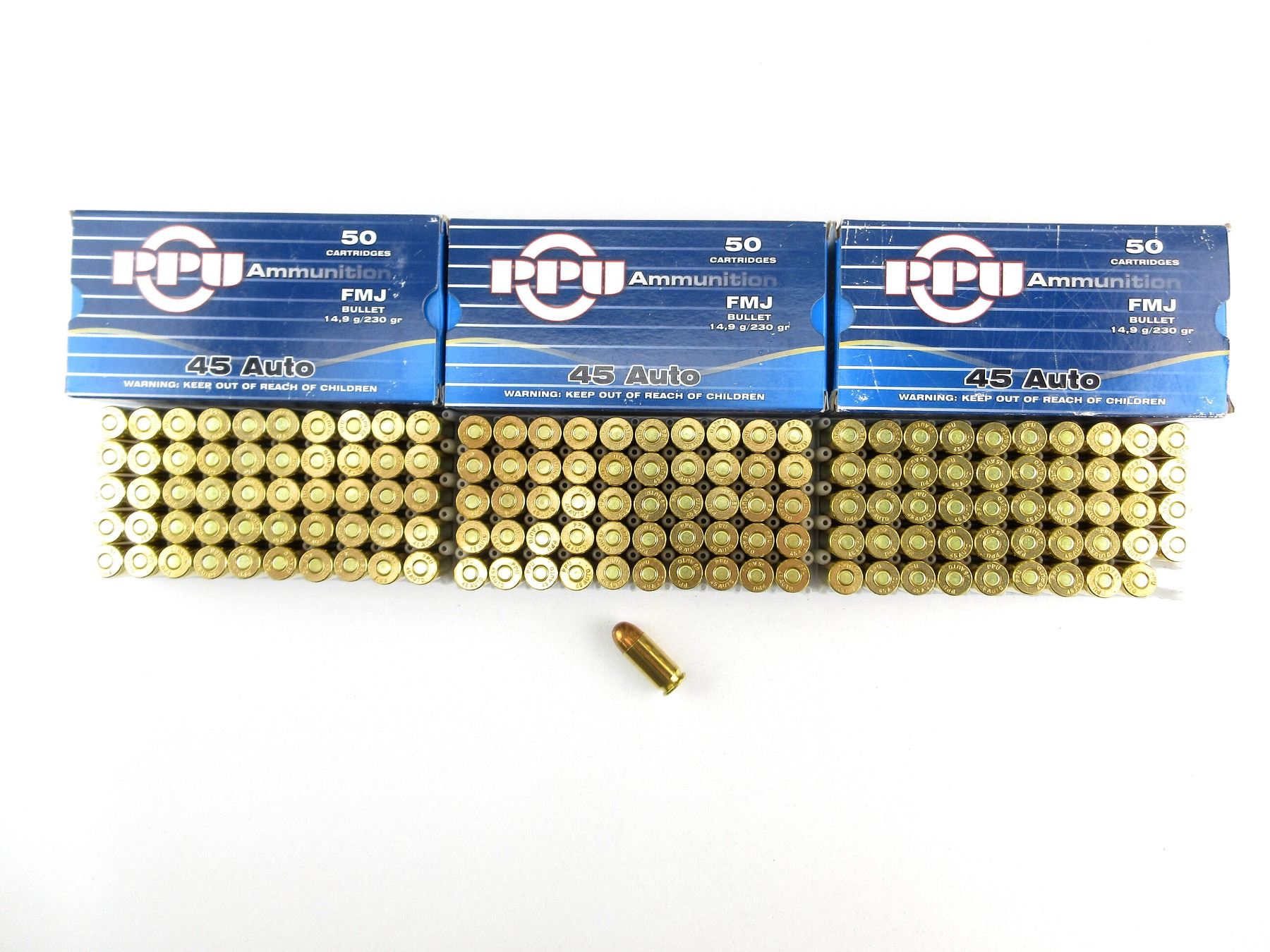 LOT INCLUDES; APPROX. (150) RNDS, 230 GRNS (STATED ON BOXES NOT CONFIRMED), FMJ.