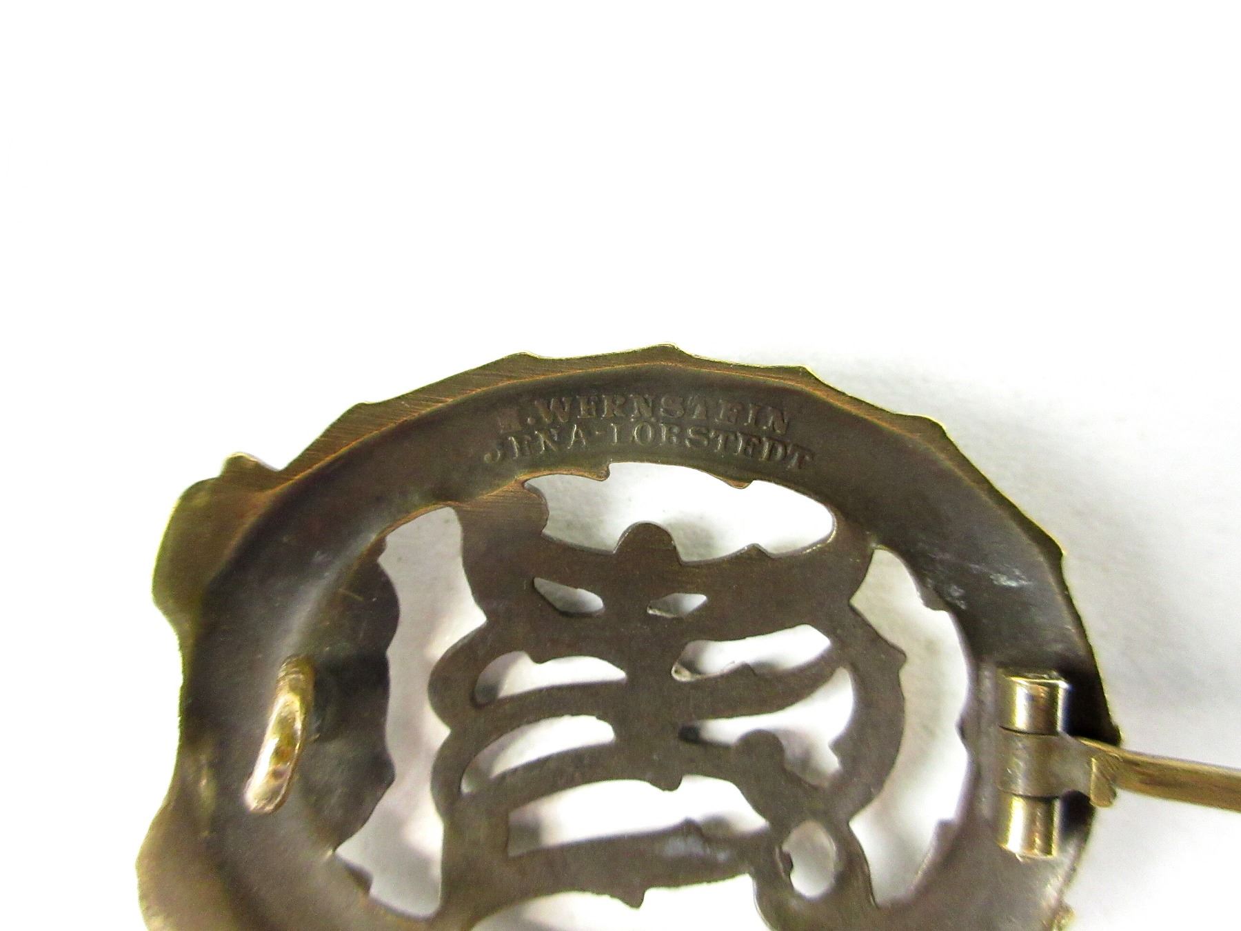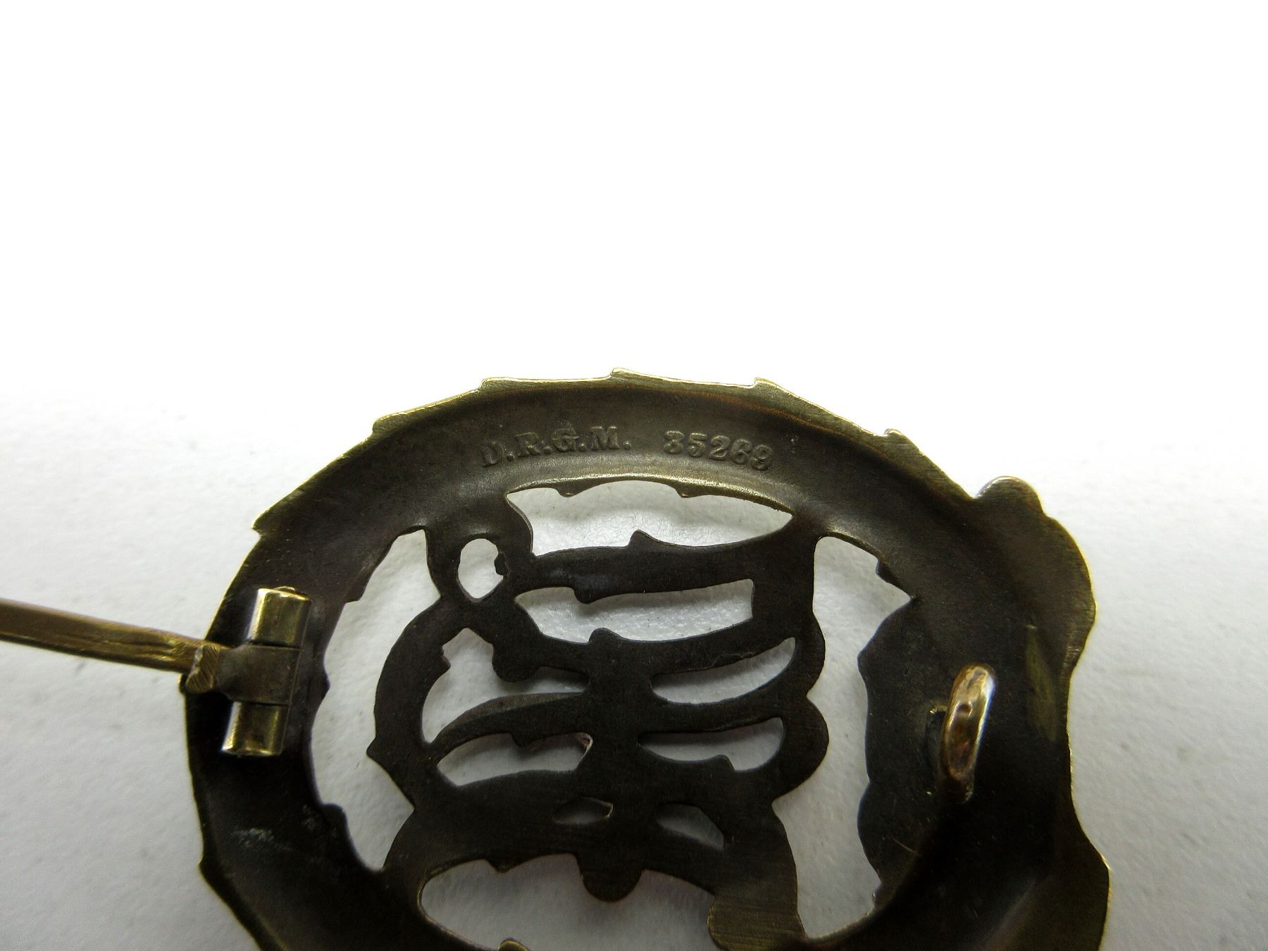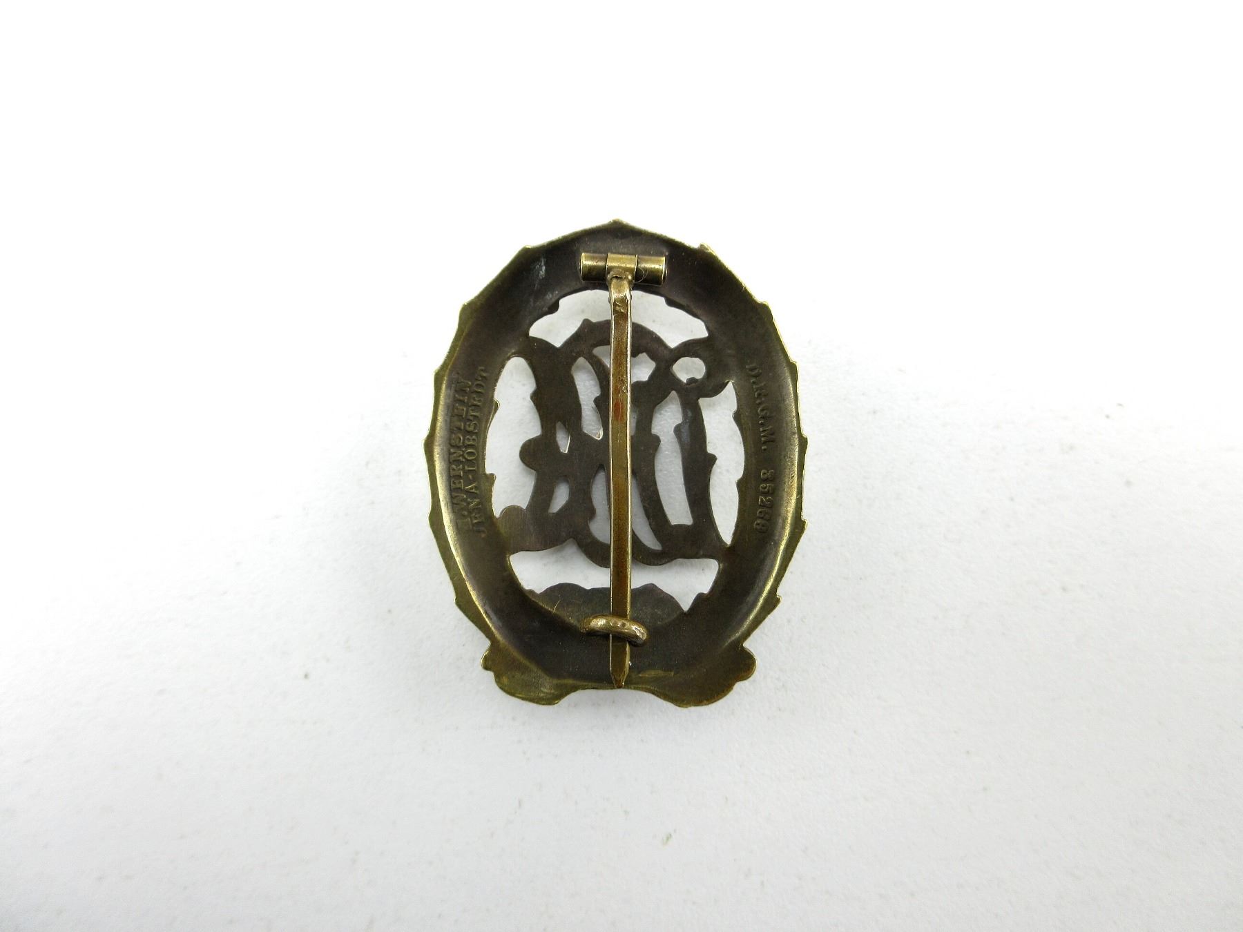 (1) BRONZE SPORTS BADGE, BACK MARKED: "H.WERNSTEIN, JENA-LOBSTEDT" & "D.R.G.M. 35269", POSSIBLY POLISHED, PIN INTACT. SEE PHOTOS.