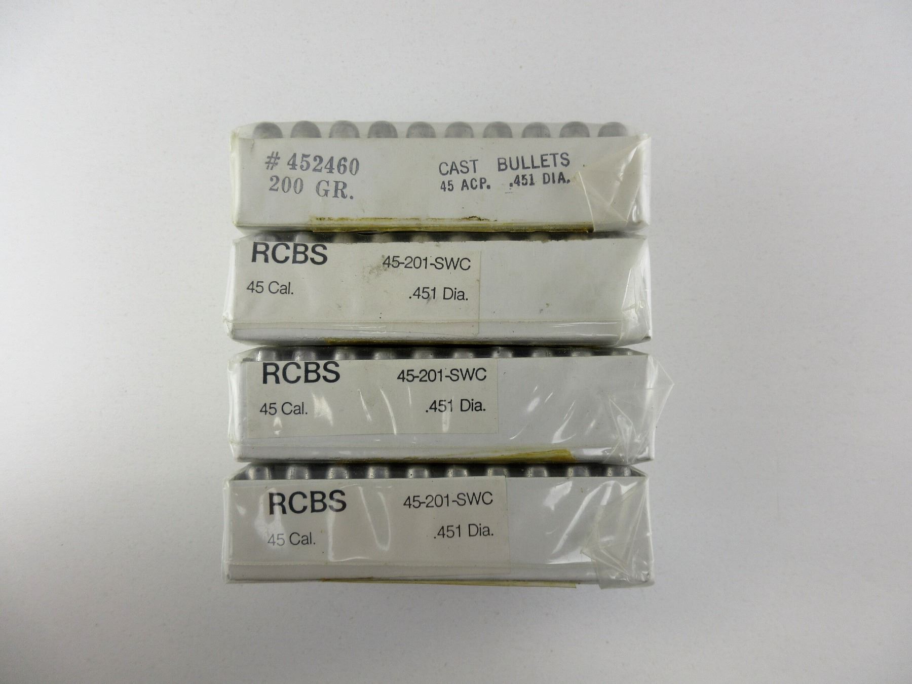 LOT INCLUDES; APPROX. (200) BULLETS, APPROX. DIA .451", MARKED 45-201-SWC, UNOPENED.