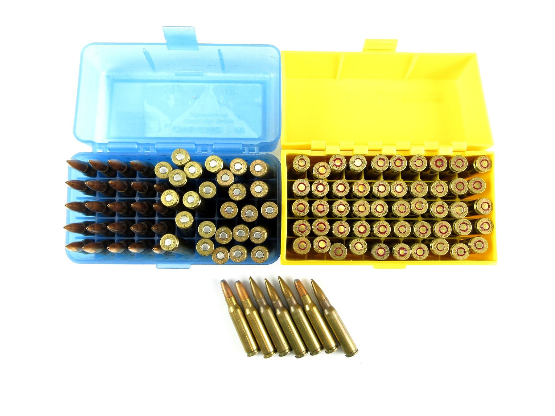 LOT INCLUDES; APPROX. (96) RNDS, (2) PLASTIC AMMO BOXES.