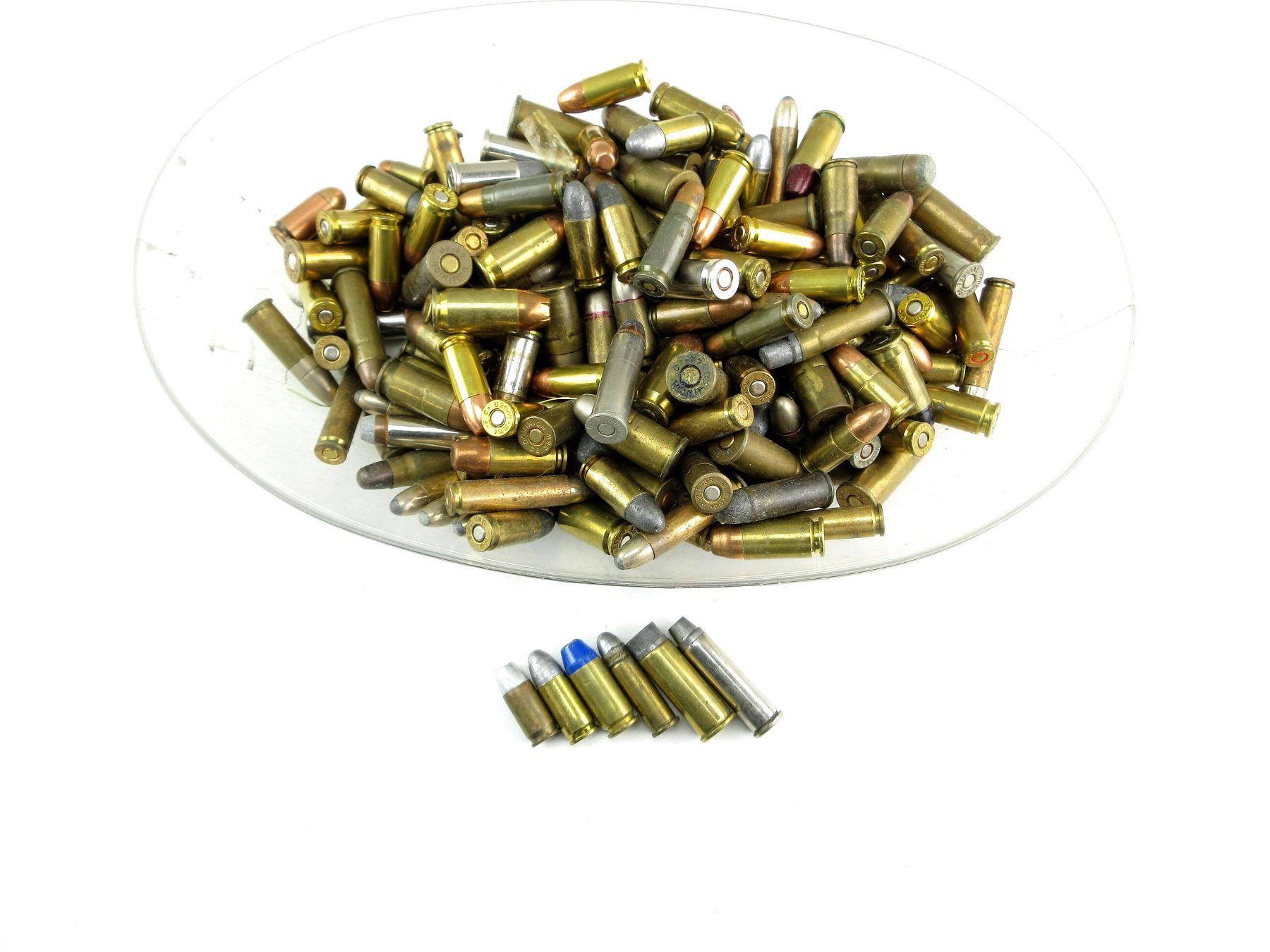 LOT INCLUDES; APPROX. (200) RNDS, VARIOUS CALIBERS INCLUDING; .380 AUTO, .32 S&W, 9MM LUGER, .357 MAG, .44 S&W SPL, ETC., MAY CONTAIN SOME FACTORY AMD MILITARY RNDS.