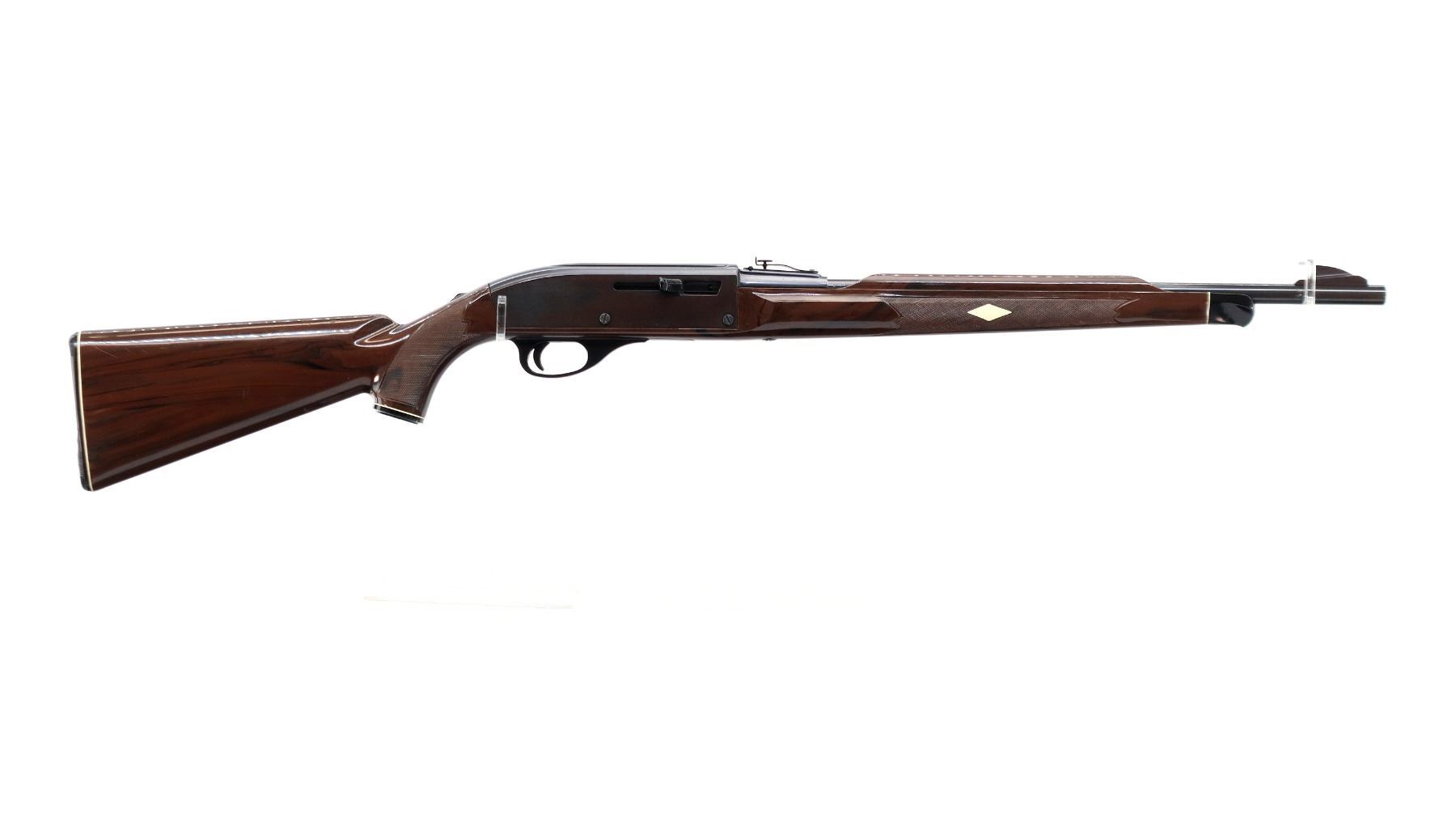 Main Description: Blade front sight with ramp, adjustable u notched rear sight, blued finish, grooved receiver, tang safety. One piece brown synthetic stock, black polymer forend and pistol grip caps, checkered forearm with white diamonds, checkered pistol grip, grooved black polymer butt plate.