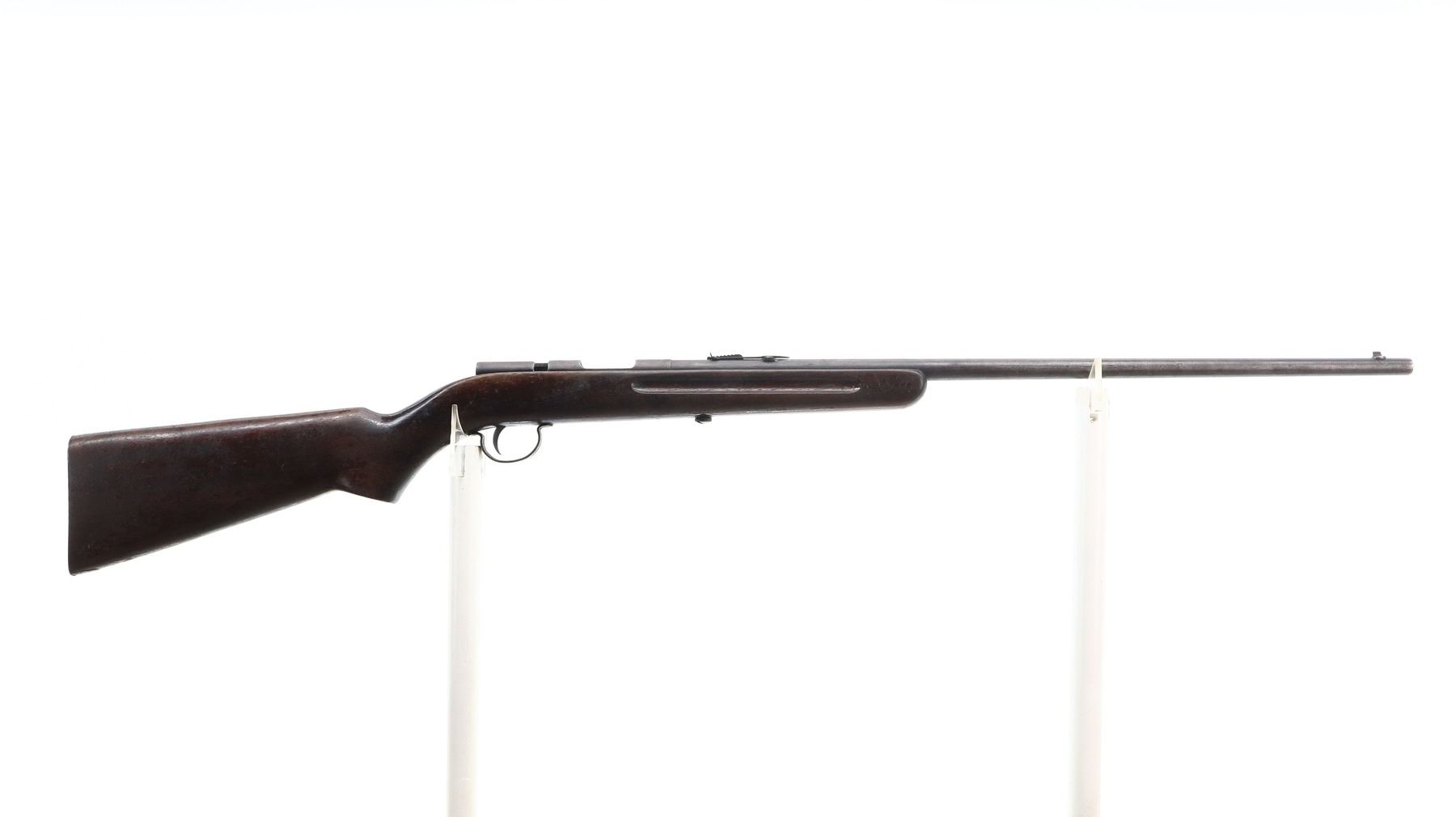 PARTS GUN, REMINGTON, MODEL: 33, CALIBER: 22 LR, BORE IS FAIR, LIGHT PITTING. BLADE FRONT SIGHT, ADJUSTABLE U NOTCHED REAR SIGHT, MISSING COMPLETE BOLT ASSEMBLY. ONE PIECE WOOD STOCK, FINGER GROOVED FOREND, PISTOL GRIP, SMOOTH STEEL BUTT PLATE, STOCK CHIPPED AND CRACKED AT TOE. METAL FINISH TURNING BROWN WITH PITTING, LIGHT RUST, HANDLING MARKS AND WEAR. STOCK SHOWS MARKS, SCRATCHES AND WEAR. ACTION: BOLT ACTION RIFLE, SERIAL # 240062, BARREL LENGTH: 24", CONDITION: PARTS GUN, THIS ITEM IS SOLD FOR PARTS USE ONLY. SOME PARTS AND COMPONENTS MAY NOT BE PRESENT AND OR FUNCTIONAL. UNDER NO CIRCUMSTANCES ATTEMPT TO USE THIS ITEM AS A FUNCTIONAL FIREARM. CLASS: CANADIAN NON RESTRICTED CLASS