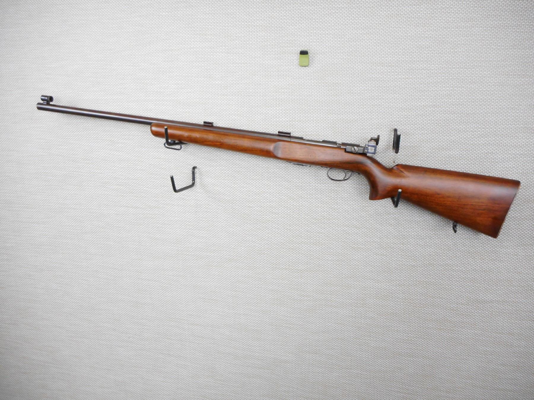 REMINGTON , MODEL: 513T THE MATCH MASTER , CALIBER: 22 LR , COMES WITH MAGAZINE , VERY GOOD BORE, MEDIUM WEIGHT TARGET RIFLE, REDFIELD SIGHTS MARKED KG INDICATING MAY 1940 MANUFACTURE ADJUSTABLE FRONT AND PEEP REAR SIGHT, WOOD STOCK HAS BEEN PROFESSIONALLY REPAIRED AT THE WRIST, BRAISED BOLT KNOB, SLING SWIVEL STUDS, STEEL BUTT PLATE, SHOWS SOME HANDLING MARKS , STOCK # 9857 , SERIAL # 143 , ACTION: BOLT ACTION RIFLE , BARREL LENGTH: 27" , CONDITION: 6/10 , CLASS: CLASS: CANADIAN NON RESTRICTED CLASS