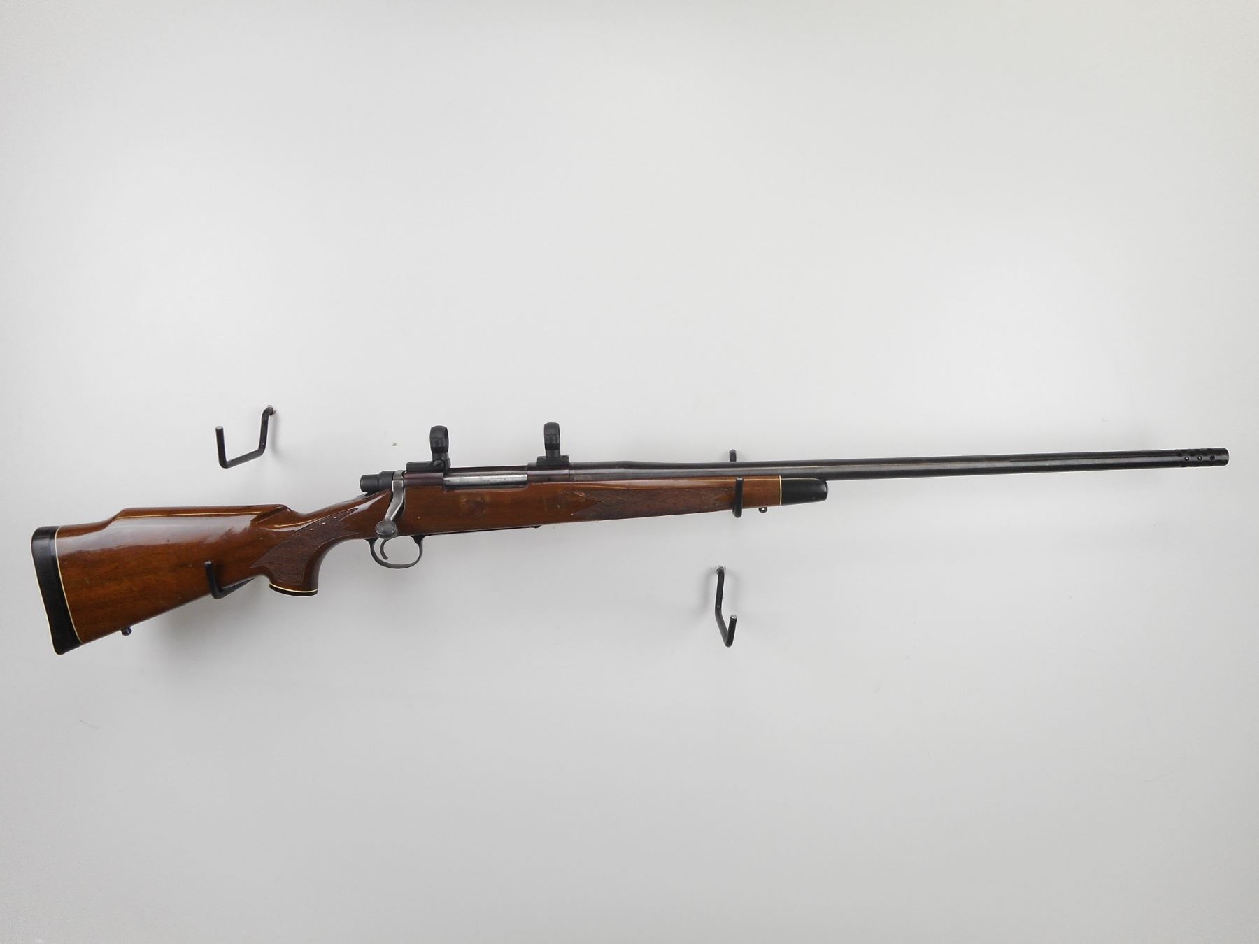 REMINGTON , MODEL: 700 , CALIBER: 416 REM MAG , EXCELLENT BORE. NO SIGHTS. DRILLED AND TAPPED WITH SCOPE RINGS. ONE PIECE CHECKERED HARDWOOD STOCK WITH RAISED CHEEKPIECE. RUBBER RECOIL PAD. SLING SWIVEL STUDS. PORTED MUZZLE BREAK. SHOWS SOME HANDLING MARKS. , ACTION: BOLT ACTION RIFLE , BARREL LENGTH: 26 1/2" , SERIAL# G6240912 , CONDITION: 6/10 , CLASS: CANADIAN NON RESTRICTED CLASS