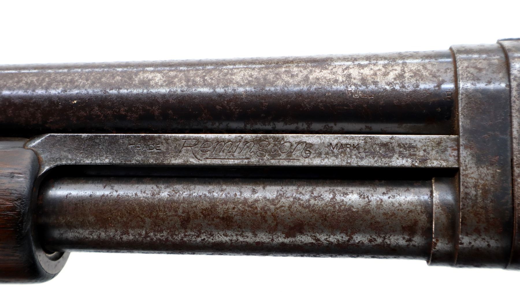 Main Description: Brass bead, round barrel, action does not function correctly, requires adjustment parts or repair. Two piece wood stocks, grooved forearm, pistol grip chipped cracked and broken behind receiver, replacement smooth steel butt plate with screws, stock chipped and cracked at toe.