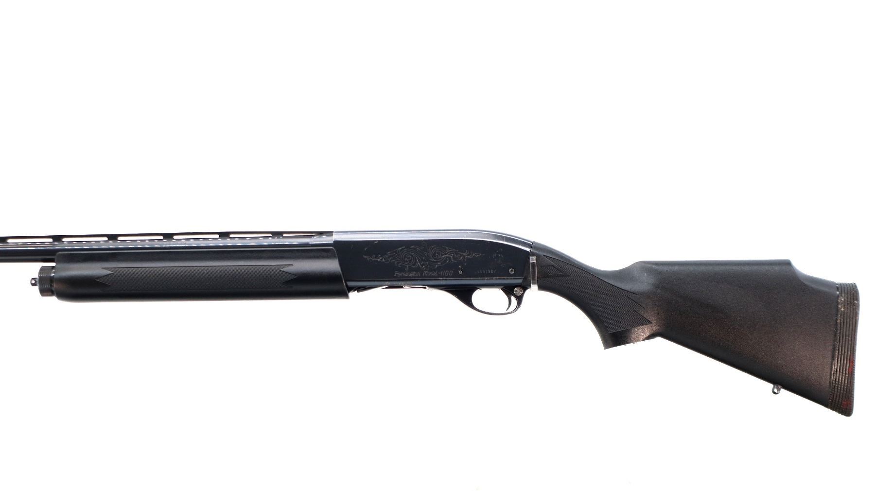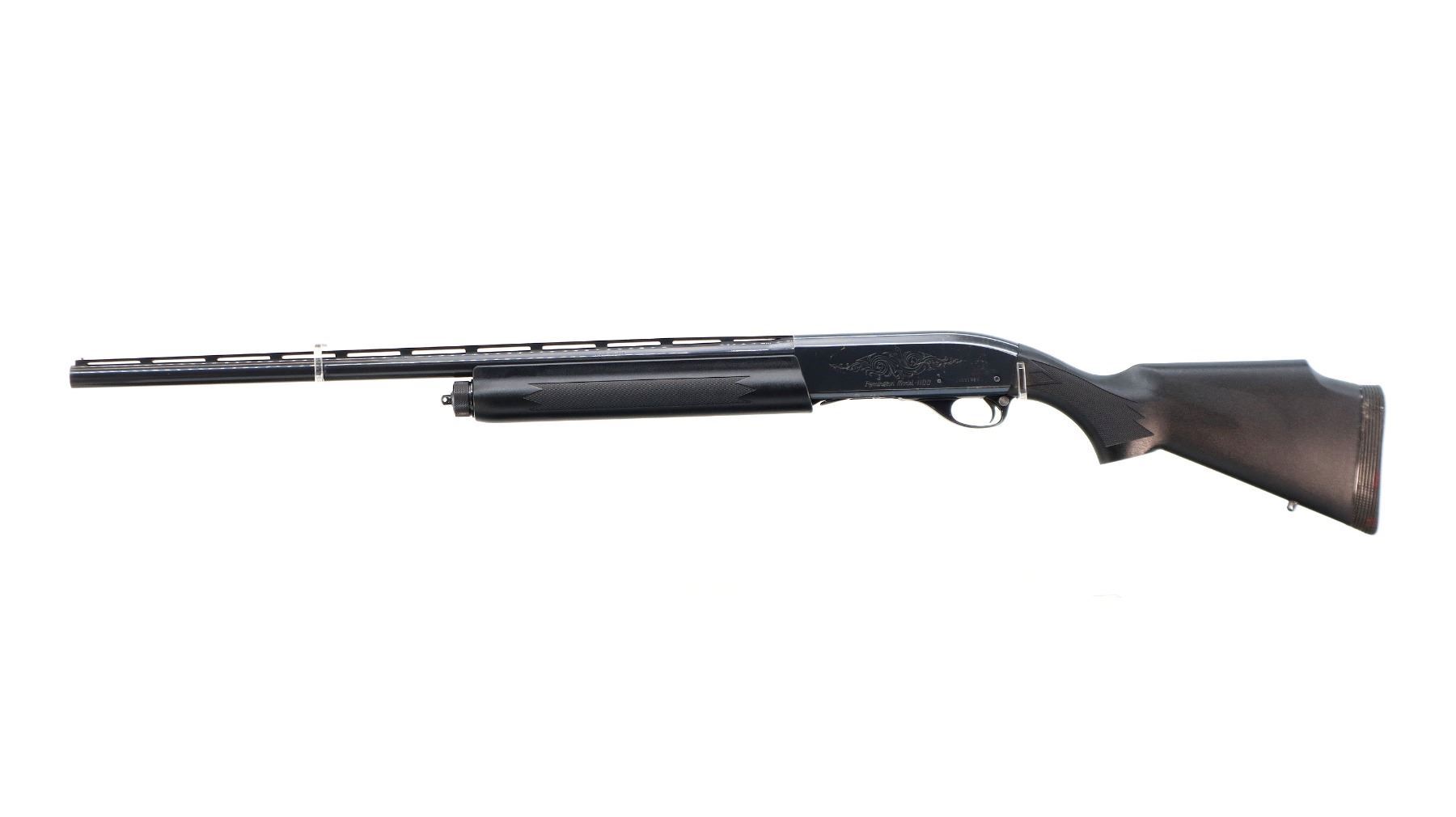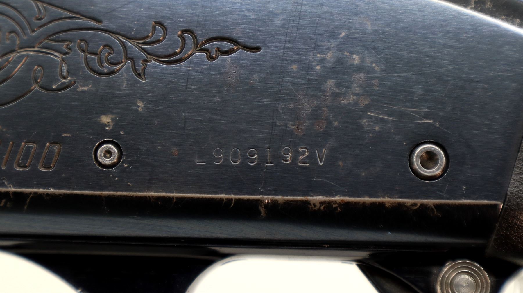 Main Description: Silver bead, blued finish, vent rib, engraved receiver and bolt. Two piece black synthetic stocks, checkered forearm and pistol grip, raised comb, black rubber recoil pad which is damaged, missing grip cap, has swivel studs.