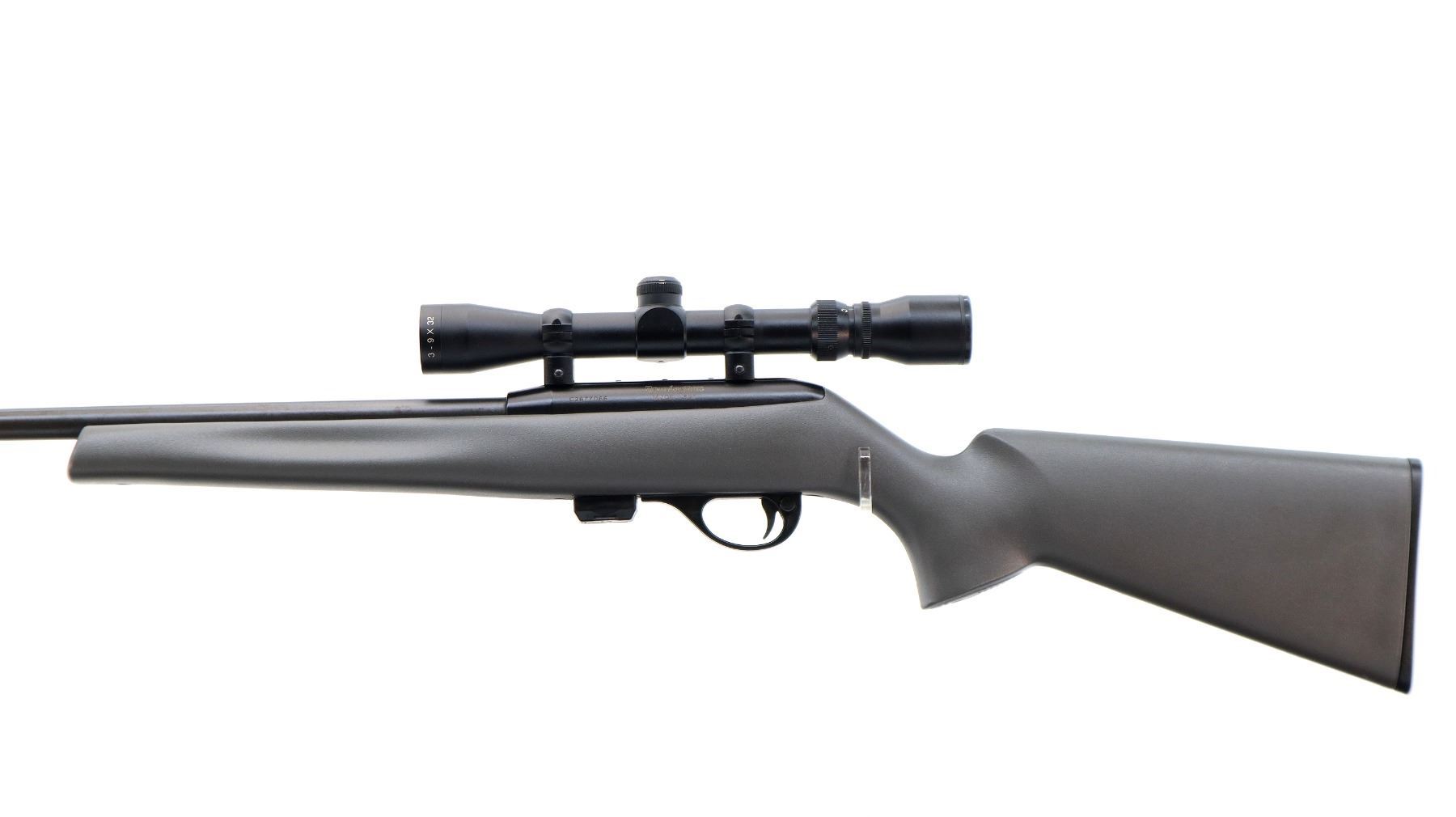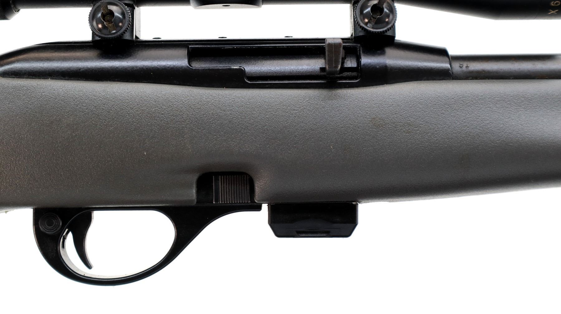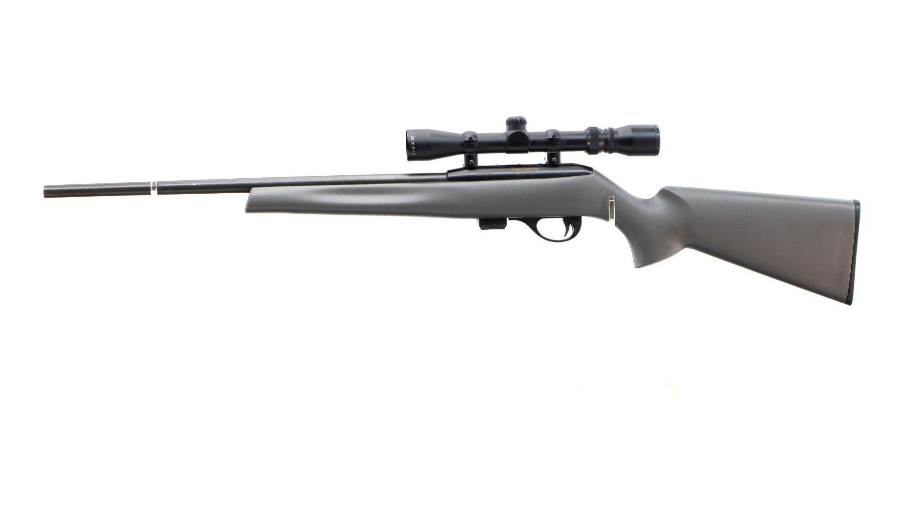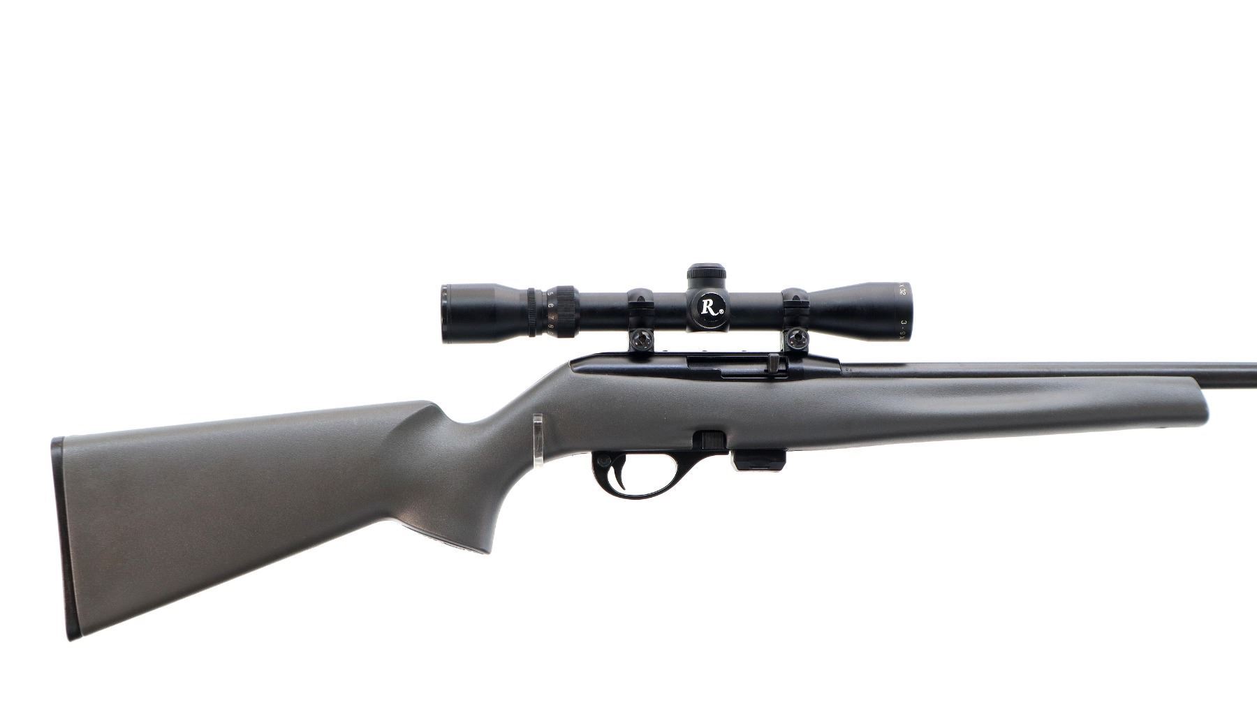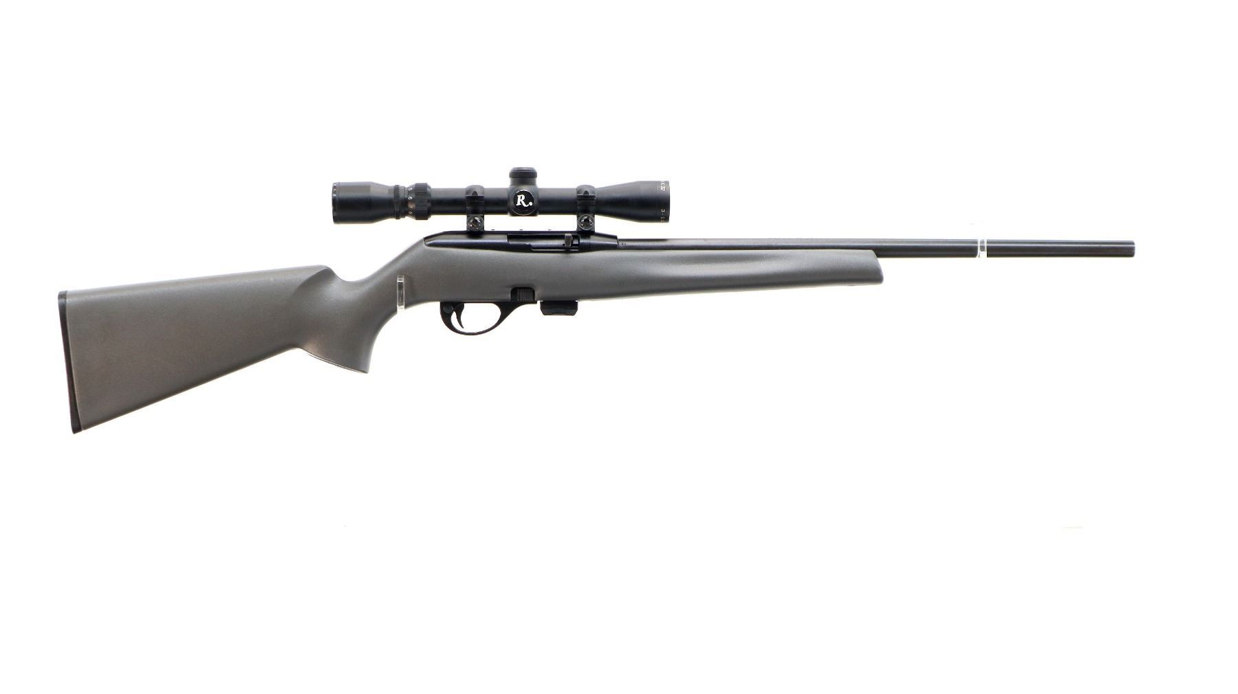 Main Description: No sights, Parkerized round barrel, grooved black alloy receiver also drilled and tapped with plug screws installed with Remington 3-9x32 scope, clear optics with duplex crosshair. One piece grey synthetic stock, finger grooved forearm, pistol grip, checkered black polymer butt plate, grip cap.