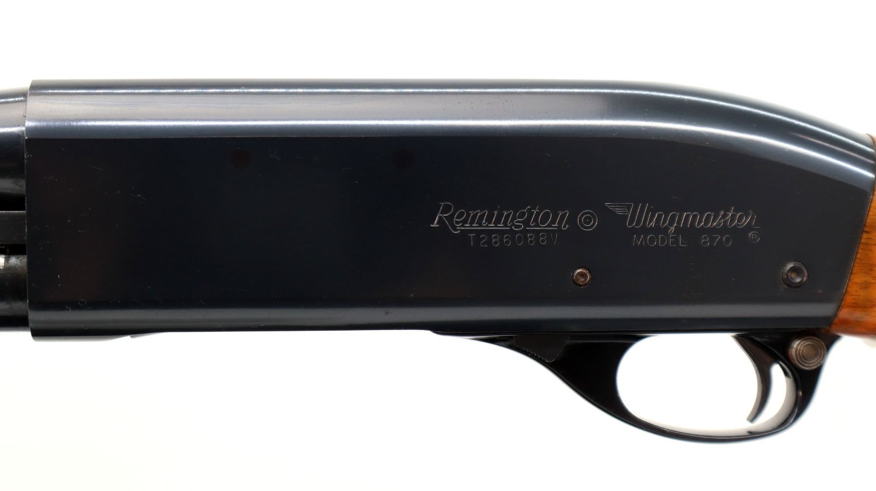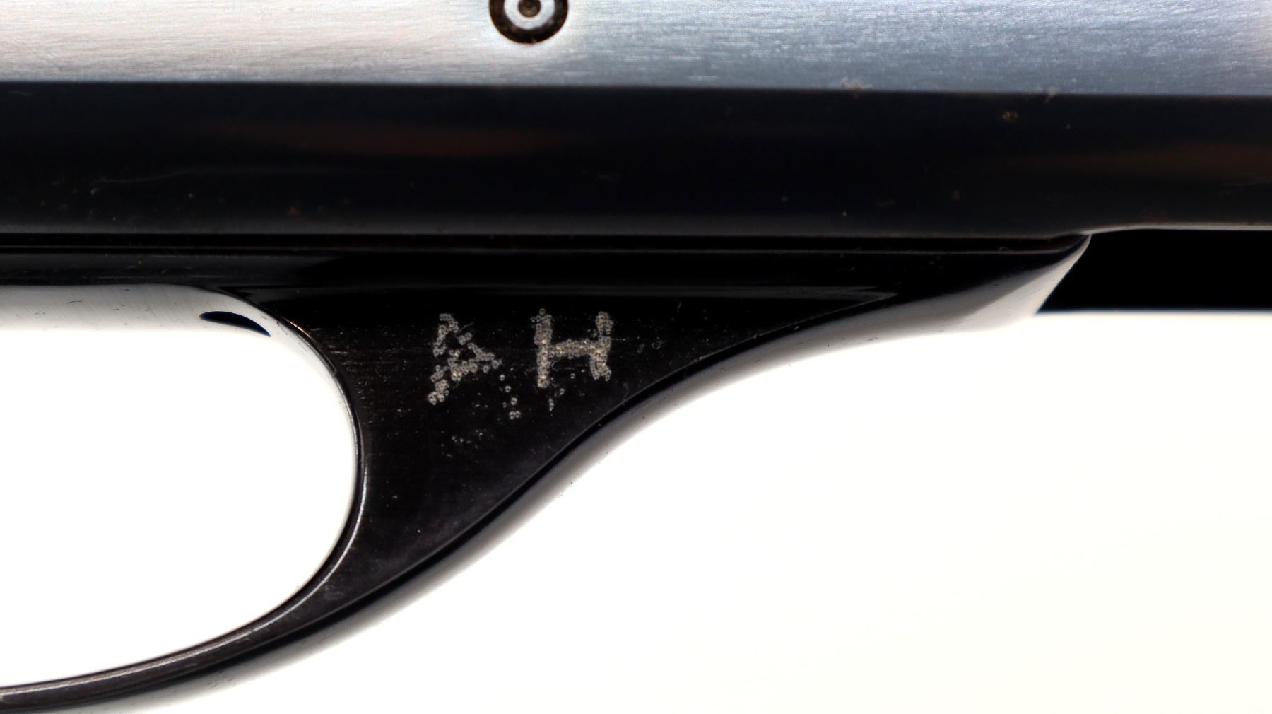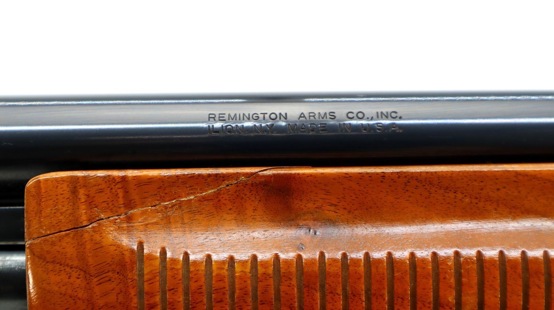 Main Description: Silver bead, metal has been polished and reblued, round barrel. Two piece wood stocks, finger grooved forearm which is cracked, pistol grip, brown vented rubber recoil pad, 13" LOP