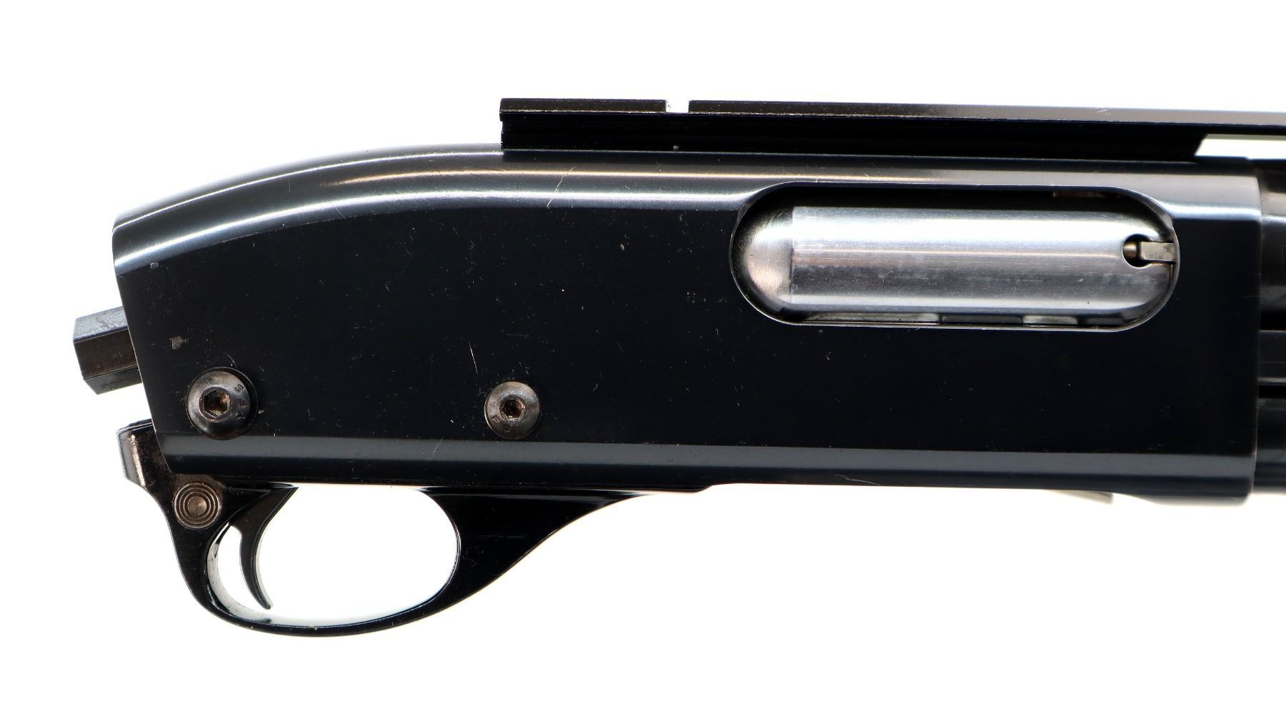 Main Description: Silver bead, polish blued finish, vent rib, receiver drilled and tapped with one piece scope base installed, trigger mech pins replaced with side saddle screws only. One piece wood forearm with grooves. Missing butt stock assembly and has extended magtube.
