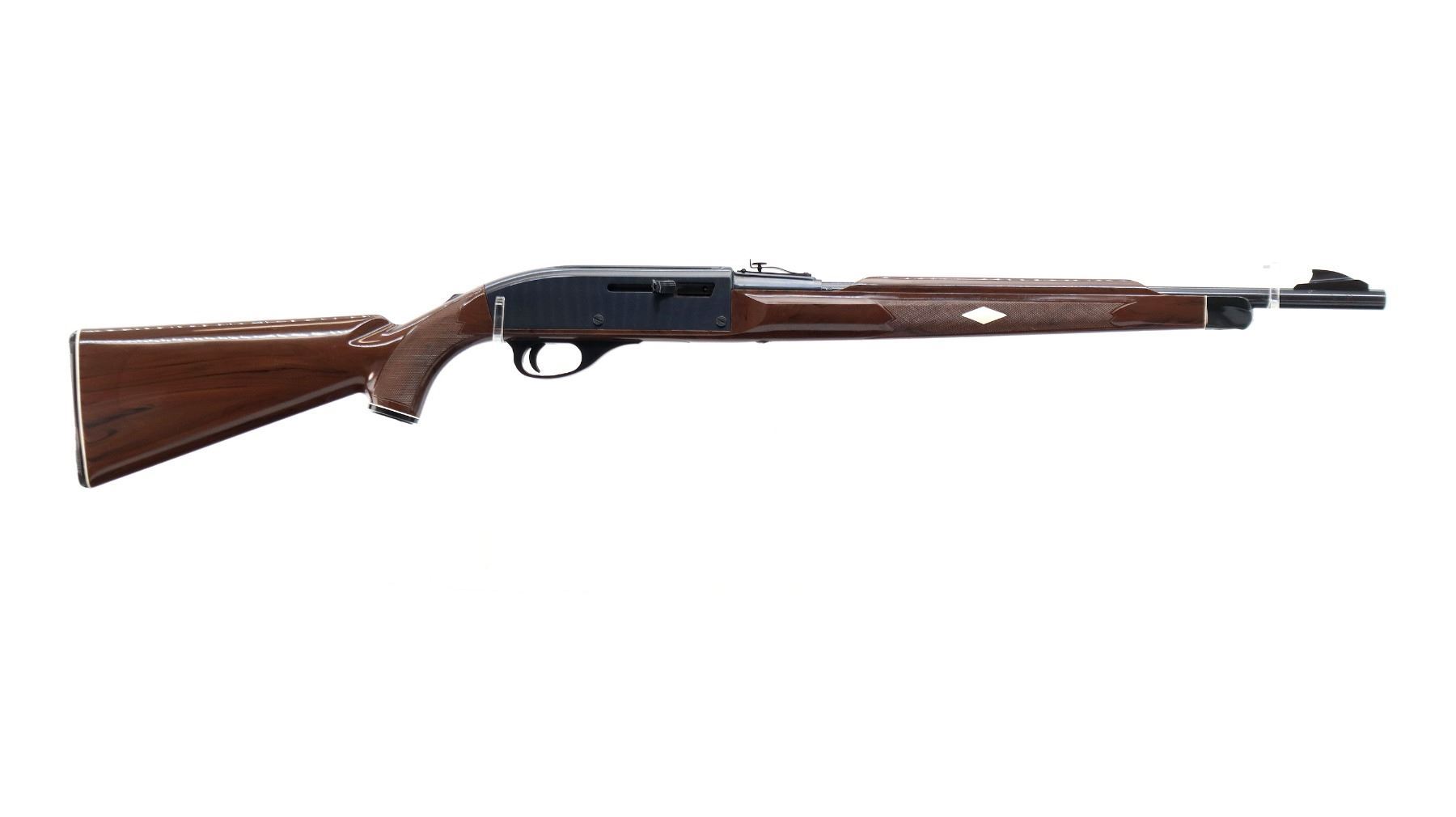 Main Description: Blade front sight with ramp, adjustable u notched rear sight, blued finish, grooved receiver, tang safety. One piece brown synthetic stock, black polymer forend and pistol grip caps, checkered forearm with white diamonds, checkered pistol grip, grooved black polymer butt plate.