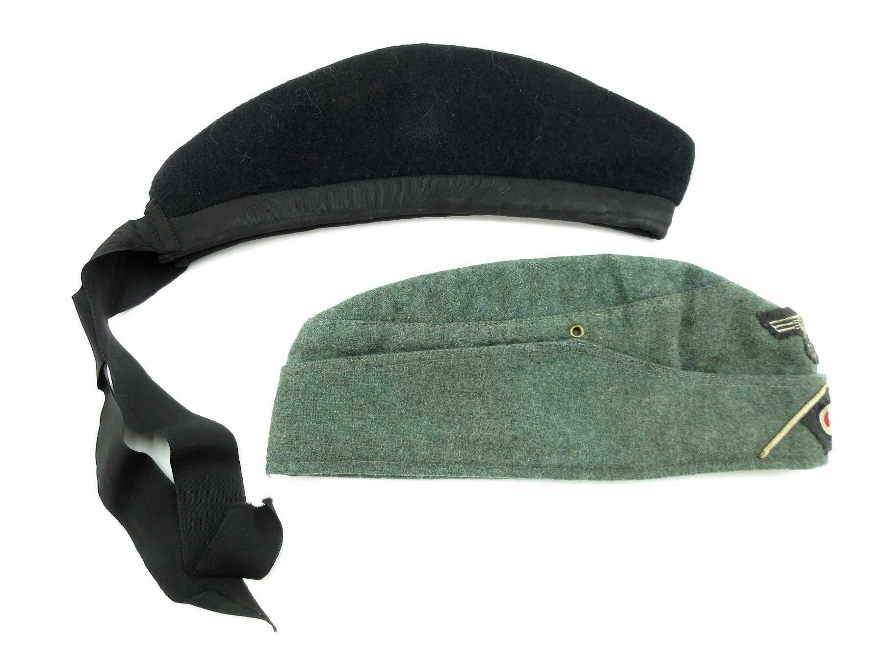 REPRODUCTION GERMAN MILITARY WEDGE CAP AND UNKNOWN MILITARY GLENGARRY CAP LOT