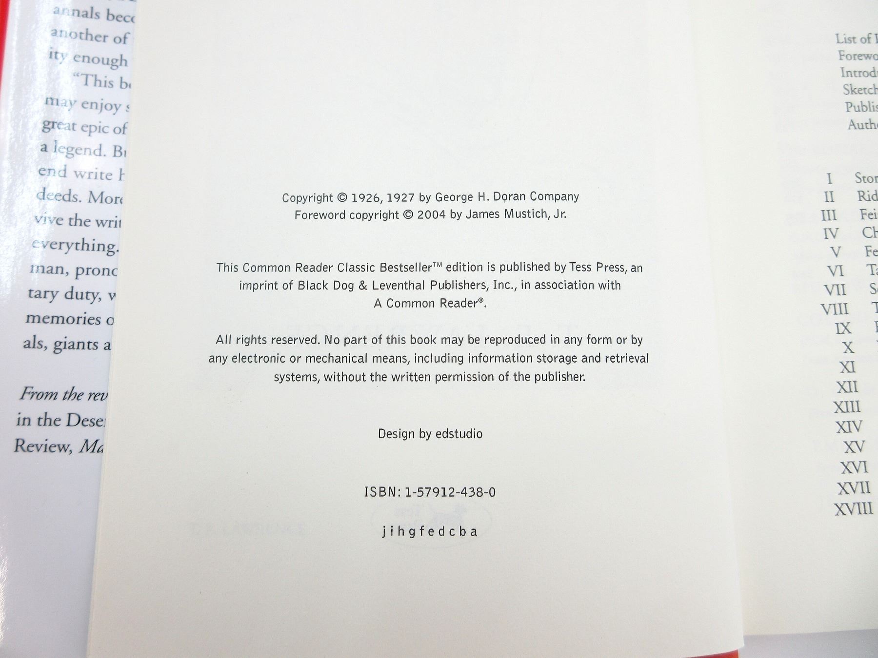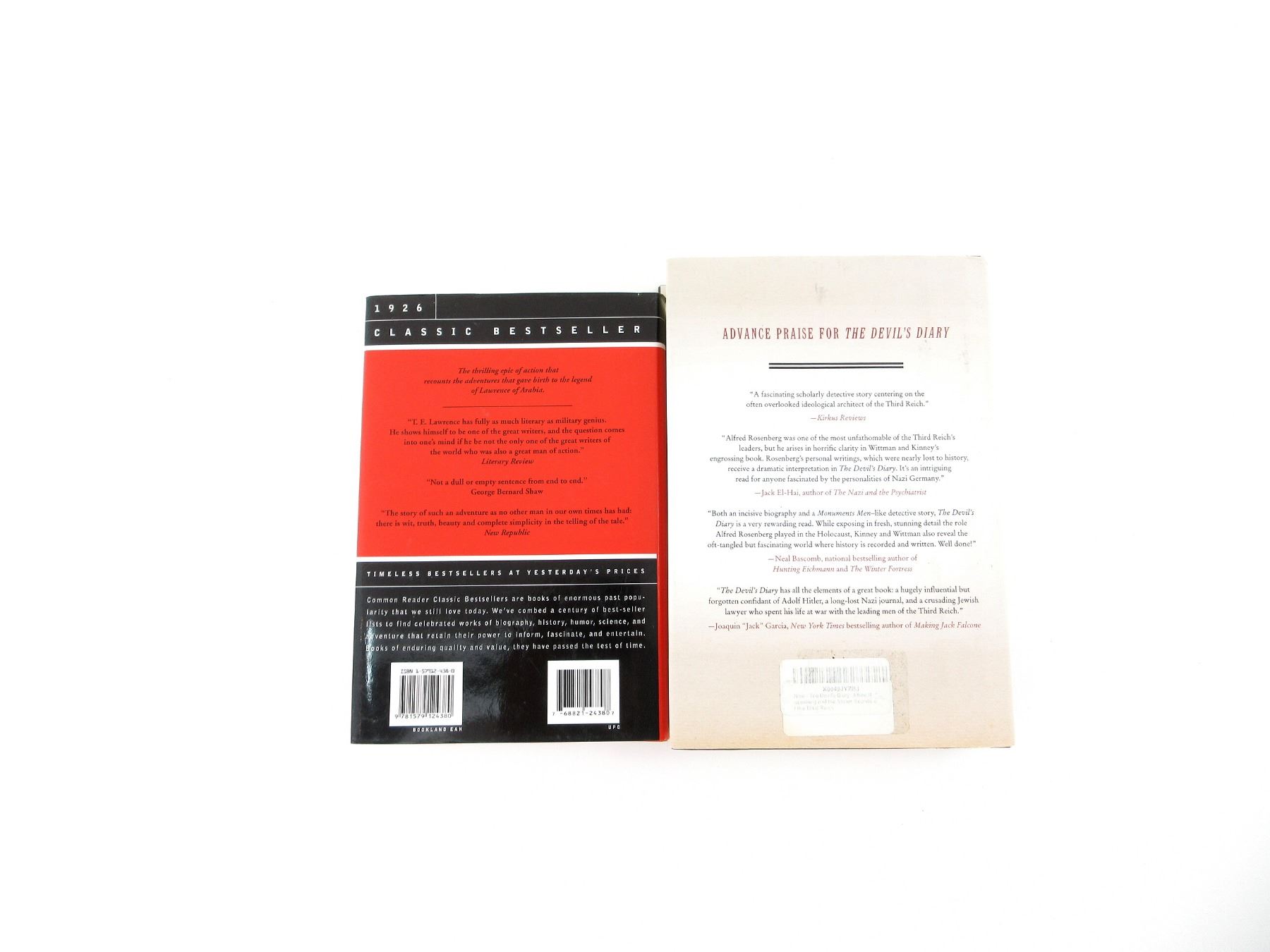 LOT INCLUDES; (1) "REVOLT IN THE DESERT" BOOK BY T.E. LAWRENCE, HARD COVER WITH DUST COVER, ISBN: 1-57912-438-0 & (1) "THE DEVIL'S DIARY, ALFRED ROSENBERG AND THE STOLEN SECRETS OF THE THIRD REICH" BOOK BY ROBERT K. WITTMAN & DAVID KINNEY, HARD COVER WITH DUST COVER, ISBN: 978-0-06-231901-2. SEE PHOTOS.