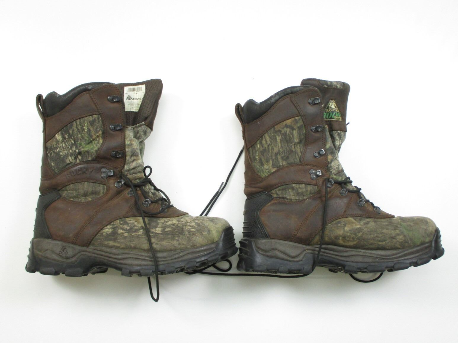ROCKY 1000 GRAM BOOTS , SIZE: 12W US, APPEARS COMPLETE, WITH LACING, FRONT STEEL CAP FOR TIP OF TOES.