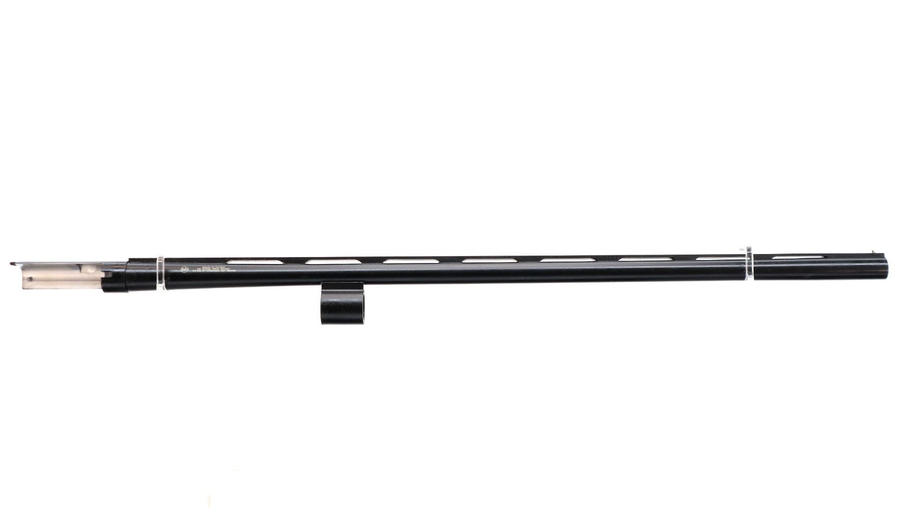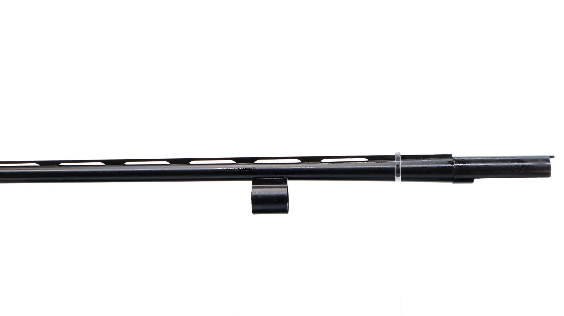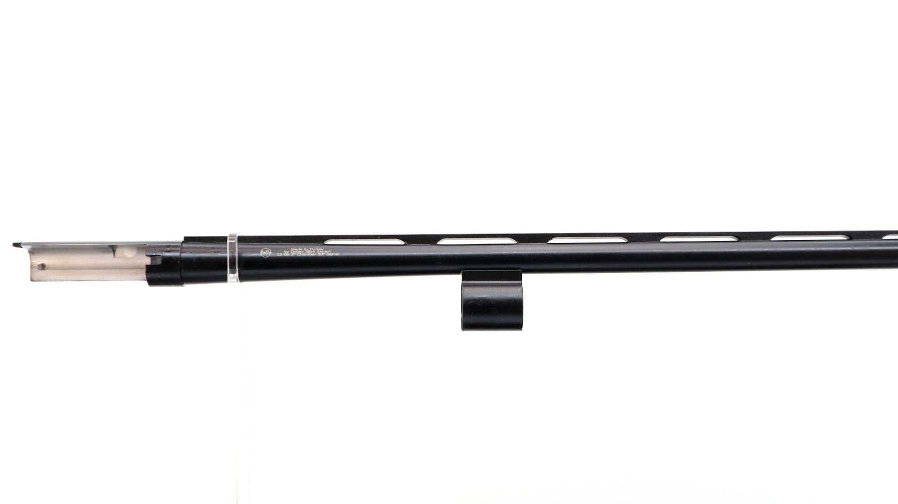 Main Description: May have been test fired in factory. Brass bead, Parkerized vent rib barrel, grooved black alloy receiver. Two piece black synthetic stocks, checkered forearm and pistol grip, ambi cheek rest, black vented rubber recoil pad, grip cap, swivel studs, retains factory hand tag. Spare Barrel: 12 G X 3", 30", Excellent Bore, Removable IM Choke Installed, Brass bead, Parkerized finished vent rib. Accessories include: Spare Extra Full and IC Chokes with wrench and case.