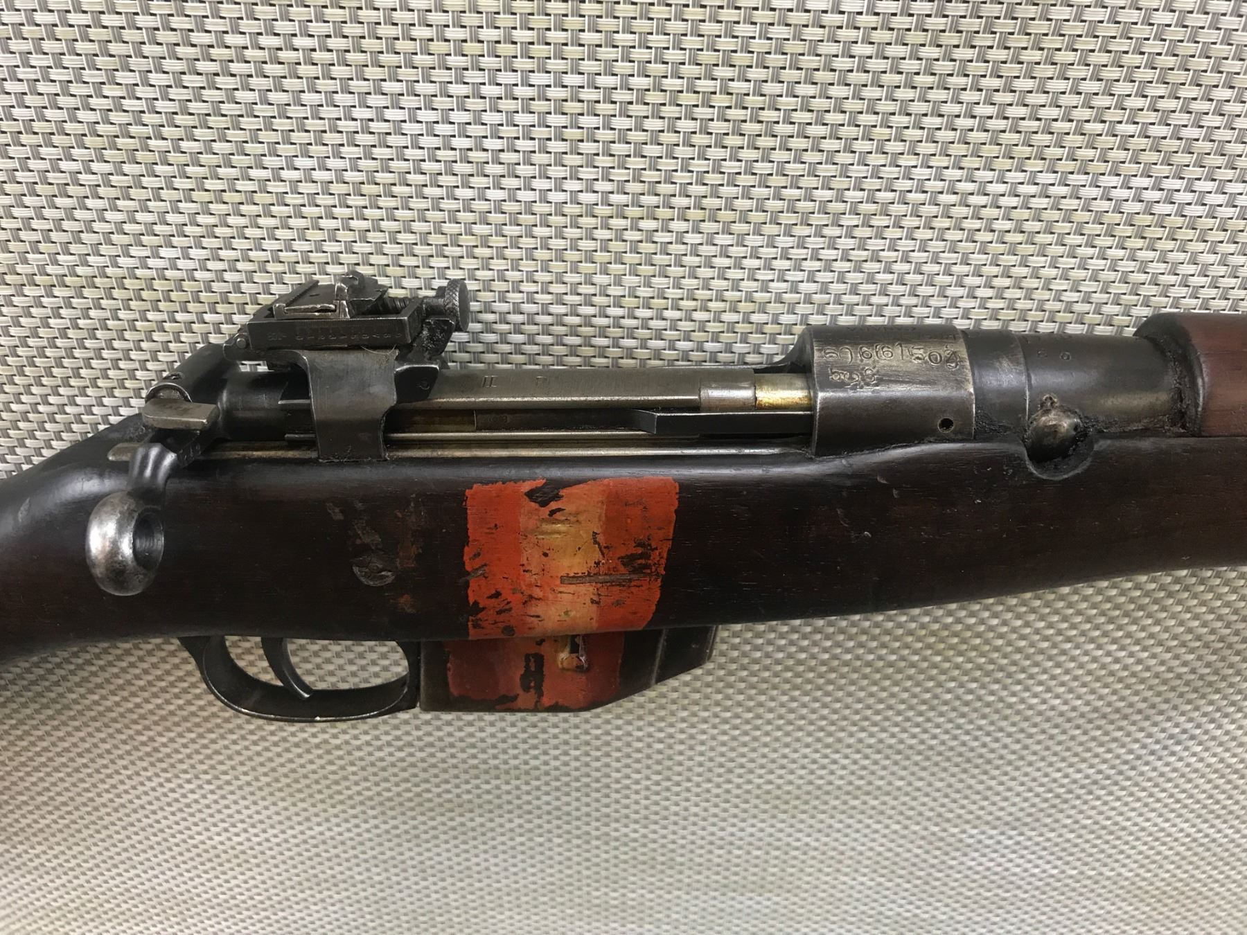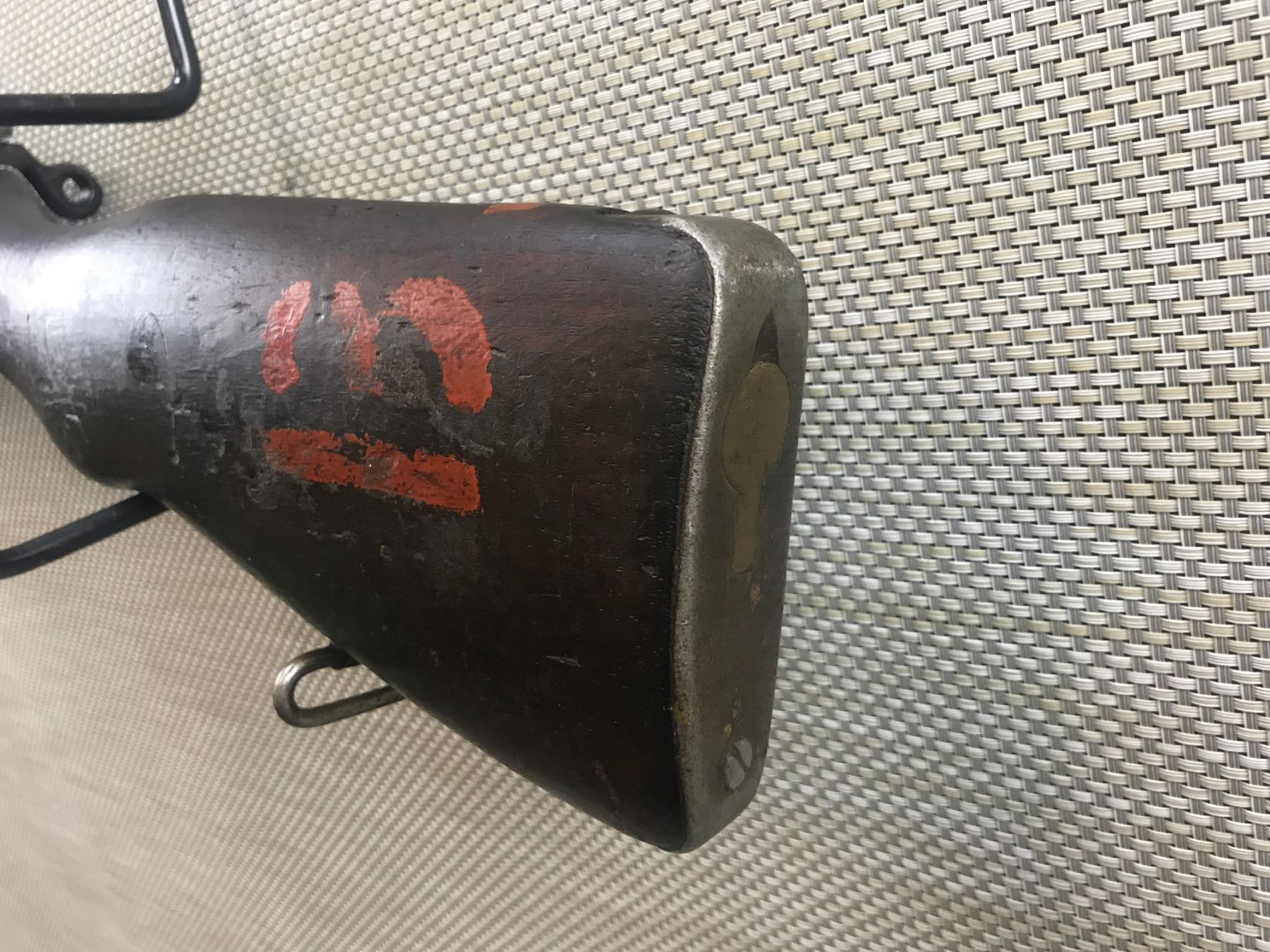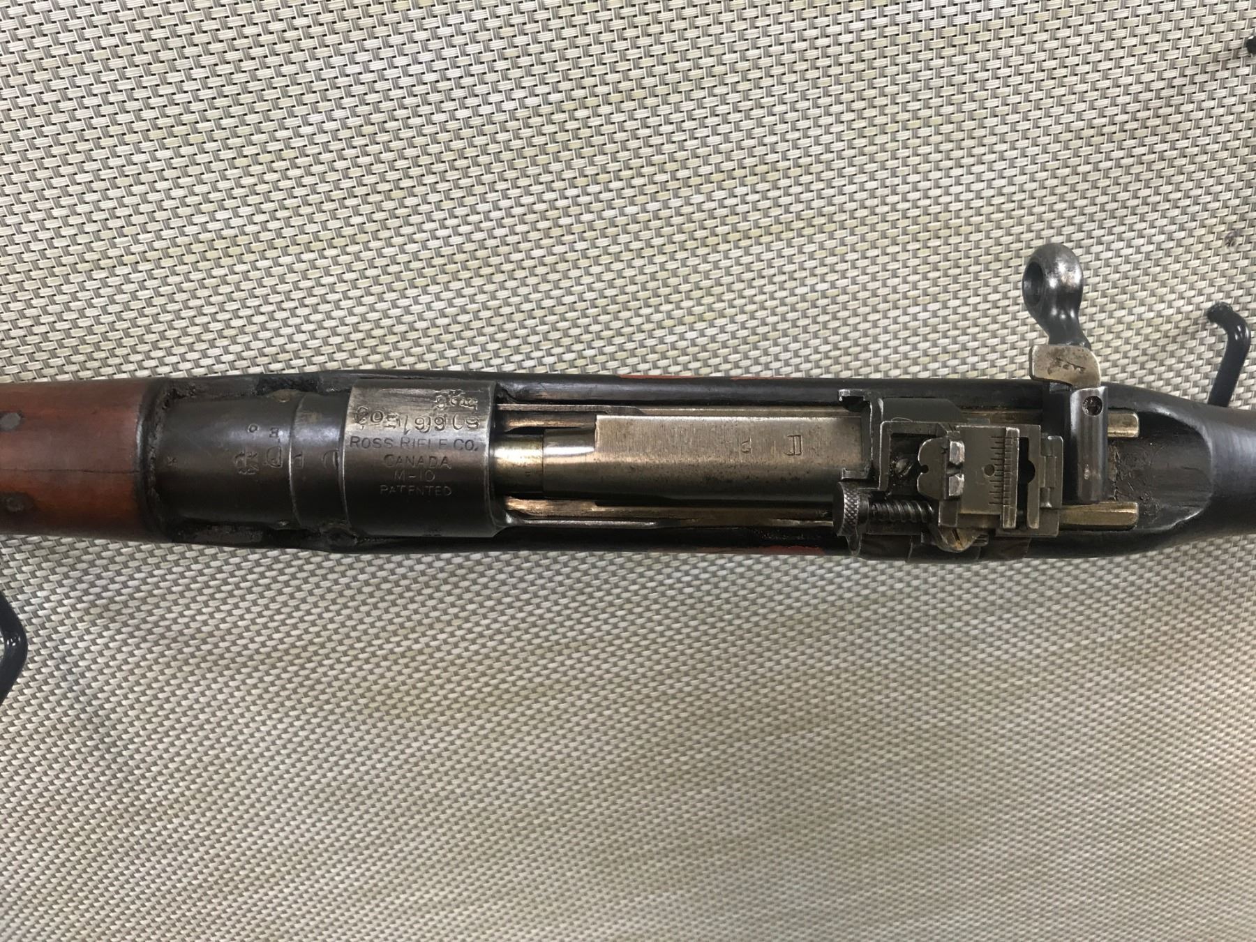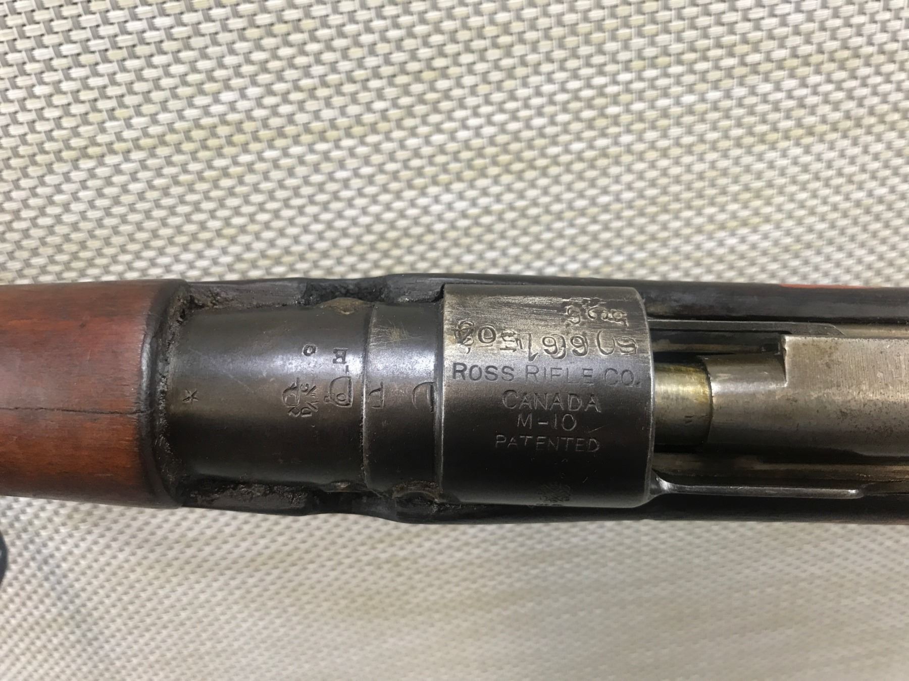 ROSS , MODEL: M10 , CALIBER: 303 BR , MARKED DP ( DRILL PURPOSE ON THE BARREL AND BUTT STOCK), CHAMBER HAS BEEN WELDED, NON FIRING GUN, BORE HAS BEEN WELDED, RETAINS FULL MILITARY CONFIGURATION, BARLEY CORN FRONT AND FULLY ADJUSTABLE FLIP APERTURE REAR SIGHT, SLING LOOPS , BARREL LENGTH: 30" , SERIAL # 181 , STOCK # 8304 , CONDITION: 6/10 , CLASS: CANADIAN NON RESTRICTED CLASS