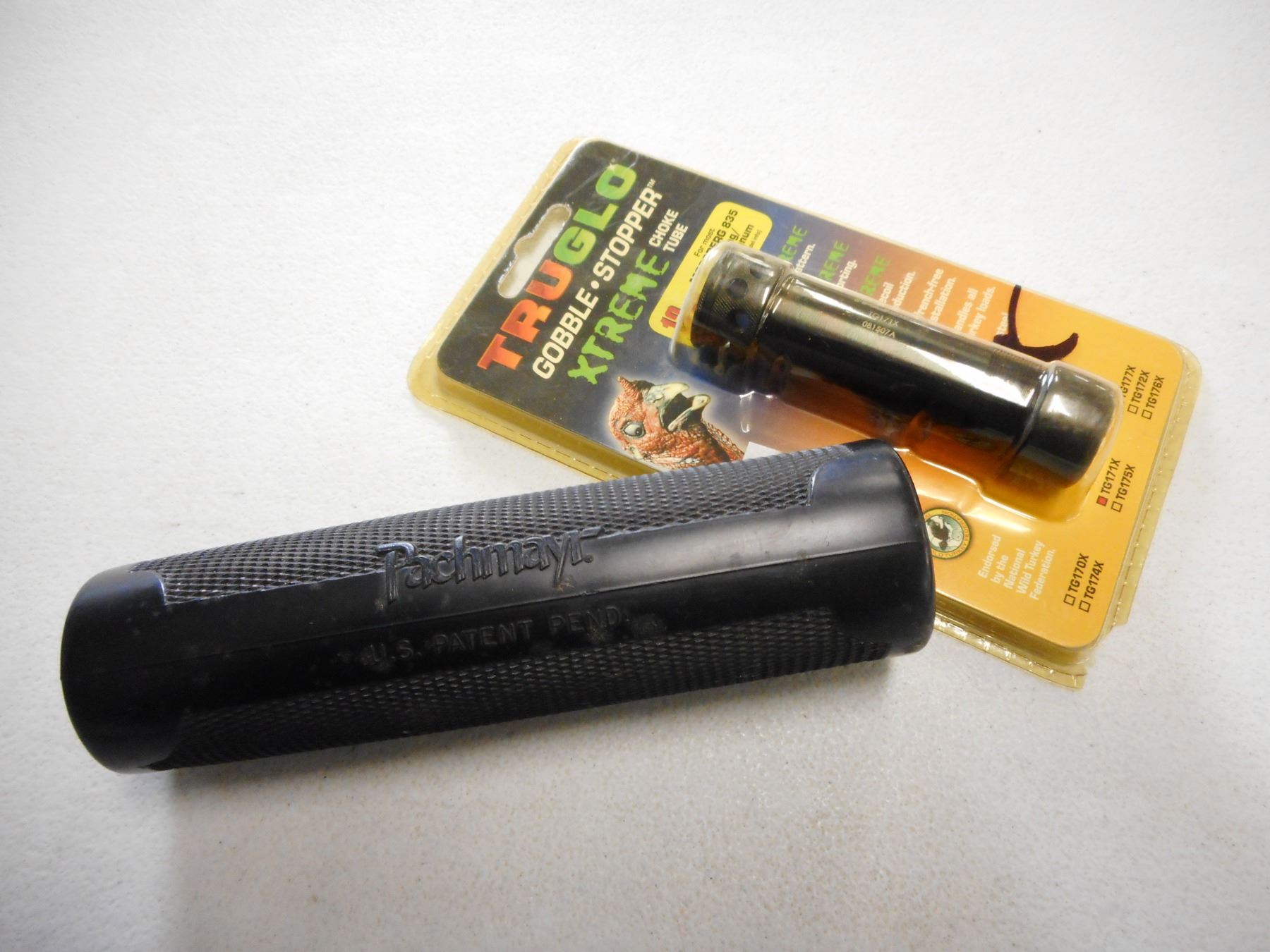 RUBBER FOREND & TURKEY CHOKE, (1) PACHMAYR RUBBER FOREND, (1) TRUGLO XTREME CHOKE TUBE FOR MOSSBERG 835 ULTI-MAG/935 IN ORIGINAL PACKAGING, LOT OF 2