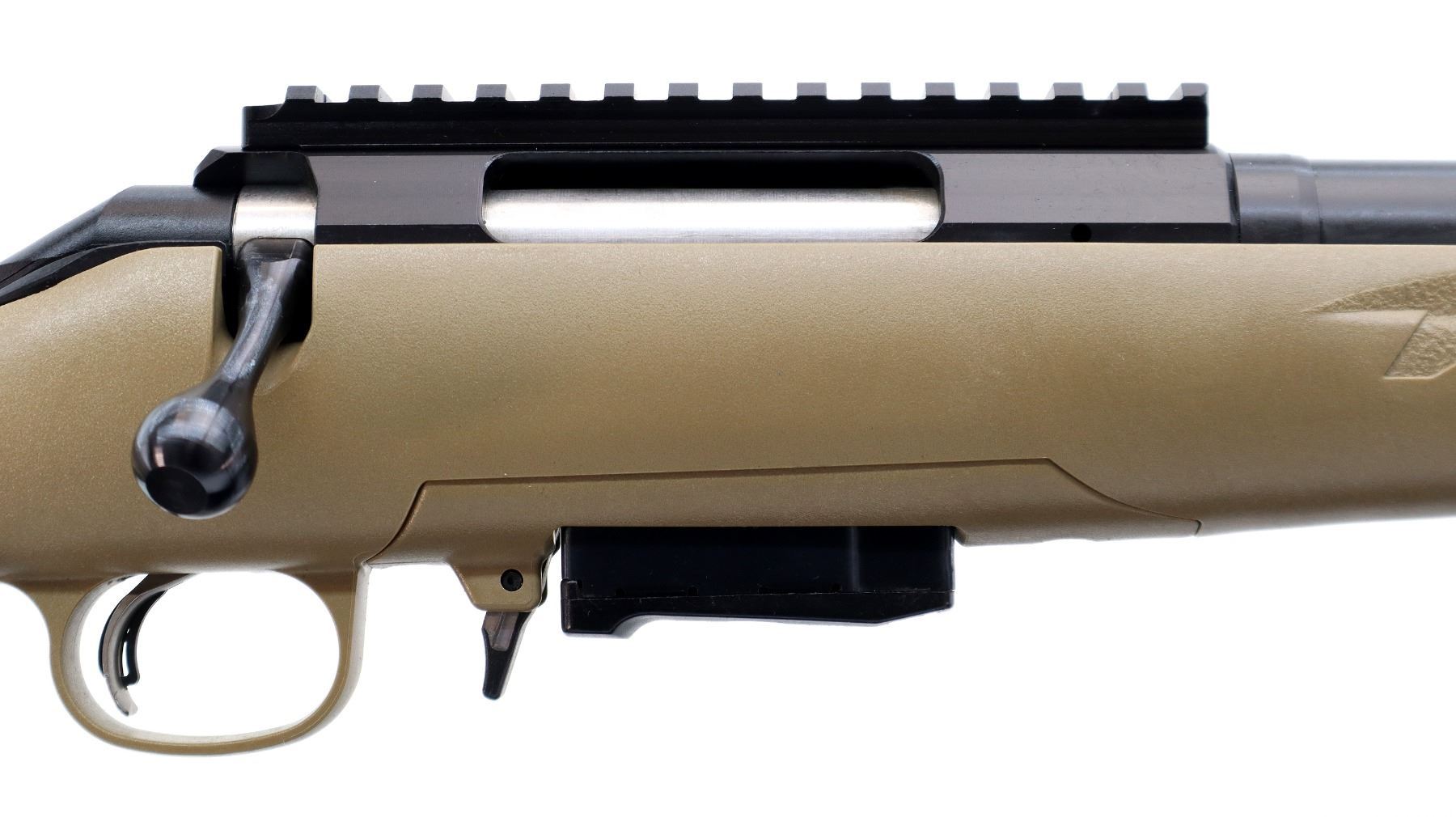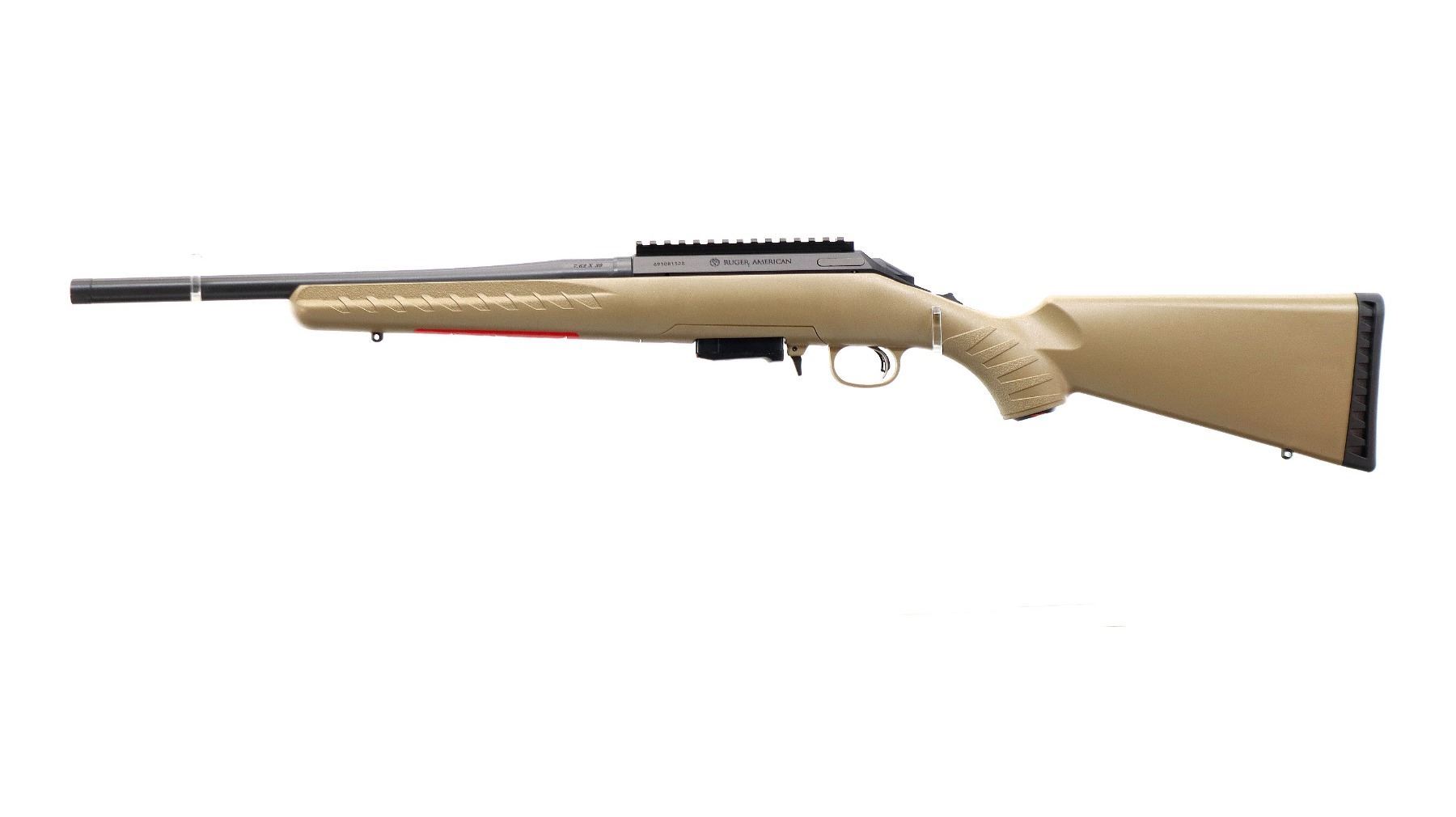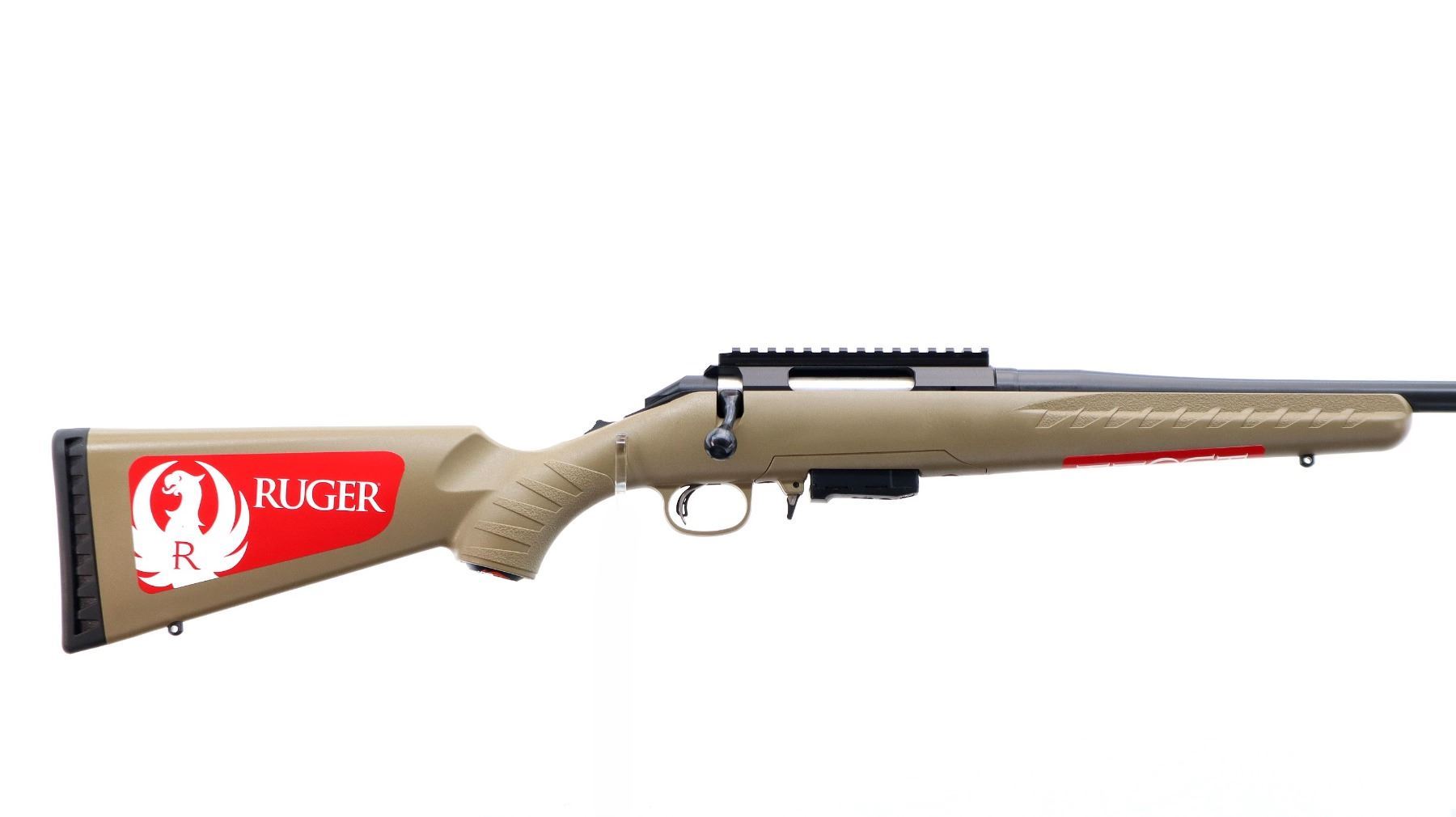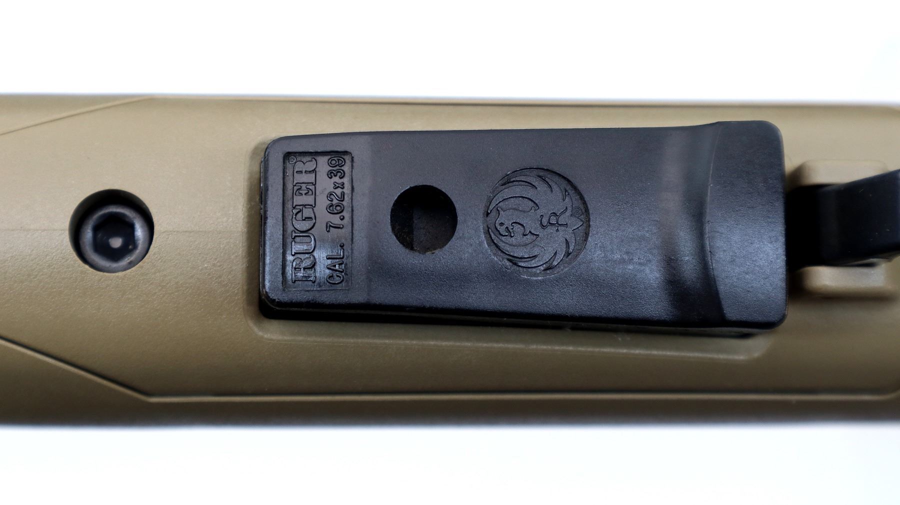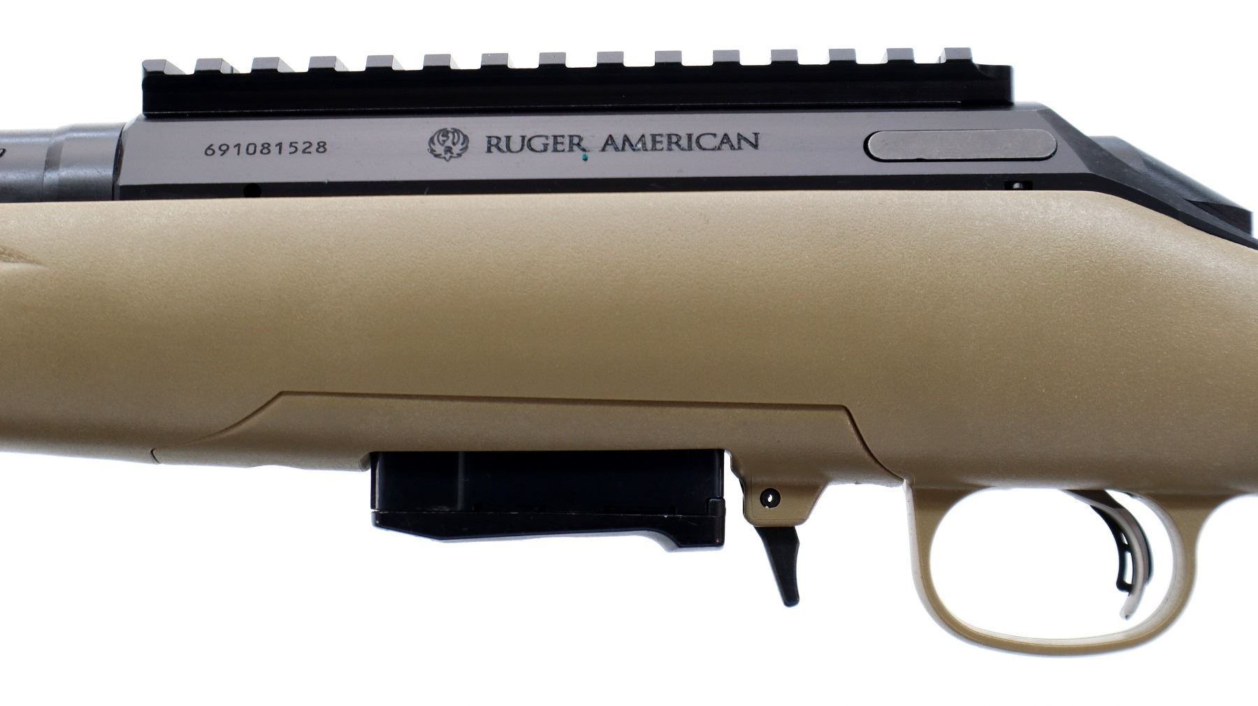 Main Description: No sights, Parkerized metal finish, threaded muzzle with cap, receiver drilled and tapped with one piece scope base installed, smooth bolt knob, tang safety, uses Ruger Mini 30 Magazines. One piece FDE synthetic stock, textured forearm and pistol grip panels, black rubber recoil pad, grip cap, extended mag release, swivel studs, retains factory stickers