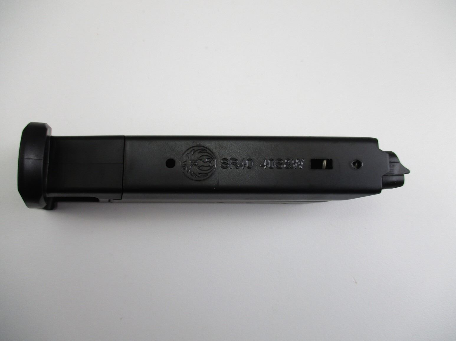 RUGER SR40 PISTOL MAGAZINE , MFG'D BY RUGER, .40 S&W, 10 ROUND MAG, STEEL, POLYMER FOLLOWER & BASE, RUGER MARKED ON FRONT & BOTTOM OF MAG.