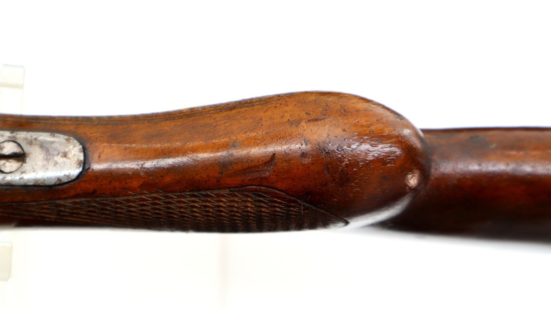 Wear: Metal finish shows some light rust speckles, scratches, handling marks and wear. Stocks show some marks, scratches and wear.